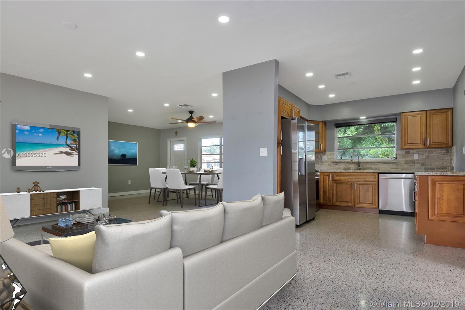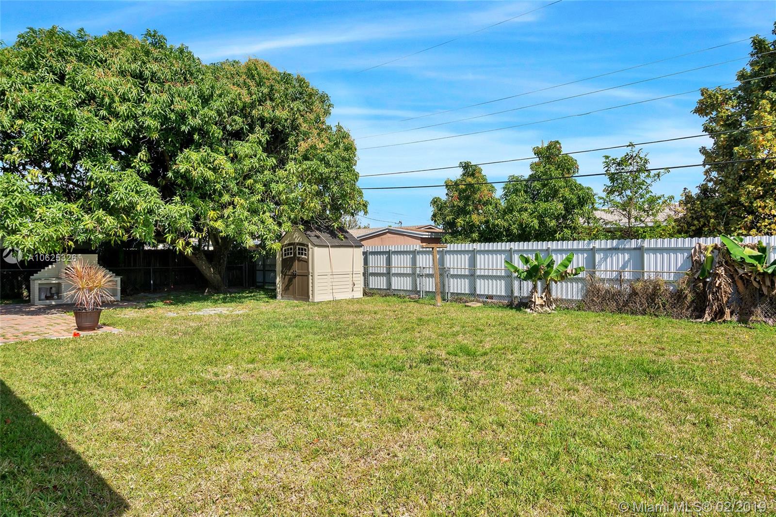 Located on a quiet street in Hialeah, this lovely one story home sits on a large, sunshine-filled lot with Zapote Tree, Hayden Mangrove and beautiful bougainvillea. The home has been impeccably maintained and cared for. Polished Terrazzo flooring sparkles throughout, and lovely window treatments, ceiling fans and recessed lighting add attractive modern touches. The kitchen was recently upgraded with new appliances, a five-burner gas stove, new cabinetry and granite counter-tops. The huge backyard features a newly paved patio, brick BBQ pit and ample space for play and entertaining. There is plenty of room for parking in the driveway and circular front entry, as well as an attached carport. New w/d located in covered room. Exterior has been freshly painted. New AC and water heater.