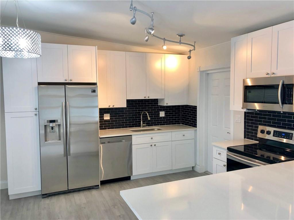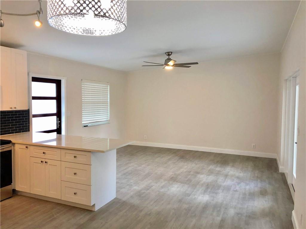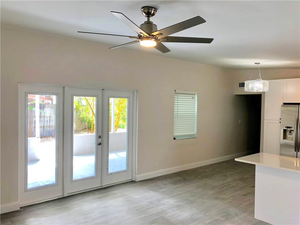 Riverland Village Gem. Updated 3 Bedroom, 2 Bathroom home with impact windows & doors, one car carport, private lushly landscaped yard, rear porch. New kitchen with eat in peninsula, white shaker cabinets, quartz counters, tile backsplash, Samsung SS appliances, remodeled bathrooms, vinyl plank flooring throughout, new interior doors, baseboards, trim. Vaulted beamed ceilings, updated lighting, tankless water heater.