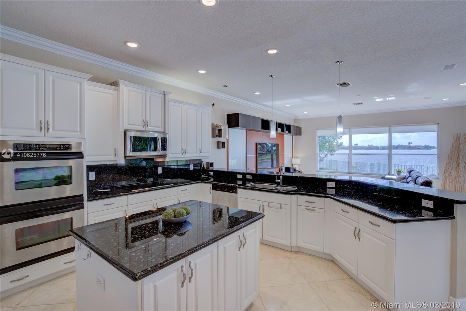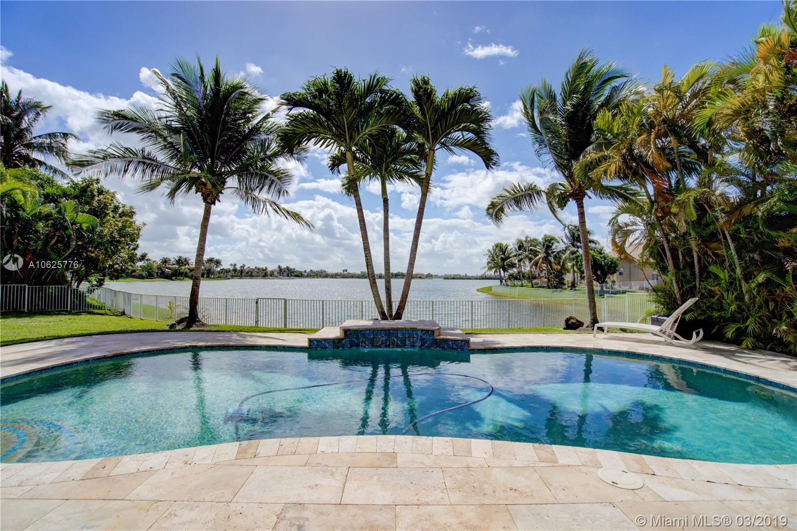 STUNNING TWO STORY HOME 6/4.5 WITH AMAZING ENDLESS LAKE VIEWS!! BEAUTIFUL OPEN LAYOUT WITH LOTS OF LIGHTS, SPACIOUS AND GOURMET KITCHEN WITH GRANITE COUNTERTOPS, WHITE TALL WOOD CABINETS, UPGRADED S/S APPLIANCES, CENTER ISLAND, CROWN MOLDING, MARBLE FLOORS THROUGHOUT THE FIRST FLOOR, WOODEN FLOORS IN THE SECOND FLOOR! PRIVATE MASTER BEDROOM W/BALCONY SITTING AREA ALONG WITH HIS AND HERS BATHROOMS OVER LOOKING THE GORGEOUS LAKE AND POOL. TWO BEDROOMS DOWNSTAIRS, SECURITY CAMERA SYSTEM INSTALLED AROUND HOUSE! OVERSIZED LOT OF 12,287 SQFT OVERLOOKING AMAZING, PEACEFUL SUNSETS AND ENDLESS WATER VIEWS. ALONG WITH POOL/JACUZZI.