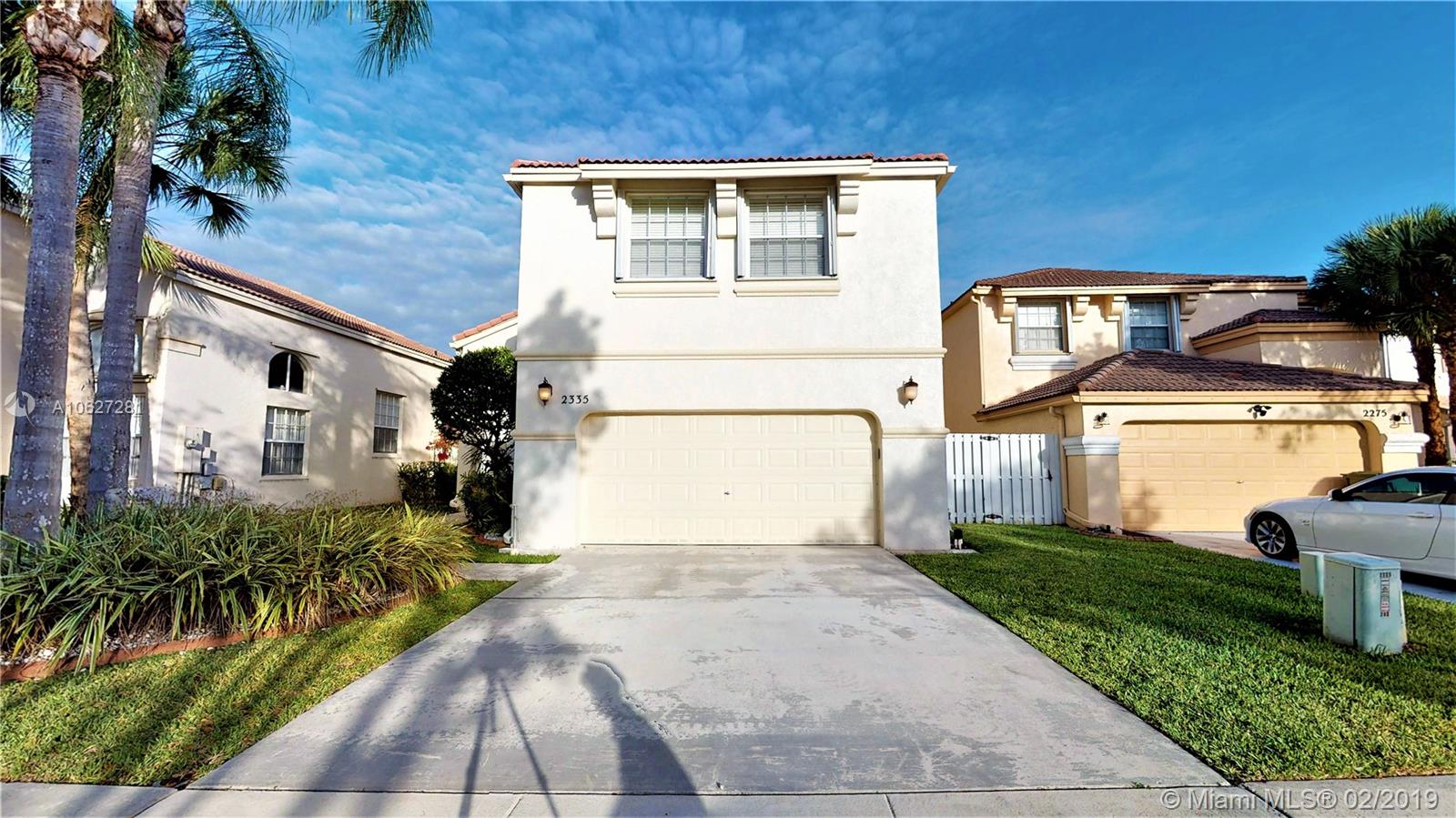 Tastefully Updated 2 story Waterfront home features 3 bedrooms, 2.5 bathrooms & 2 car garage in the desirable gated community of Cedar Way @ Towngate, Pembroke Pines. Large open kitchen with custom cabinets, stainless steel appliances & an extended granite counter top island. Expansive master suite with custom walk-in closet and fabulous master bathroom. Huge open loft can be converted into a 4th bedroom. Front loading washer and dryer in your spacious laundry room. Lots of windows, closet space, ceiling fans, etc. Accordion shutter and burglar alarm for your home security. Large fenced backyard with a brick paver patio, Mango & Key lime fruit trees, room for a pool. Location! Location! Location! Don’t miss this one! Call NOW