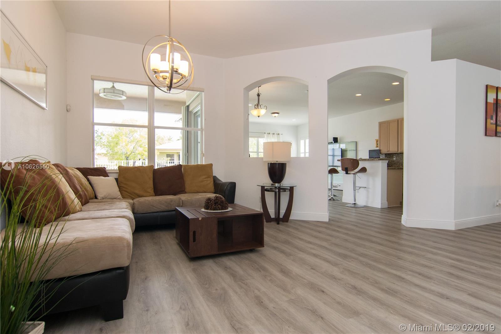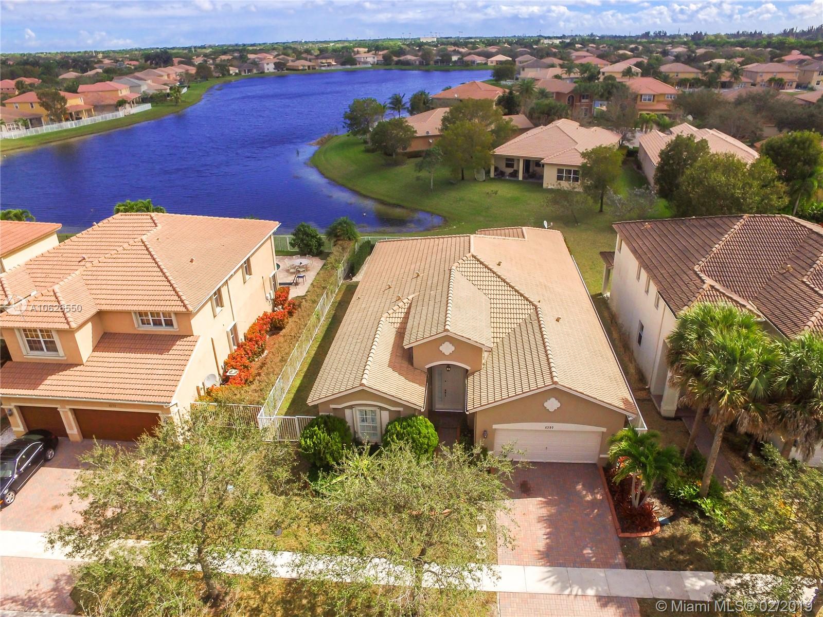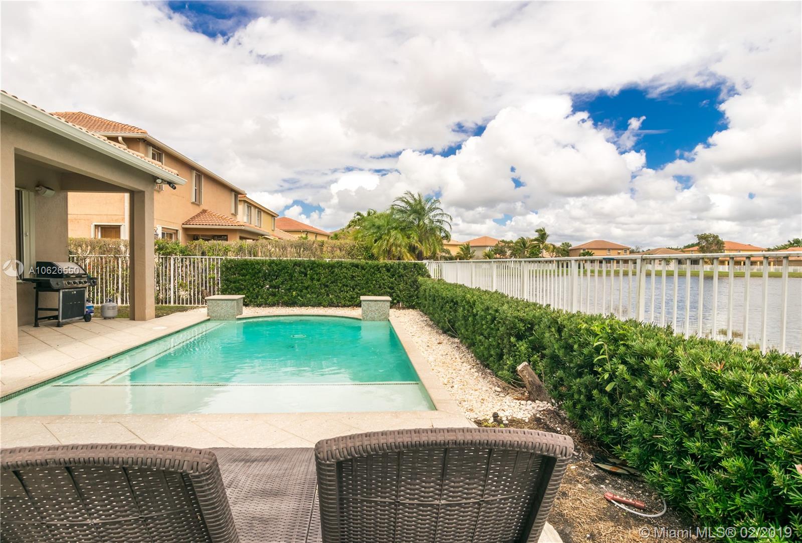 This home offers serenity, elegance and laid-back delights of a tuck away paradise called Isles of Weston. This home is located a few minutes away from the best schools in Weston. It offers 4 bedrooms/3 full baths with a beautiful open living area and a lovely backyard with covered patio, salt water pool and lake. The interior walls were recently painted with neutral colors, floors throughout are new, kitchen has granite counter top with stainless steel appliances, hurricane shutters, security cameras and audio wiring. HOA includes cable, internet, amazing club house with gym, pool, kids play area, basketball. The community has a grand entrance with security guard. This beautiful home awaits your family and offers the best of South Florida Living. Come soon before it is gone!!!
