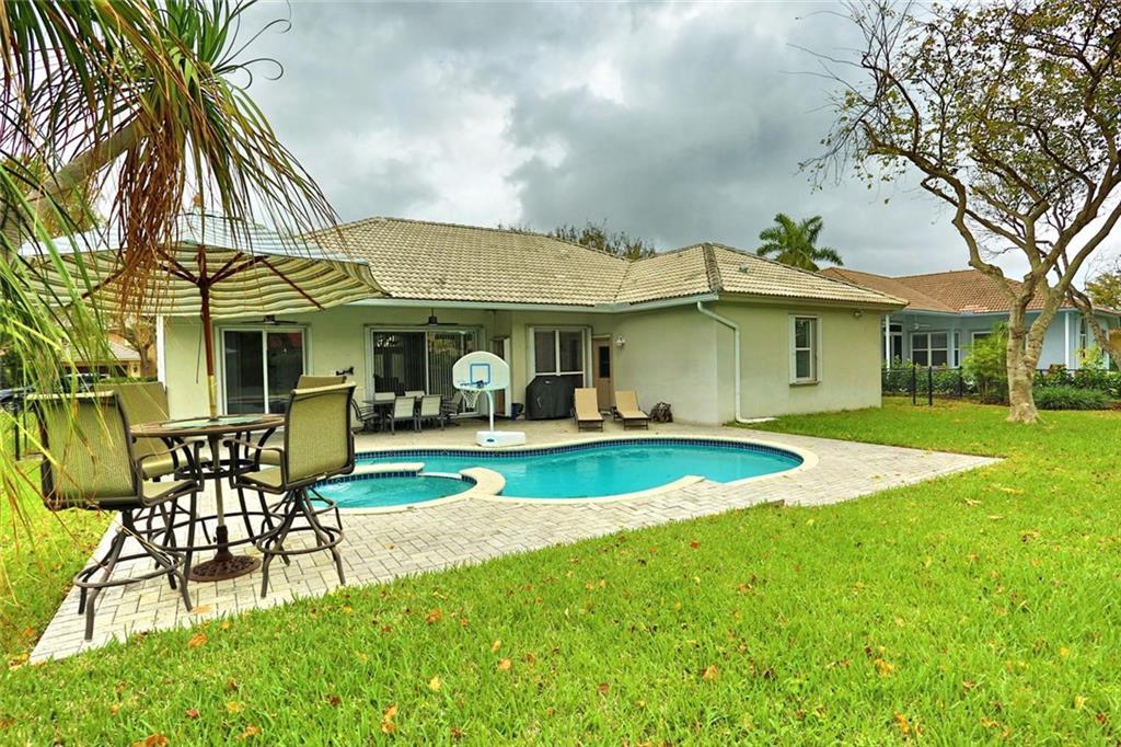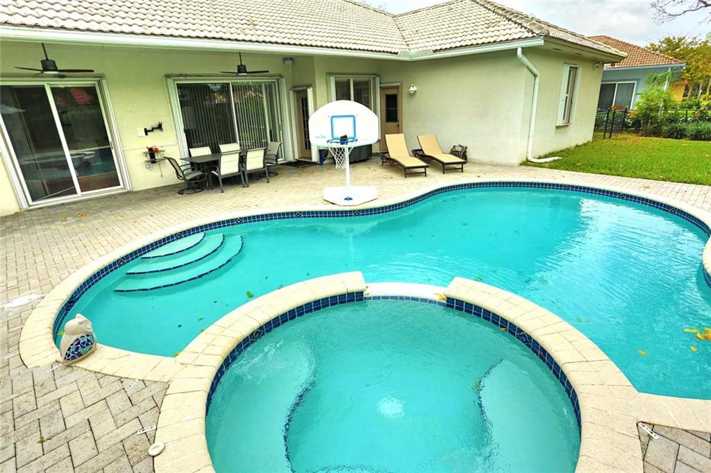 WELCOME HOME! Your spacious 4 bedroom, 2.5 bathroom, pool home with views of fountain and lake await you. Formal living & dining rooms, family room, eat-in kitchen, split bedrooms, cabana bath to covered patio, pool area and fenced yard. Fourth bedroom is accessible from master suite and has built-ins as it's currently used as an office. This 4th bedroom would be perfect for a nursery as well. Master suite has two closets, very large shower & dual vanities. Kitchen features include granite counters, pull-out spice racks on both sides of oven, convection microwave, pull out drawers in pantry, French Door Maytag refrigerator and bottled water feature at the sink. The entire home has Culligan water purifier, newer Trane AC with UV allergen filter. See attached for more info.