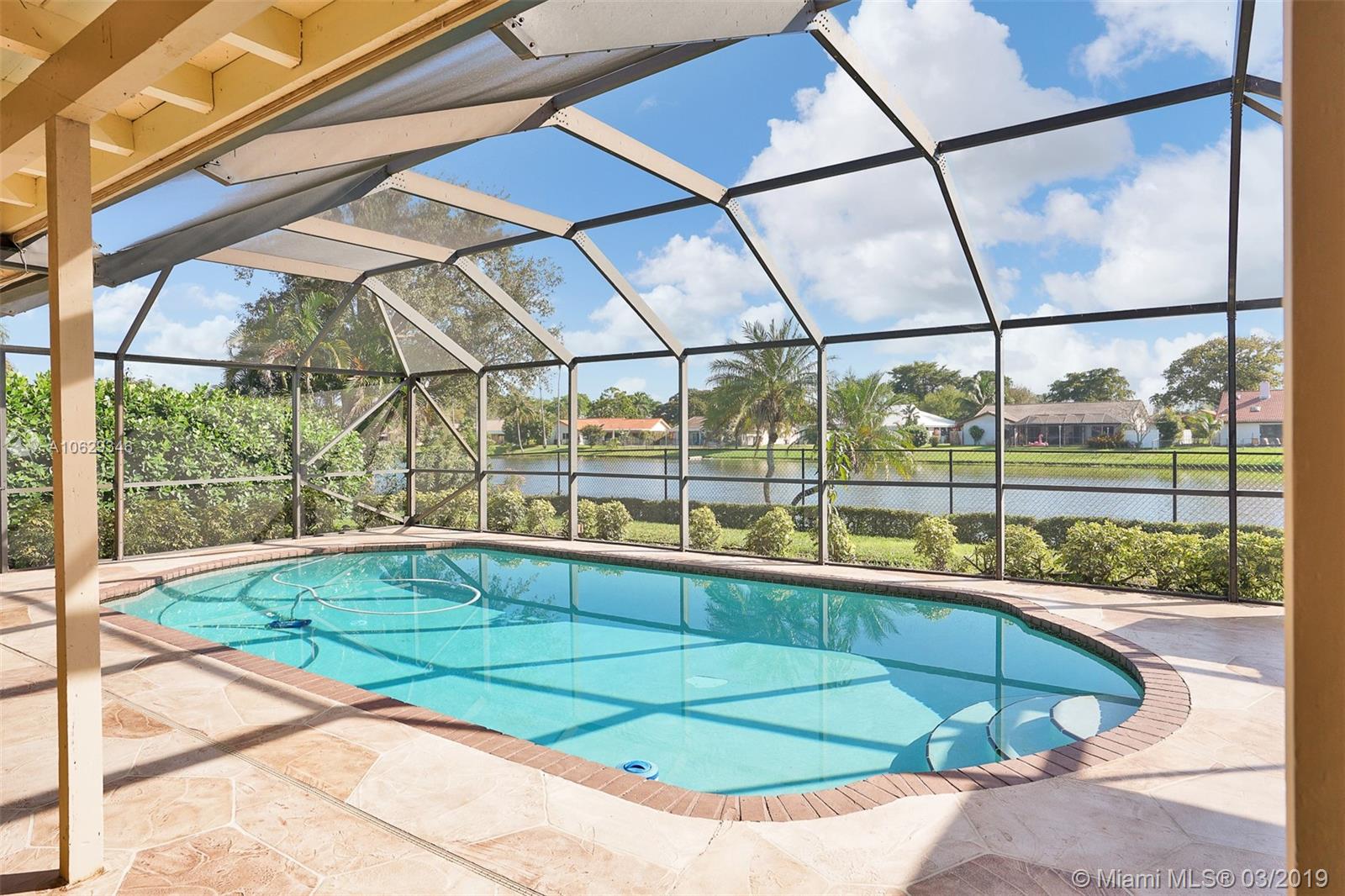 Relax and enjoy this beautiful water view while sitting in your private pool or lanai. Large 4 bedrooms, 3 full baths with a split floor plan. Master suite has sliding doors opening to pool area, updated private bath with large shower, double vanity and hurricane window/cabana door, and walk-in closet. Large updated eat-in open kitchen with a view of water, pool and family room. Formal dining room, large vaulted living room with cypress wood fireplace. Bathrooms updated, shutters or impact throughout, large fenced yard, amazing amount of closet space. Large move in ready home.