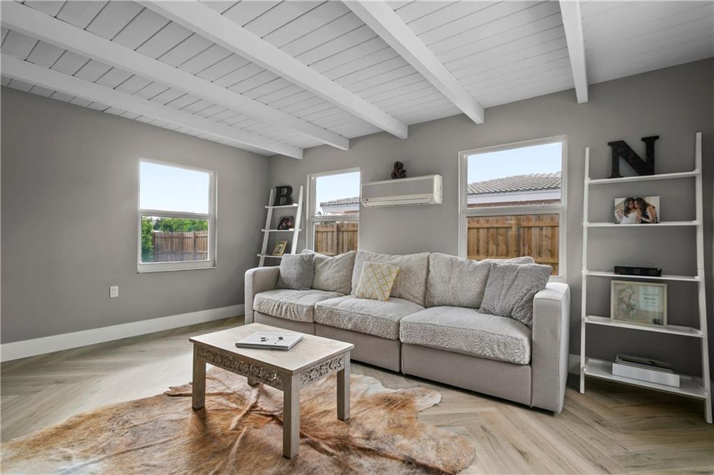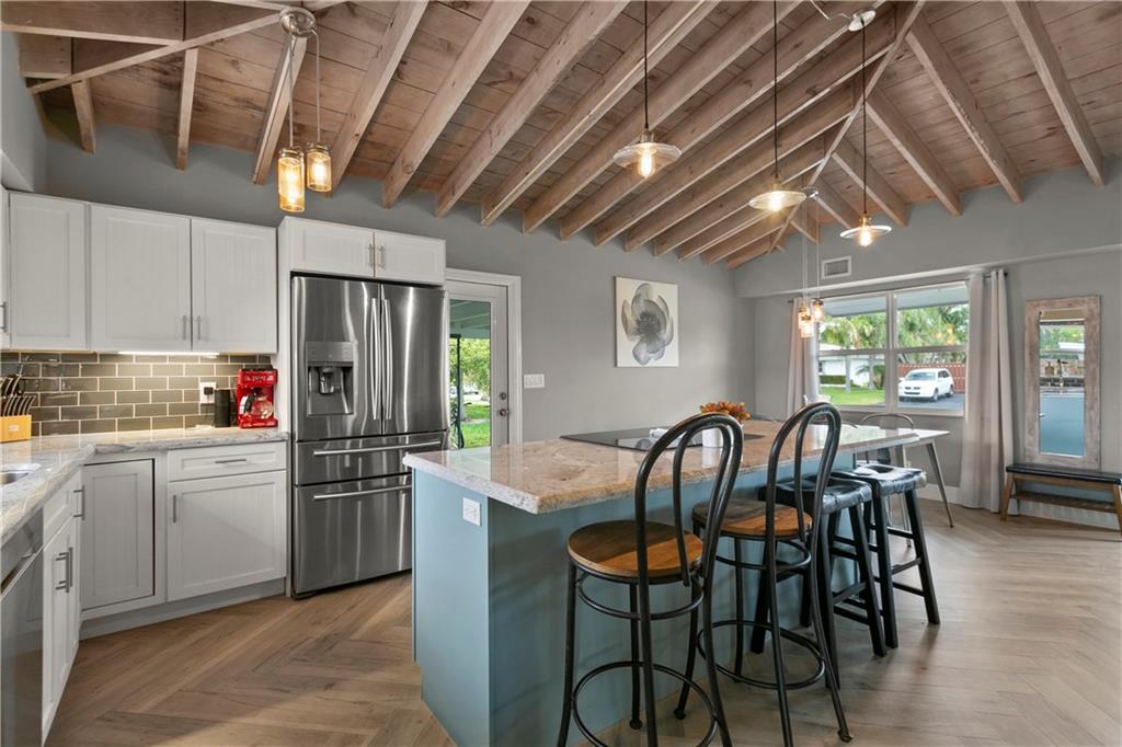 Beautifully remodeled coastal style home located in top rated school district. This captivating, move in ready, 2 bed, 2 bath house has been richly updated and creatively designed. Gorgeous tongue and groove ceiling and herringbone wood tile flooring. Etched glass front door and massive hurricane impact windows make this coastal getaway light and bright throughout. No expense spared in renovations! Roof and A/C replaced in 2016. New quartz countertops and the latest stainless steel appliances. Giant kitchen island perfect for entertaining! Bonus Florida room increases the living area of the home and perfect for entertaining. Modern lighting fixtures throughout. Oversized patio and backyard with privacy fencing. Spacious lot with plenty of room for a pool!