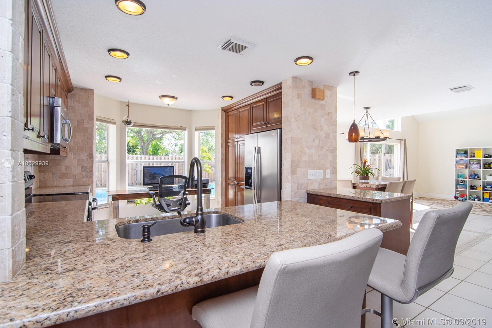 Gorgeous 4 bed, 2.5 bath, 2 car garage Pool home in the exclusive gated community of Keystone Lake in Pembroke Pines! Soaring vaulted ceiling & large triple glass door showcase sparkling pool views the minute you walk in! Enjoy outdoor living with lush landscaping in your own private tropical oasis - perfect for entertaining! Beautifully updated kitchen features granite counter tops & stainless steel appliances. The Master Suite features endless water views, large walk-in closet and separate soaking tub & shower. Close to excellent schools, shopping, dining, and transportation!