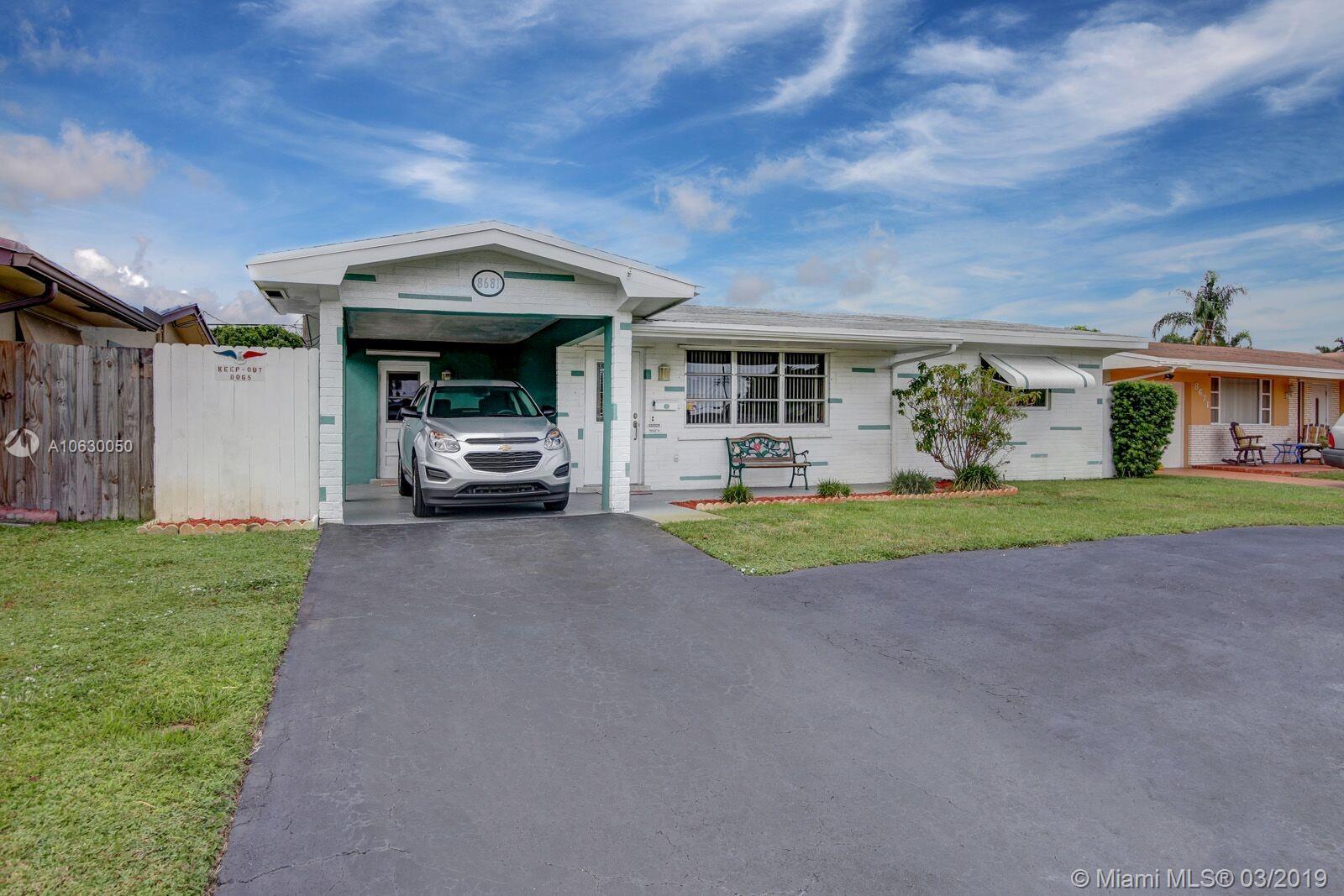 This is the best deal in the Pines, beautiful well kept home a/c is 2 years new, roof installed 5 years ago, the house boasts amazing terrazzo floors, that along with the newest FPL approved insulation in the attic make this a very energy efficient home, the roof footprint allows to easily add a third bedroom and a second bath, big eat in kitchen, large covered and screened in patio, large lot with circular driveway, plenty of room for a pool, with the proximity to the new Pembroke Pines City Center the demand for properties in this neighborhood is at an all time high, show it and watch your buyers demand to write an offer on the spot...showings will start on Saturday the 16th
