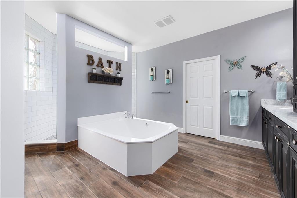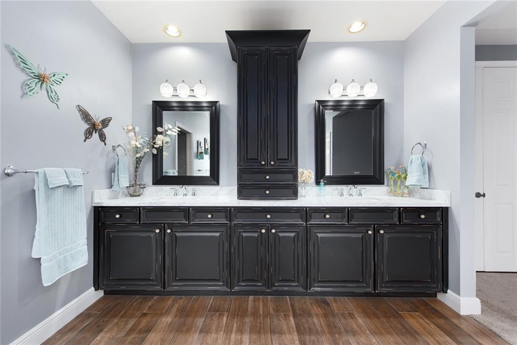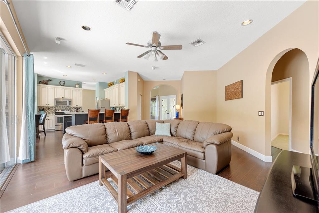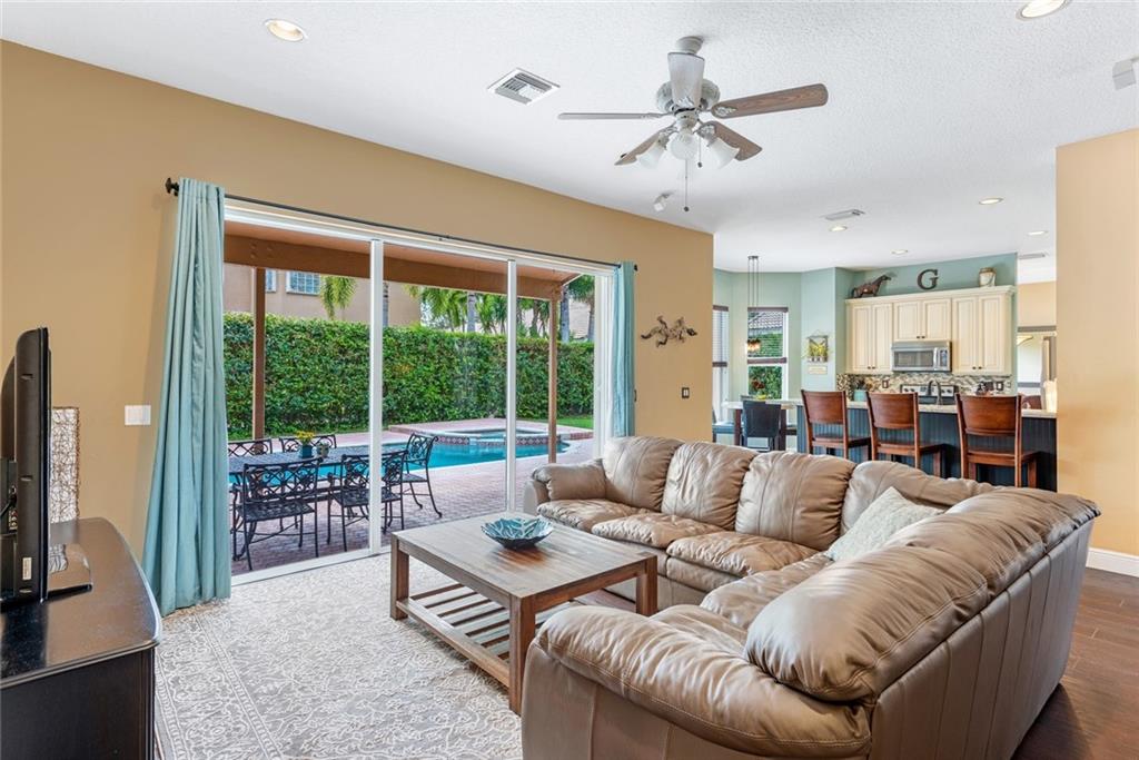 Big & Beautiful ! 5 Bedrooms + Office. 1 Guest Suite on 1st floor. Top Down Renovation including Brand Spanking New ROOF! The owners have gone all out here! Over all Industrial / Transitional Farm feel with New Flooring throughout. Gorgeous kitchen with Two Tone custom glazed maple cabinetry, upgraded granite with glass back splash & stainless appliances. The Master Suite is AMAZING with a Phenomenal Master bath which includes distressed Custom Noir Wood cabinetry, Porcelain wood look tile, Walk through shower with over-sized beveled subway Tile & killer HUGE soaking tub. Large freshly painted 3 car garage, Hurricane accordions and a LOW LOW HOA FEE at just $87/ month. This is a KEEPER!