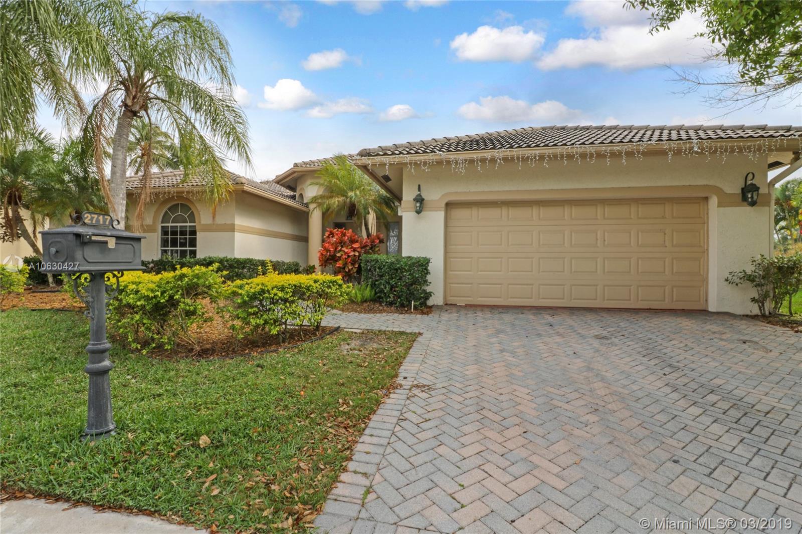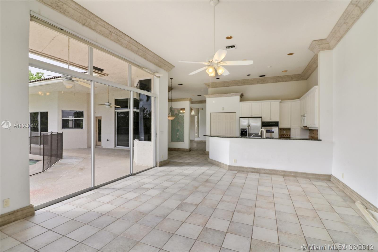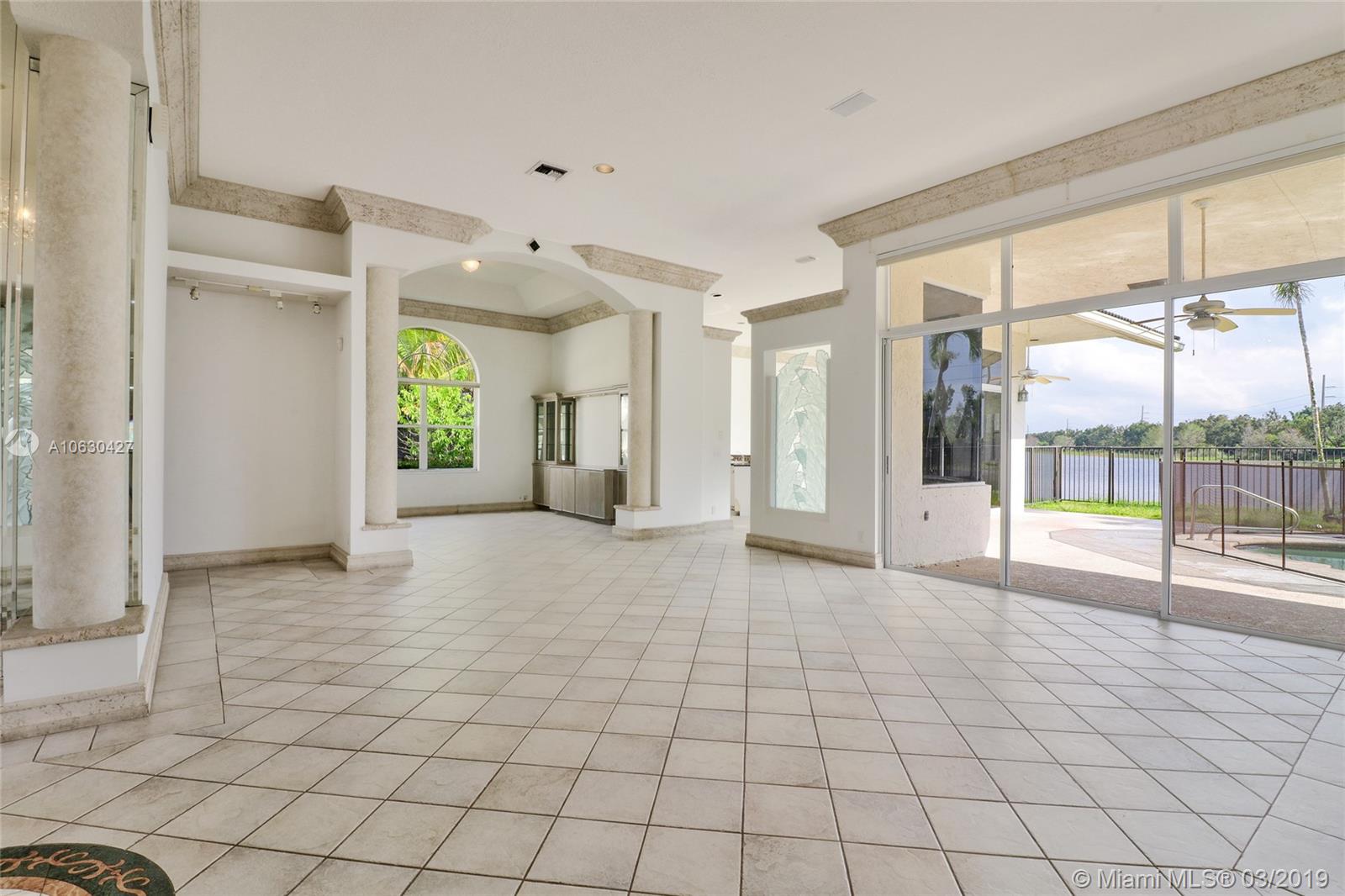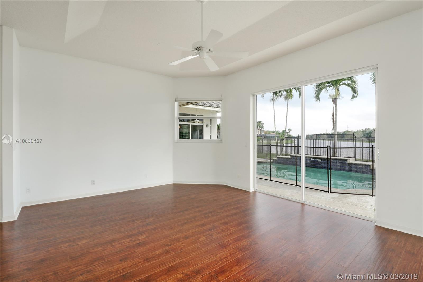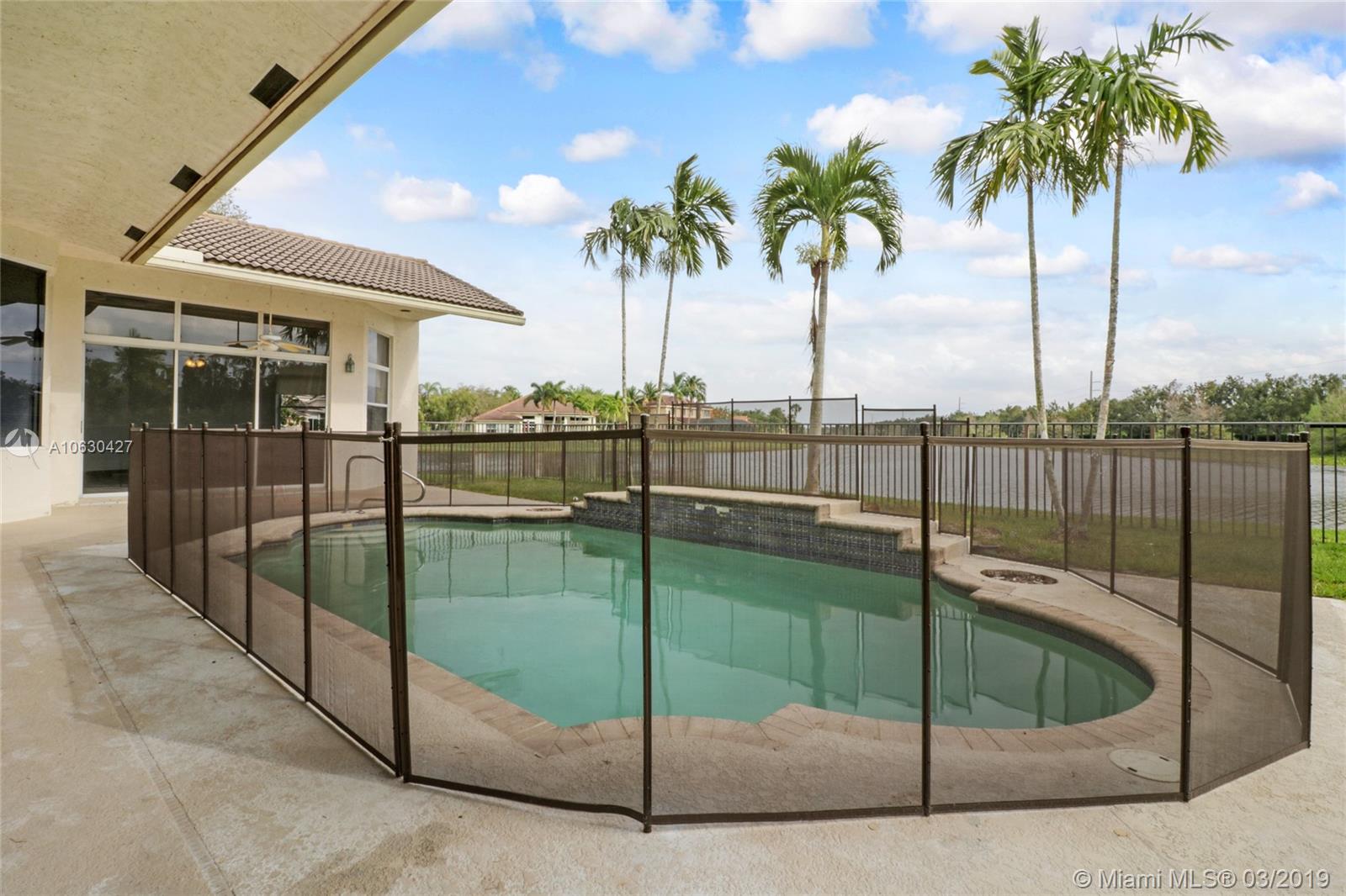 A spacious 4 bedroom, 3 bathroom single family home with a pool, on a lake, located on a cul-de-sac within the community of Weston Hills at Edgewater. The spacious interior design offers a formal dining area, bar, and a combination family room and kitchen area viewing the lake and pool. Large windows throughout the rear of the home allow for ample natural lighting and are equipped with motorized shades. The split-bedroom design includes a master bedroom featuring a sliding glass door to the pool and lake views. The master bathroom has an en-suite bath, with dual sinks, jet tub, shower, and dual walk-in closets with built-in shelves. Weston Hills is a private golf course community offering basketball courts, tot lots, volleyball courts and clubhouse.