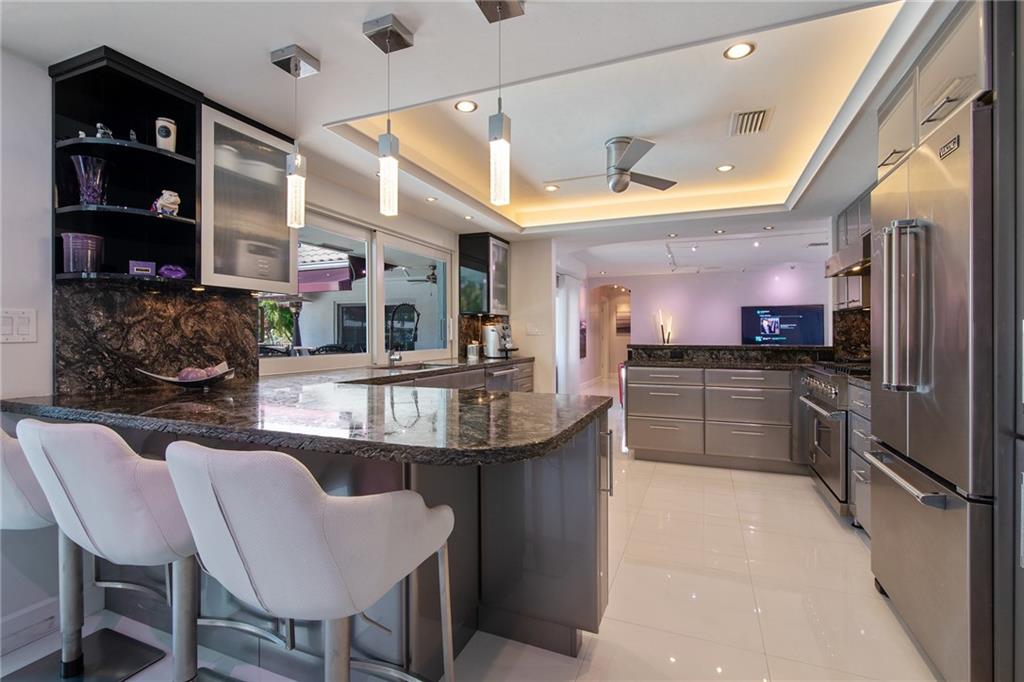 Stunning space and security on spectacular 33rd Ave! Completely rebuilt with every luxury desirable. Brand new electrical, plumbing, impact windows, kitchen, baths, dock, seawall - brand new everything. White porcelain flooring throughout, Venetian plaster and multi-color LED lighting add to the ambiance and relaxed atmosphere. House has natural gas with a full house generator. Kitchen completely redone with custom cabinetry and chiseled granite edges. Viking appliances throughout - gas stove. Bathrooms all done with imported stone and high-end waterfall faucets. Outside enhanced with Platinum mosquito system, fire pit and speakers for entertaining. Full house security with cameras, air-conditioned garage. Located on one of the most desirable streets in Fort Lauderdale.