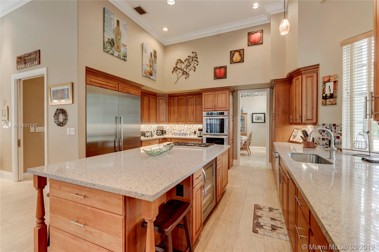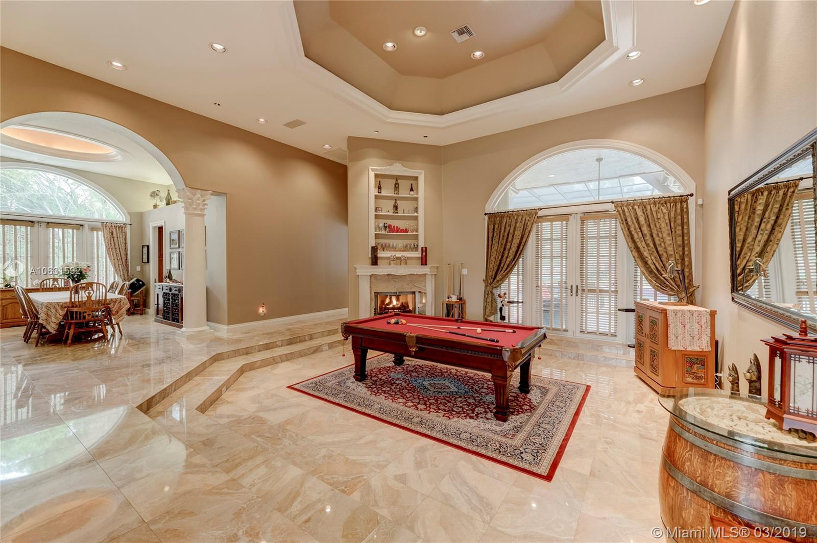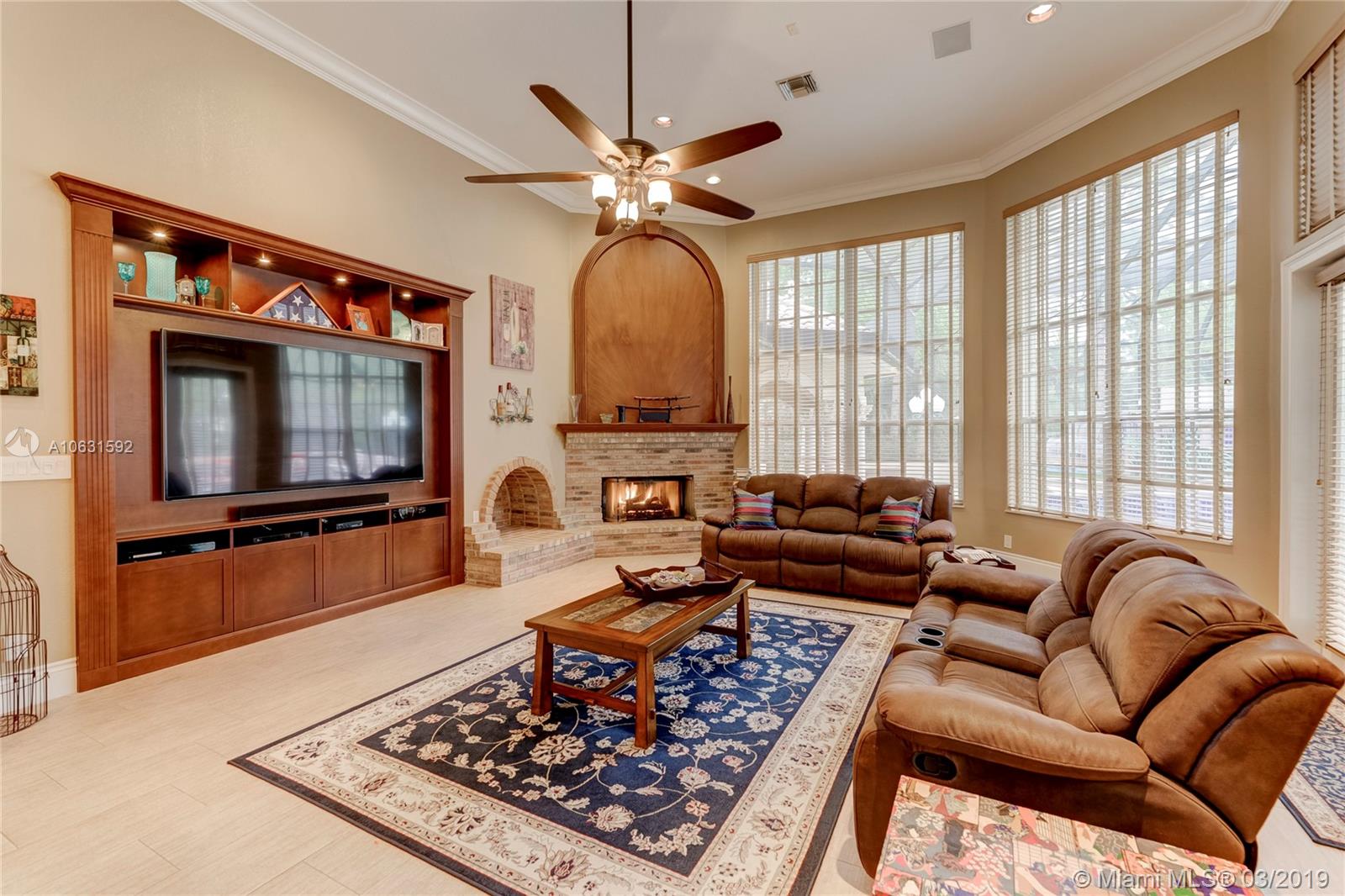 Impeccable 4,800 SQ FT home built in 1994 on 1.25 acre cul-de-sac lot in prestigious Whispering Woods. This is the only community in Coral Springs with 1+ acre lots that is 24-hour manned and gated. Stunning grand entrance invites you to this 4 bedroom/5 bath (3 full & 2 half) with marble tile floors. Home also has a den and a gym. Master suite has two walk in cedar closets with cabinetry. Dream kitchen has been totally remodeled with top of the line Thermador appliances, Silestone Quartz countertops and an oversized island. Kitchen has a built-in wine refrigerator and a built-in microwave drawer. There are three working gas fireplaces and two attics with floors for storage. Laundry room has Bosch large capacity washer and dryer and plenty of cabinets.