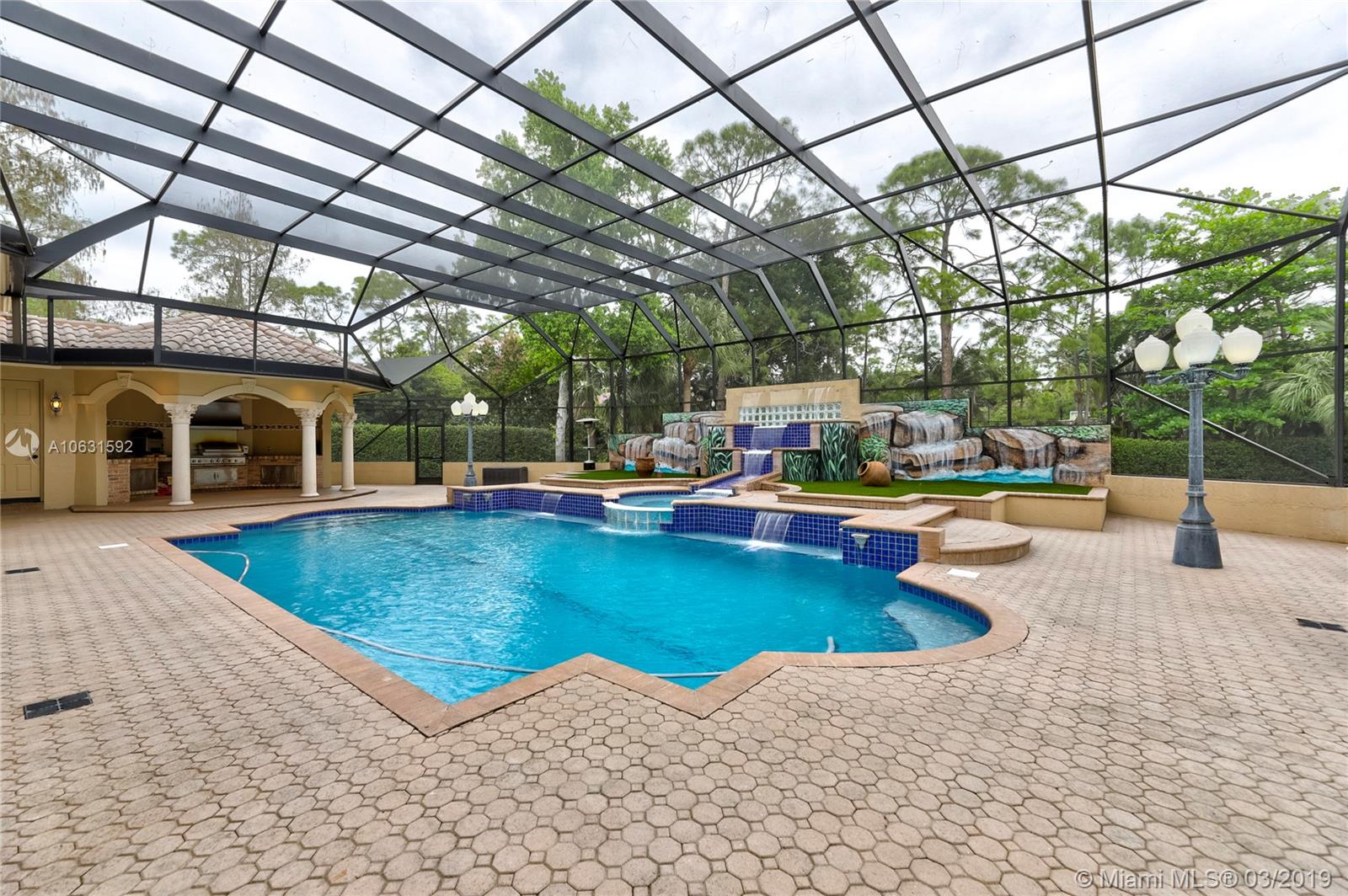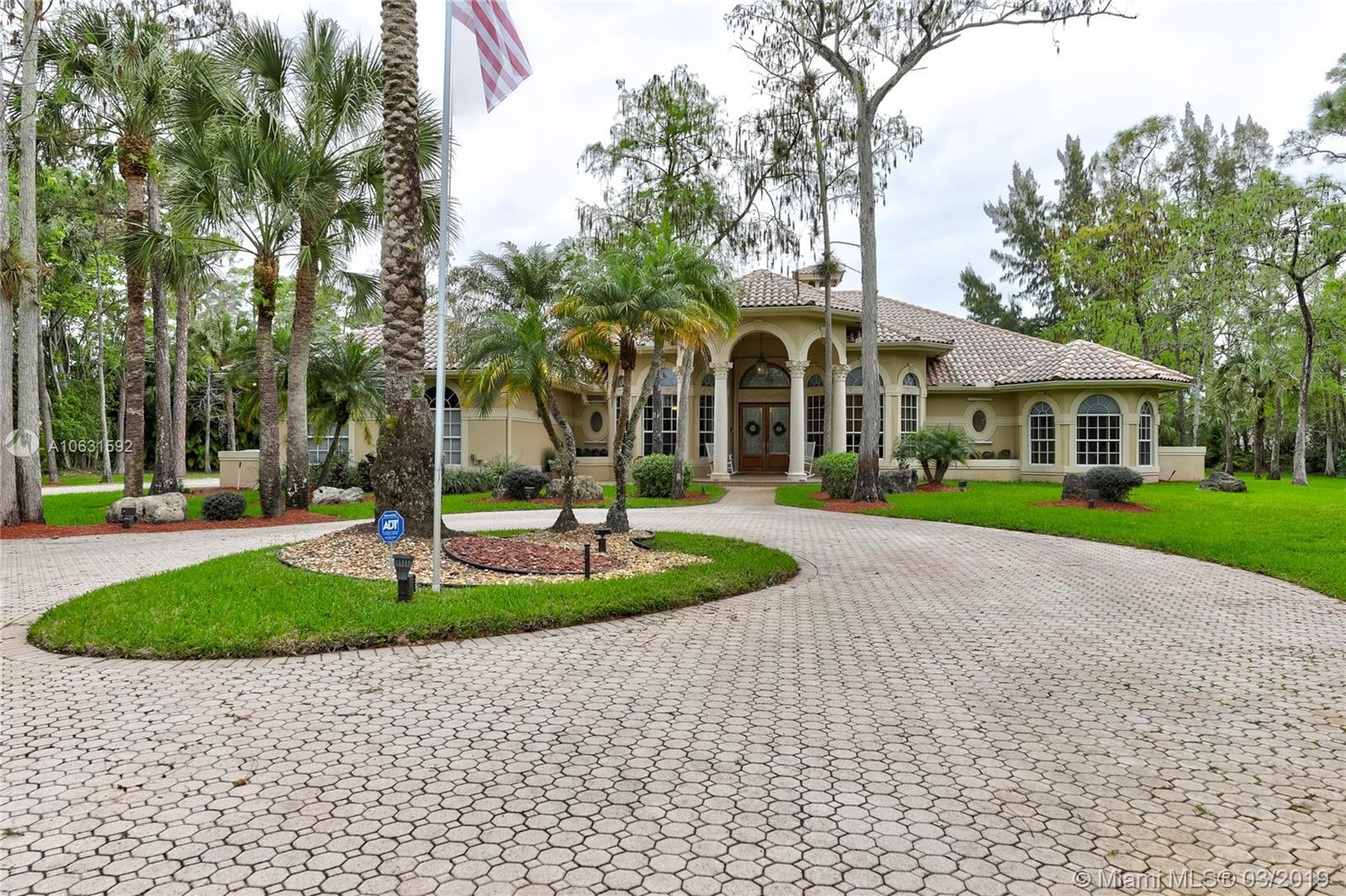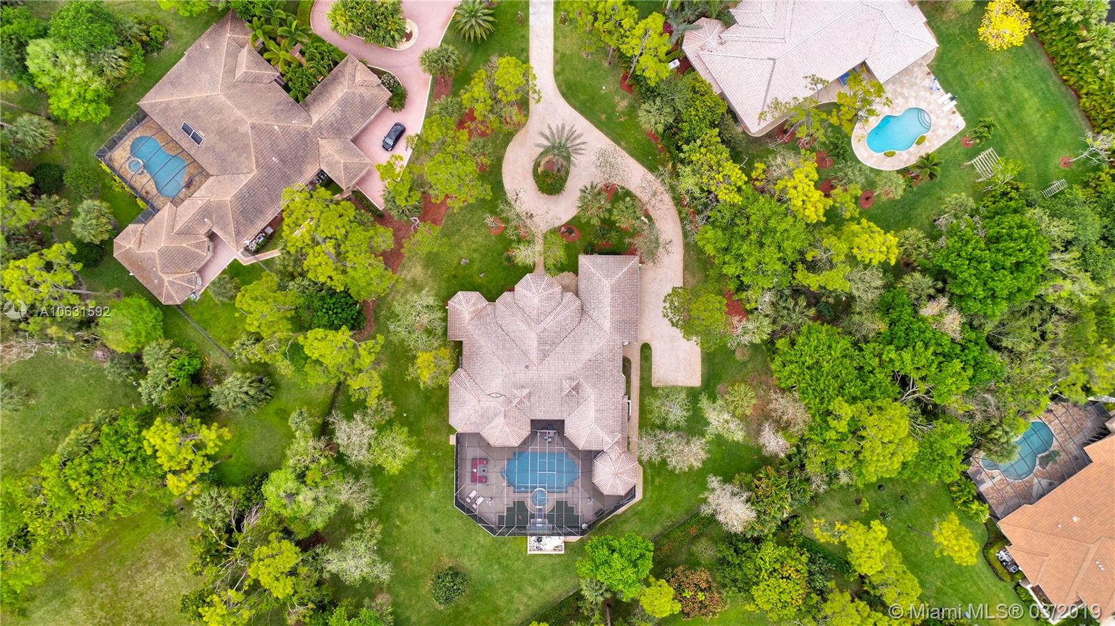 Impeccable 4,800 SQ FT home built in 1994 on 1.25 acre cul-de-sac lot in prestigious Whispering Woods. This is the only community in Coral Springs with 1+ acre lots that is 24-hour manned and gated. Stunning grand entrance invites you to this 4 bedroom/5 bath (3 full & 2 half) with marble tile floors. Home also has a den and a gym. Master suite has two walk in cedar closets with cabinetry. Dream kitchen has been totally remodeled with top of the line Thermador appliances, Silestone Quartz countertops and an oversized island. Kitchen has a built-in wine refrigerator and a built-in microwave drawer. There are three working gas fireplaces and two attics with floors for storage. Laundry room has Bosch large capacity washer and dryer and plenty of cabinets.