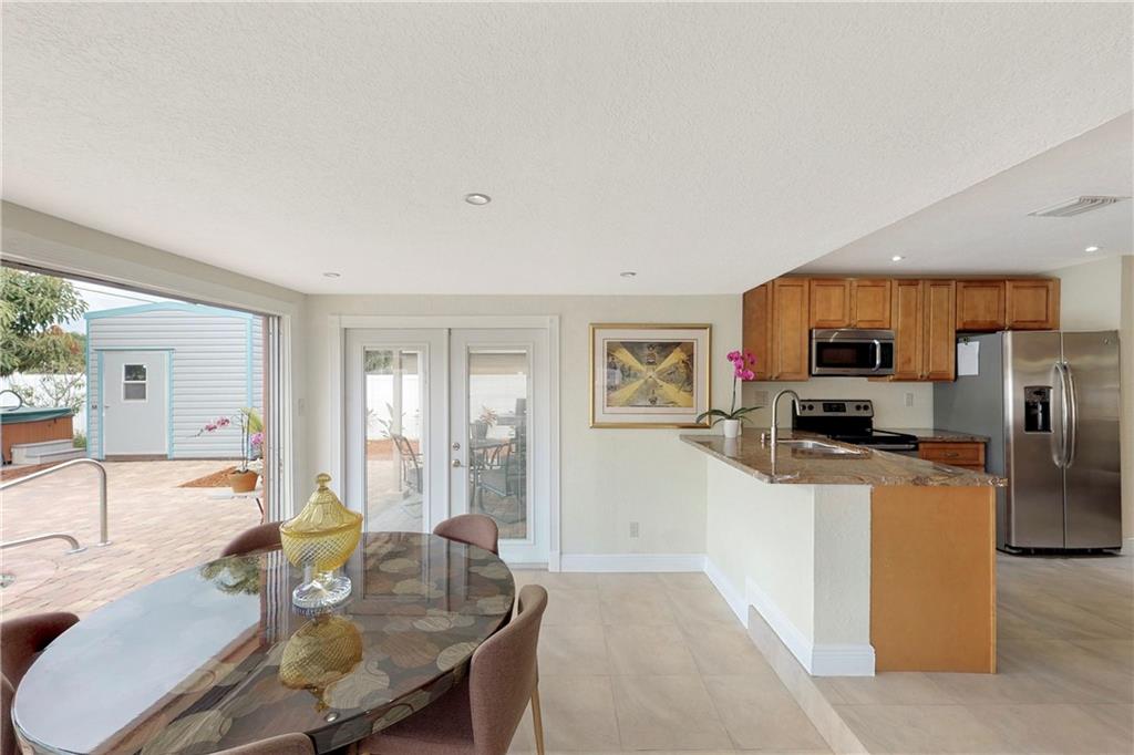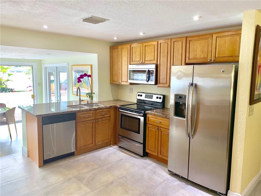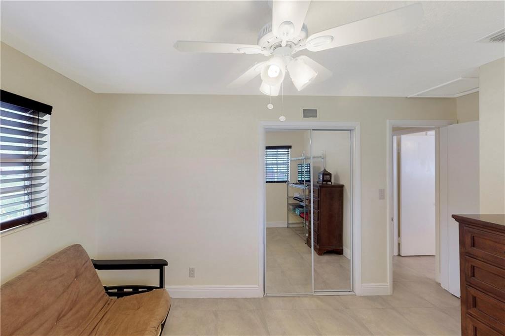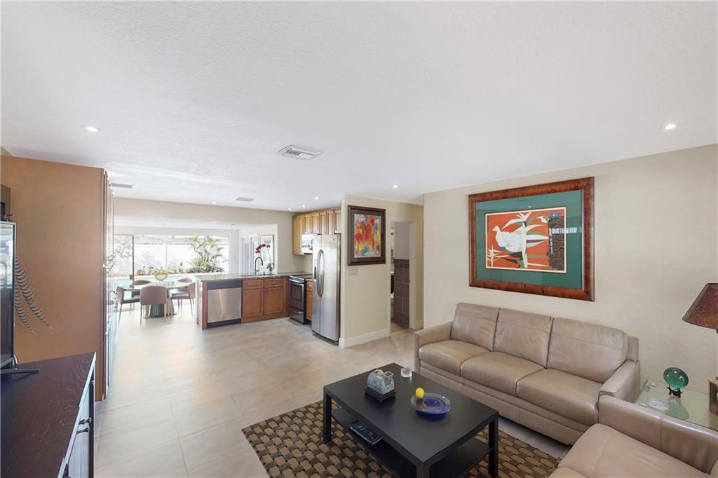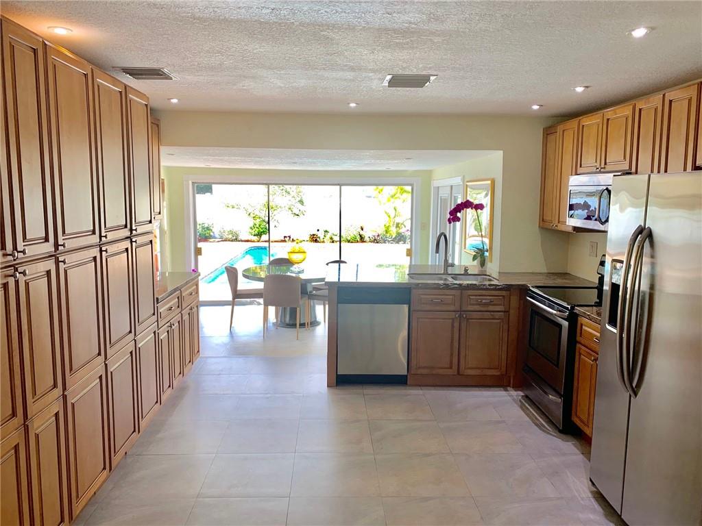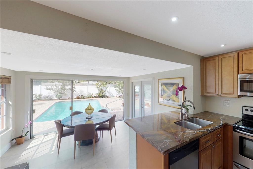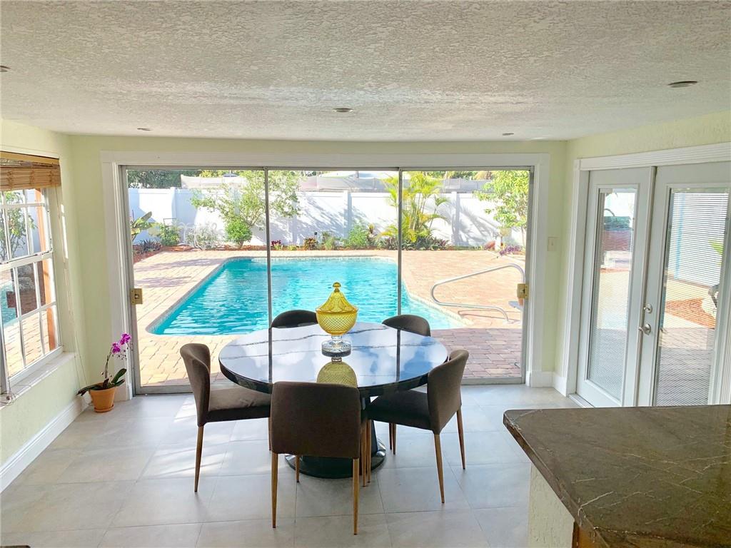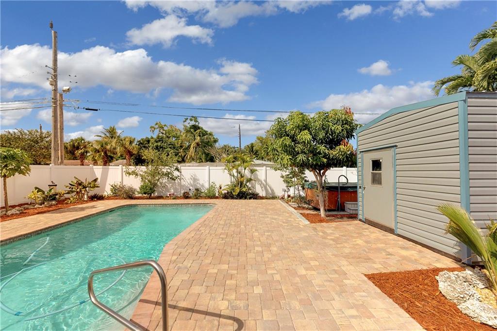 Totally renovated 3/2 located seconds from interstate and Turnpike. Yet the east of 95 location makes the beach a short drive or bike ride away. The home boasts a new roof in 2016 and new vinyl privacy fence in 2018. Both bathrooms and kitchen are updated, and there is a wall of pantries with pull out drawers. AC is also recent, as well as the porcelain floors and recessed lighting. The backyard is a tropical paradise with newly tiled pool and paver deck. The pool cabana is currently used as a home office.
