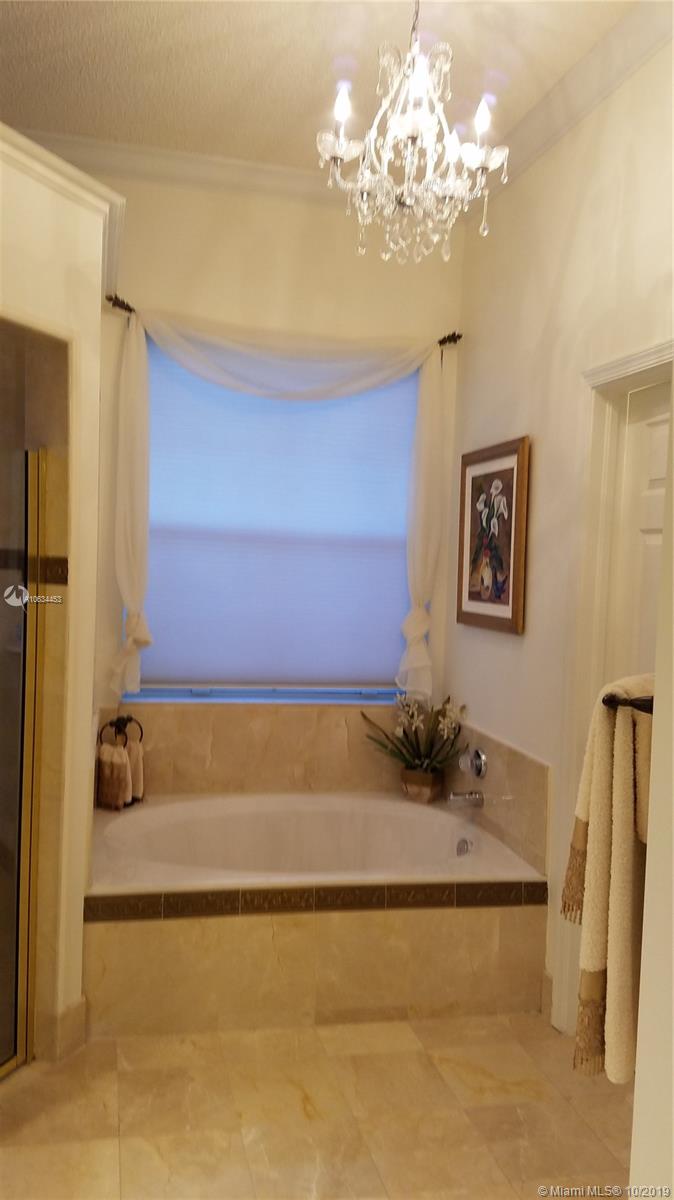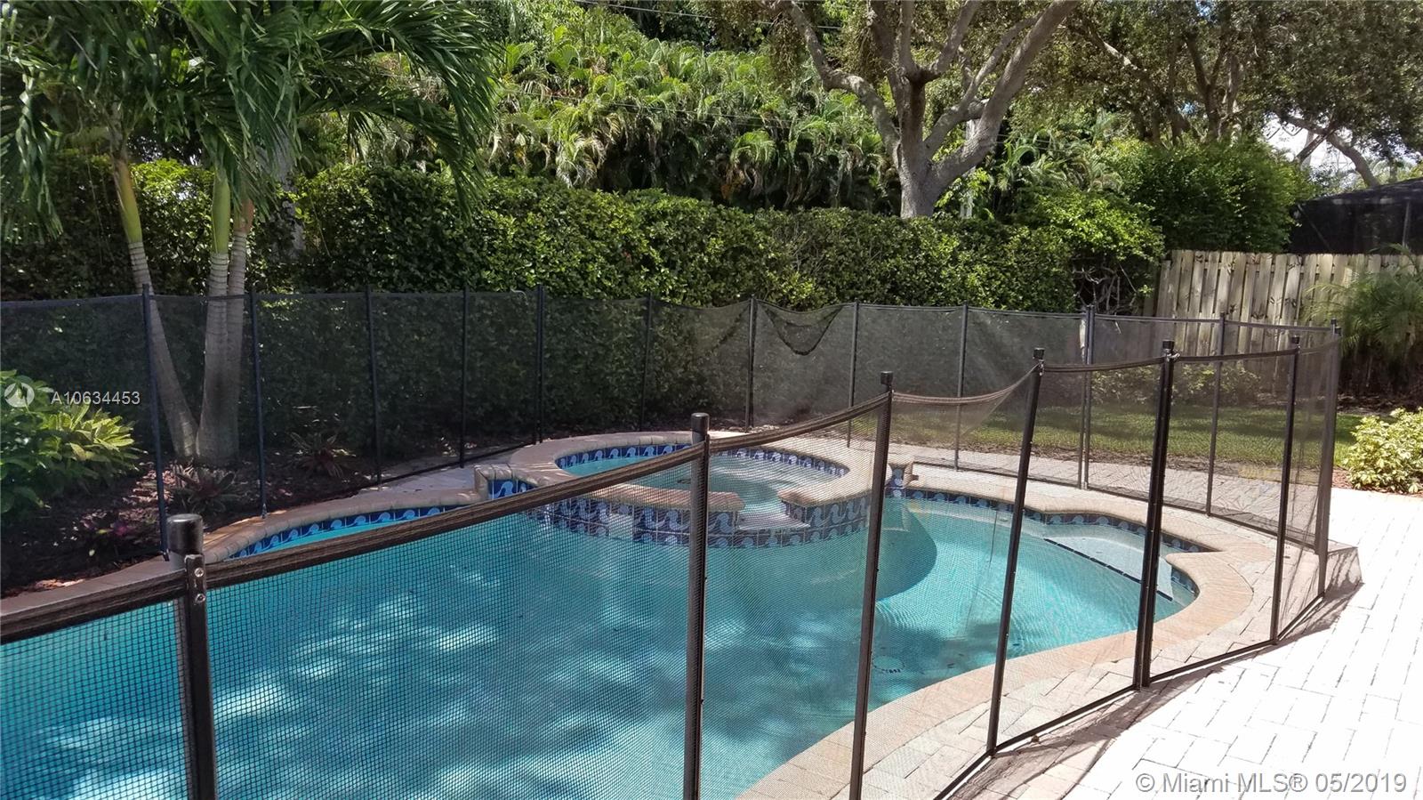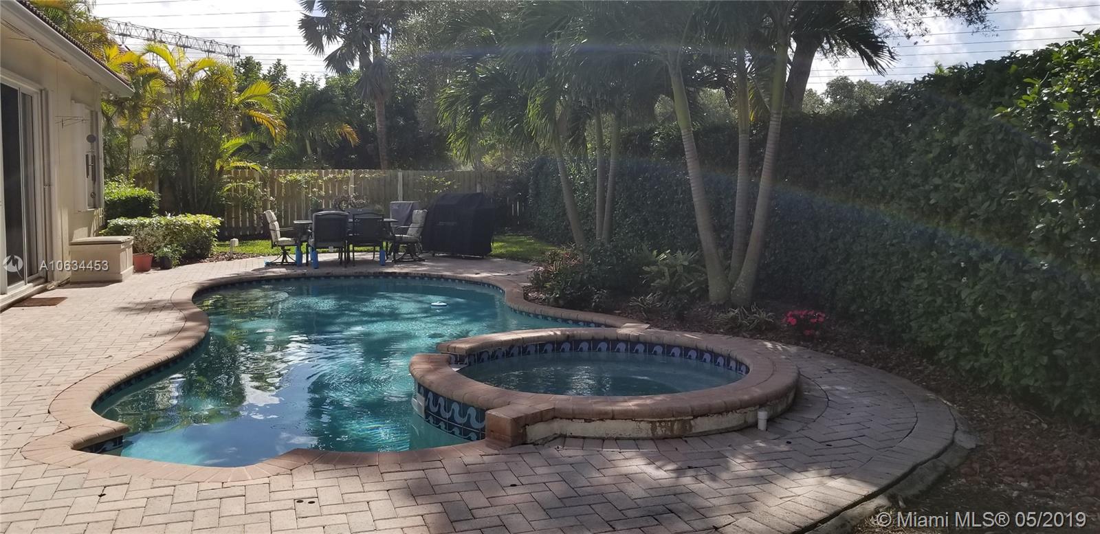 ONLY POOL HOME..Lush Grounds..LARGEST Fenced Lot.."OAK" Model Split 3BD/2 BA+Family Rm..Bright Sunny Home w/10' Ceilings, Soft Ivory Backgrounds, Custom Window Shades, Crown+Base Molding, French Ivory Porcelain Floors & Recessed Lighting in All Living Areas..Upgraded Kitchen w/Island, & "Culligan" Water Sys.. Windowed Breakfast Area, Custom Wood Cabinets w/Soft-Close Glass Doors, Granite Counters, SS Appliances..Laundry Rm w/Cabinets, & "LG" W/D w/Storage Draws..Marble Updated Baths w/Roman Tub..Patio w/Pavers Surrounds 25'x15' Heated Pool & Hot Tub...Full Security System w/Alarm, Lighting, Integrated RING Door Bell & Installed Accordian Shutters..Auto Sprinkler System..2 Car Garage w/Hurricane Door & Wall of Cabinets..Driveway Fits 4 Cars..BUYERS' AGENT WELCOME..Walk to House of Worship..