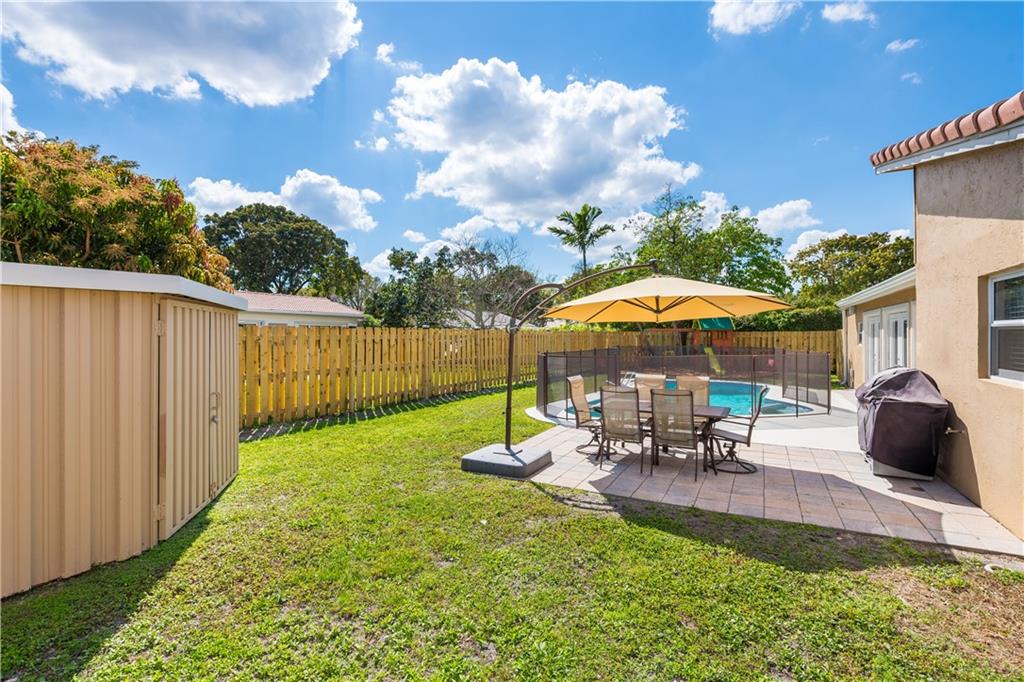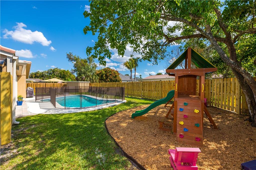 Turnkey, completely updated 3 bed/ 2 full baths/ 2 car garage pool home with lots of upgrades. Open floor plan with updated kitchen boasting wood cabinets, extra large island, pantry, granite counters, stainless appliances. Large, nicely landscaped, newly fenced yard with pool, spa and kid's playground. Interior features huge master bdm with his/ hers walk-in fitted closets, updated master bath with double vanities and large shower. Large family room with 3 sets of French doors with tons of natural light, surround sound and ceiling fans. Dining room has vaulted ceiling and large picture window. Home also features alarm system, security cameras, impact windows, recessed lighting and no popcorn throughout. Great family neighborhood close to shopping, restaurants and major highways. No HOA.