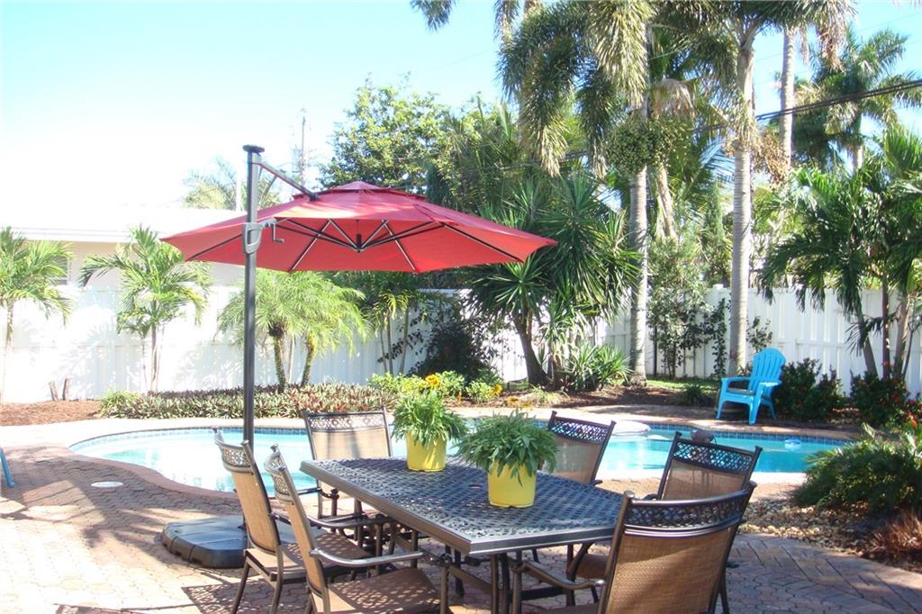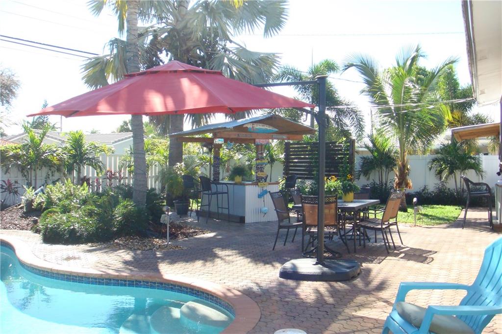 Excellent location & curb appeal on one of the prettiest streets in Imperial Point with sidewalks & mature trees. The absolutely gorgeous backyard with preferred southern exposure feels like a resort with sparkling pool, tiki hut, bar, waterfall, tropical landscaping & privacy fence all around. 3 bed 2 bath home with 1 car garage & separate laundry room, with plenty of room to expand if needed in the future. Updated open kitchen to dining area & french doors to garden. Tile throughout. Master bedroom w/ensuite bathroom. 3rd bed currently used as an office with ultra cool sliding barn doors. This is a great home with a backyard to fall in love with & enjoy S.Florida living all in a fantastic desirable neighborhood, close to beaches, shops & restaurants. A must see at this new price point.
