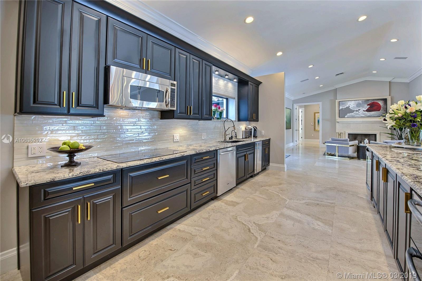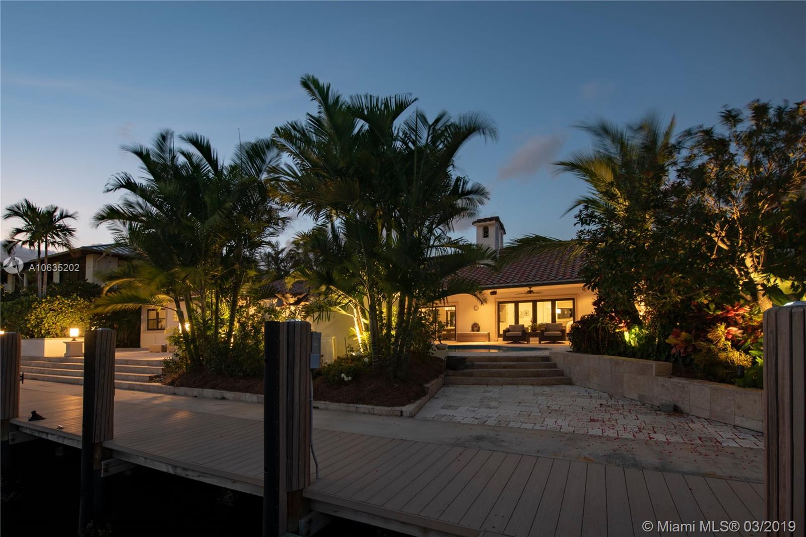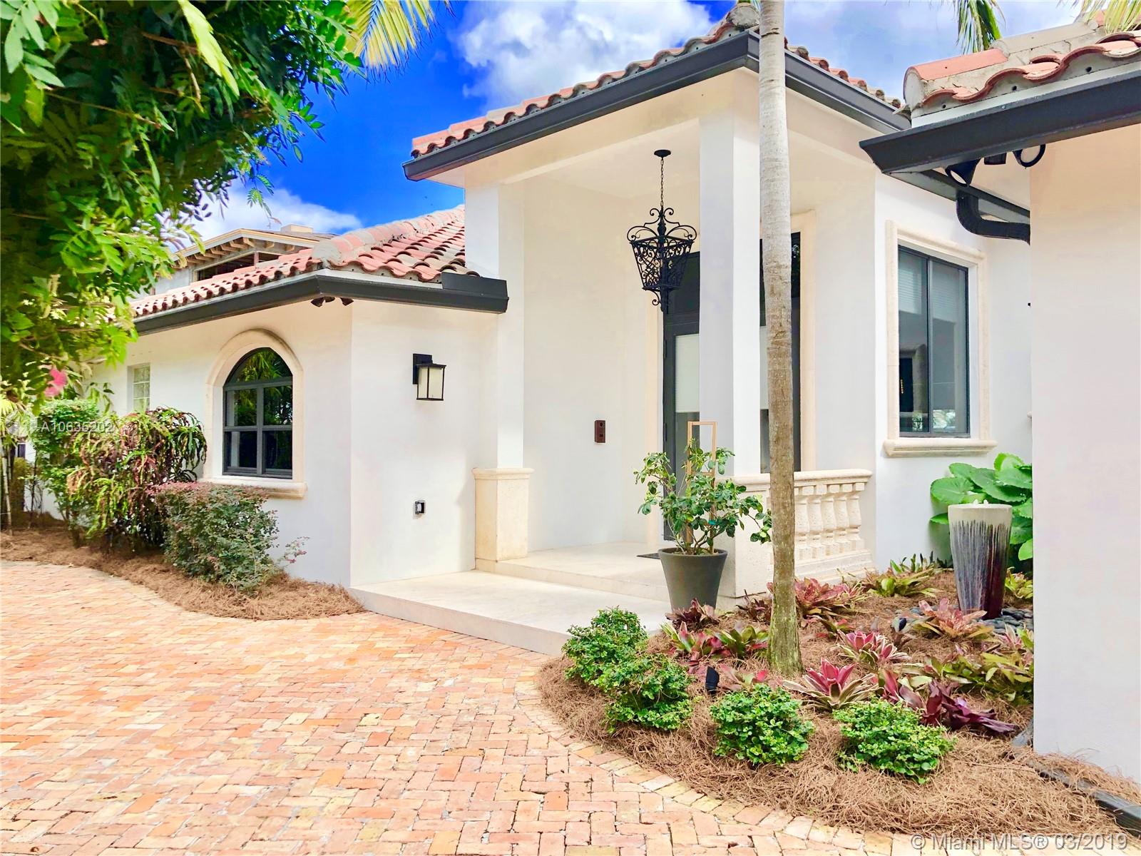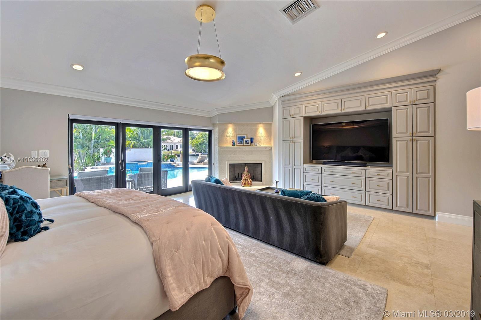 Open floorpan in this Spanish style updated home, all in one story! Large master bedroom with it's own a/c, his and hers closet. Master bath with double sinks, jacuzzi, huge shower for two with rain head, towel warmer and electric Toto toilet. Kitchen is well equipped with induction cooktop, ice maker, Subzero fridge and wine cooler, large granite island counter for entertaining. Control4 home automation system with gate and front door cameras for safety and entry! Two stone wood burning fireplaces. Lot is 125' deep so it allows for large backyard with lagoon style pool with waterfall spa. Dock is 100', has shore power and 16,000 pound boat lift. Walled and gated residence with Chicago brick circular driveway, lush landscape and outdoor lighting.