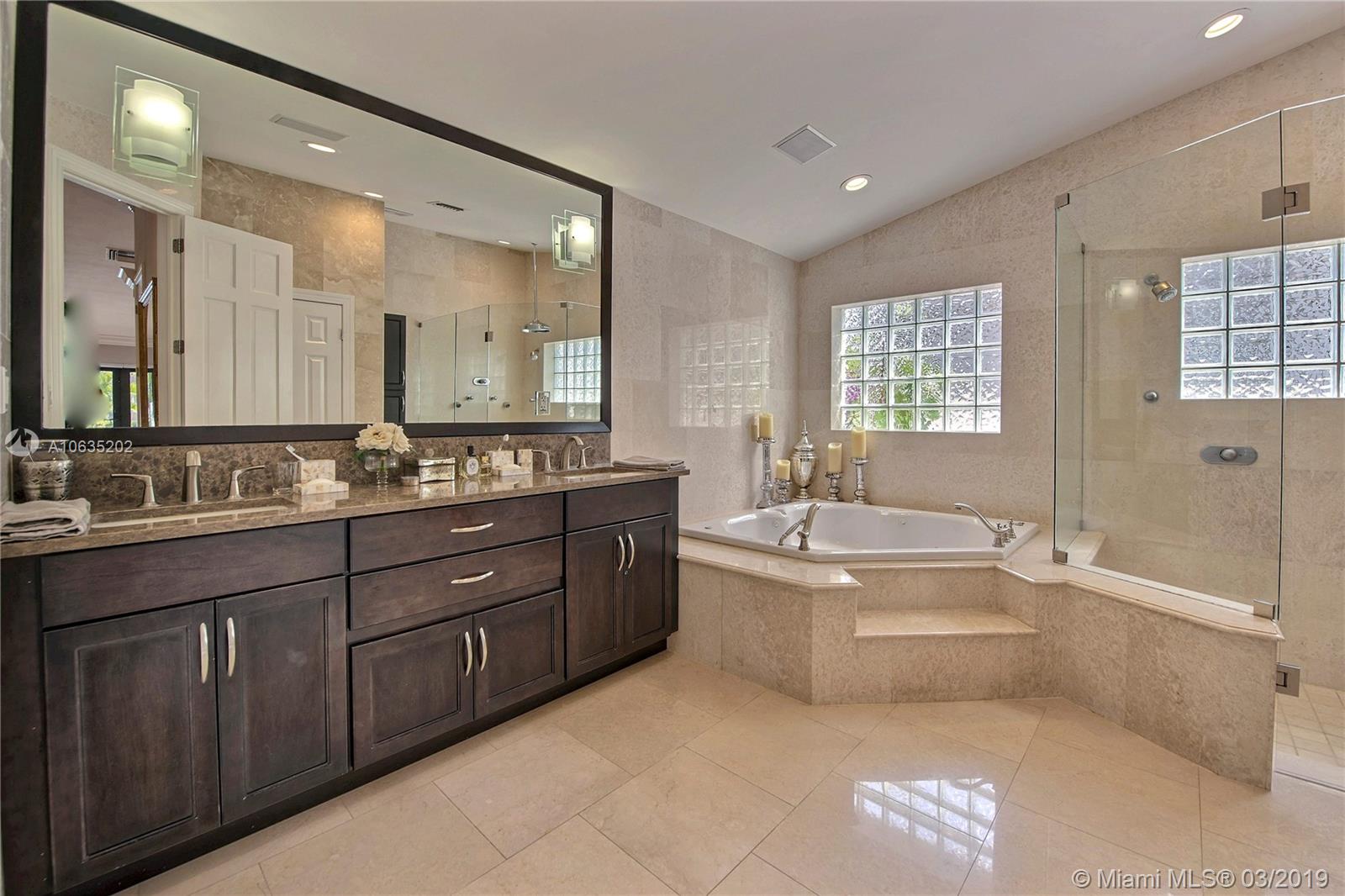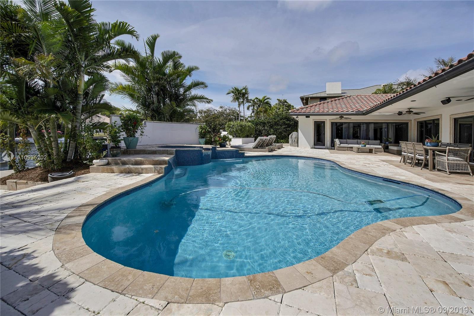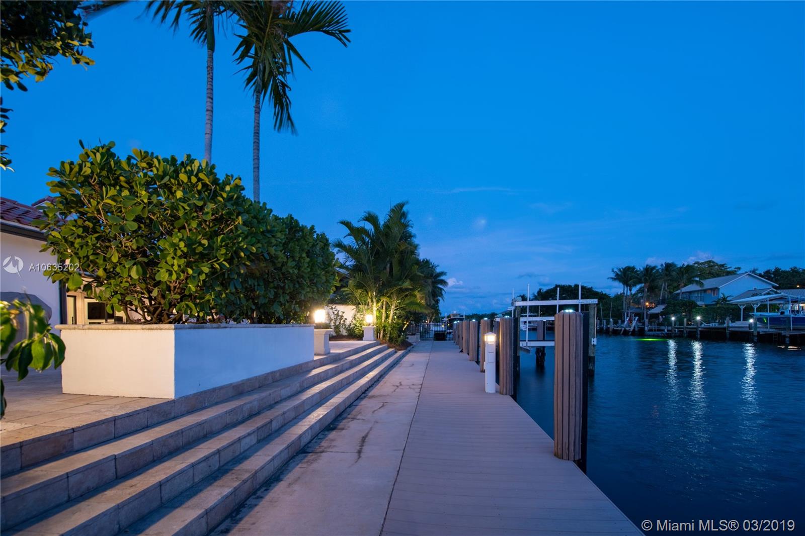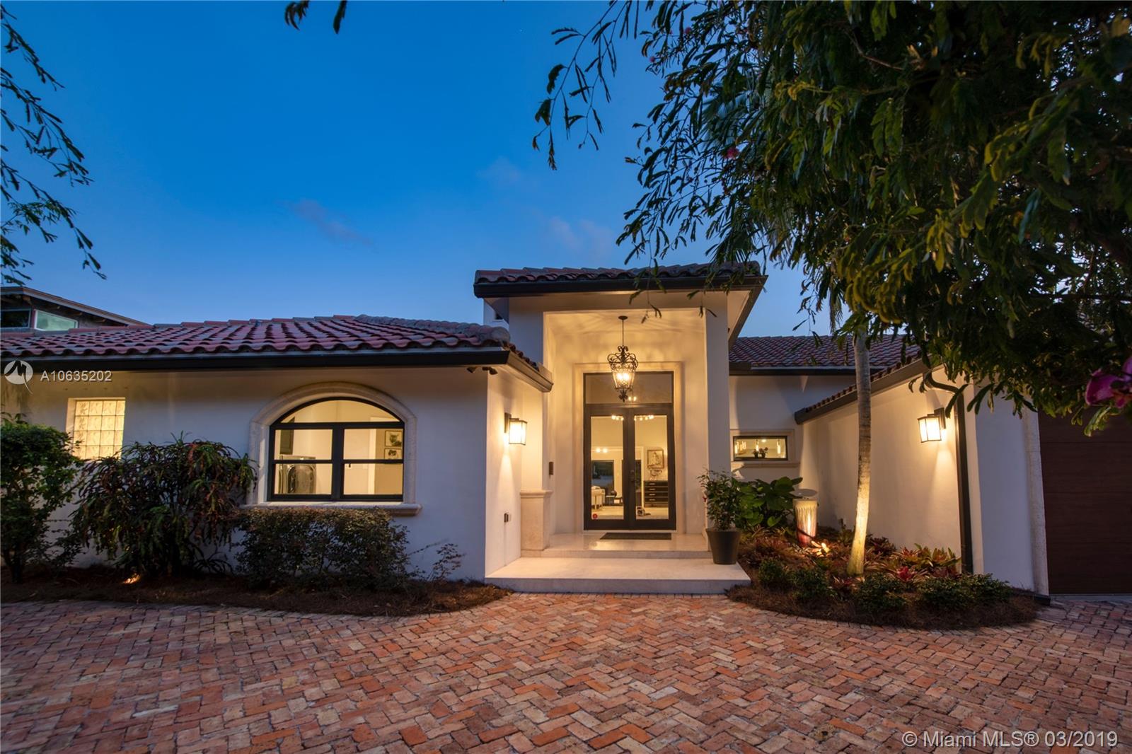 Open floorpan in this Spanish style updated home, all in one story! Large master bedroom with it's own a/c, his and hers closet. Master bath with double sinks, jacuzzi, huge shower for two with rain head, towel warmer and electric Toto toilet. Kitchen is well equipped with induction cooktop, ice maker, Subzero fridge and wine cooler, large granite island counter for entertaining. Control4 home automation system with gate and front door cameras for safety and entry! Two stone wood burning fireplaces. Lot is 125' deep so it allows for large backyard with lagoon style pool with waterfall spa. Dock is 100', has shore power and 16,000 pound boat lift. Walled and gated residence with Chicago brick circular driveway, lush landscape and outdoor lighting.