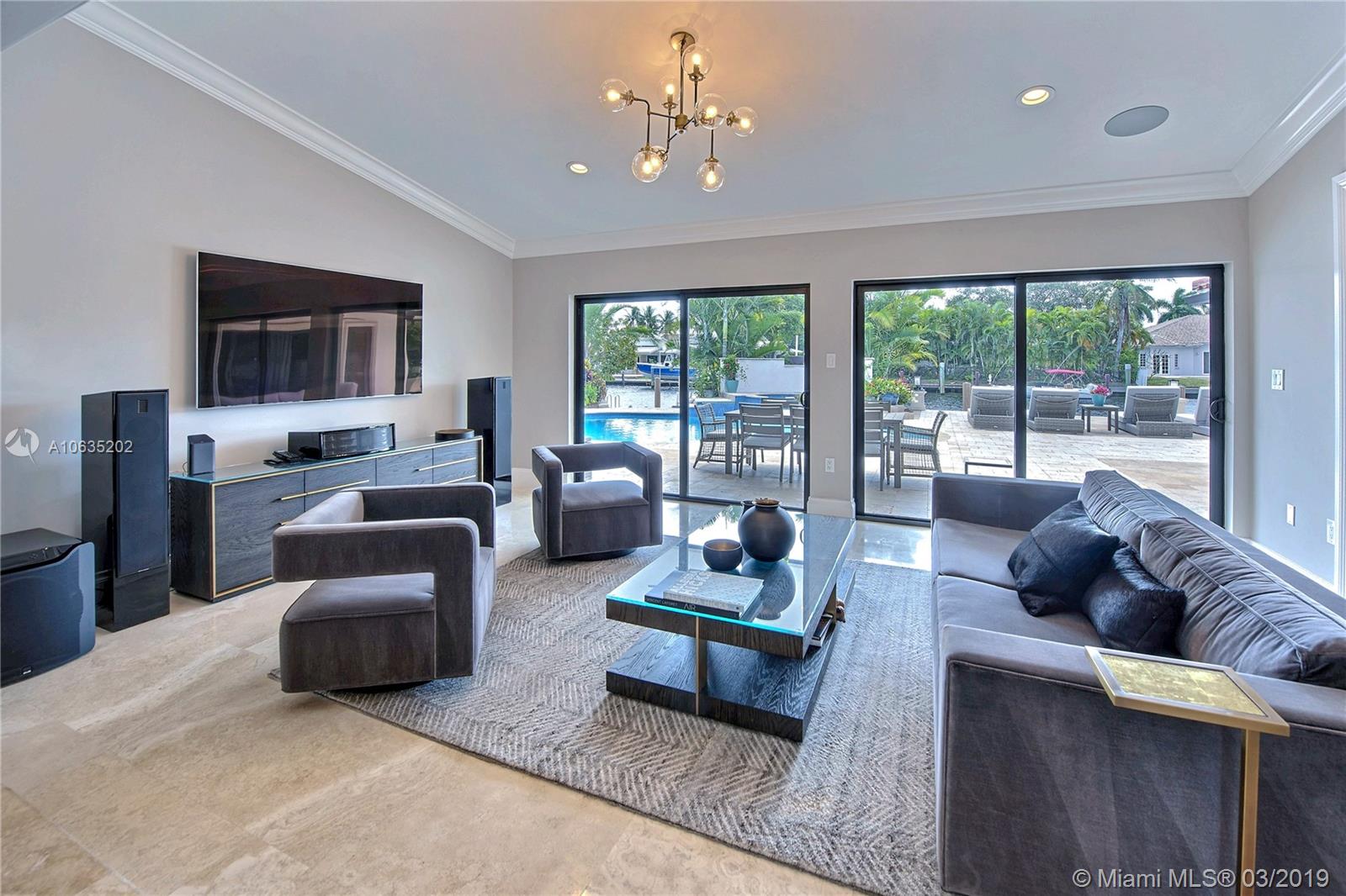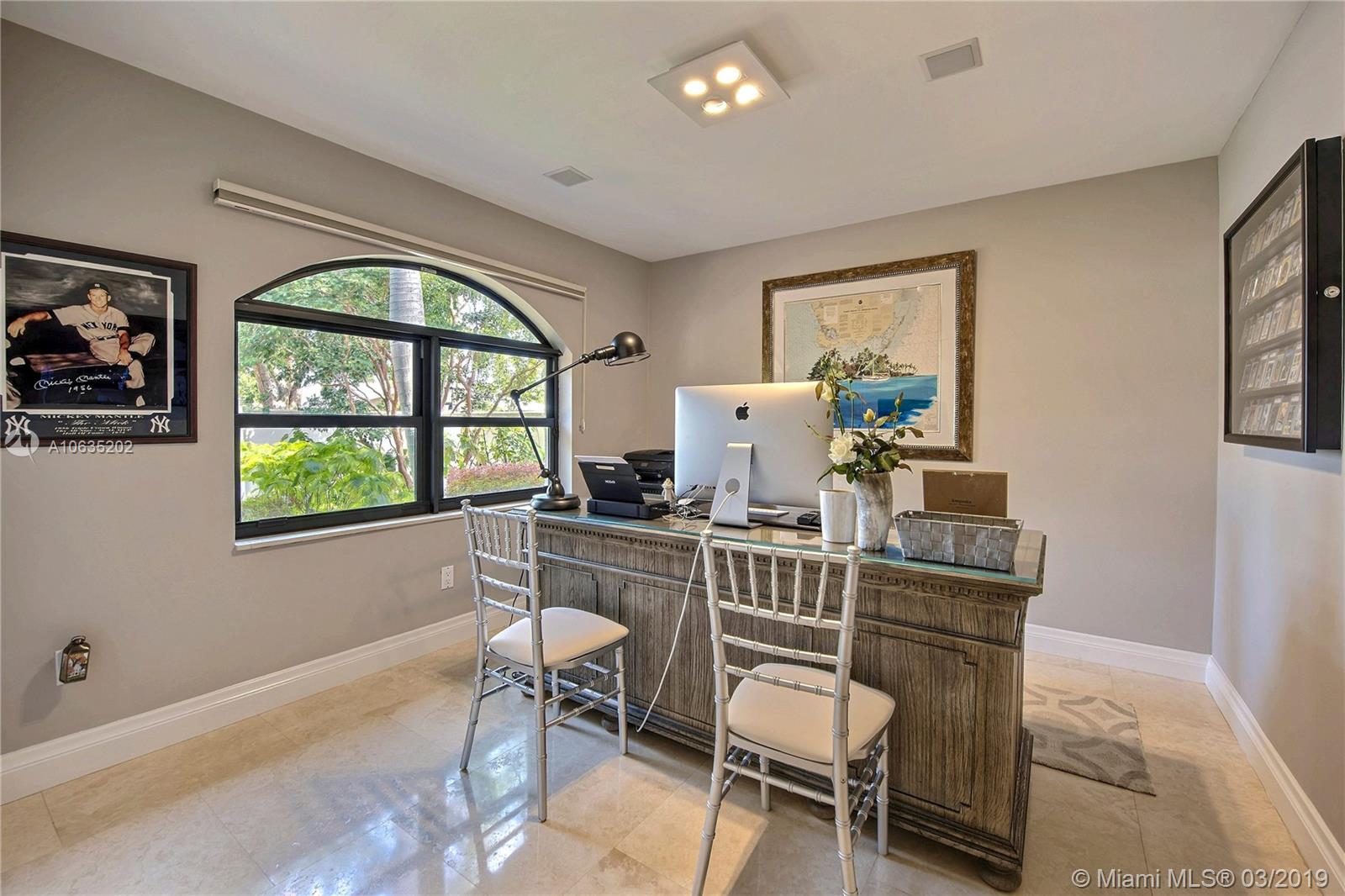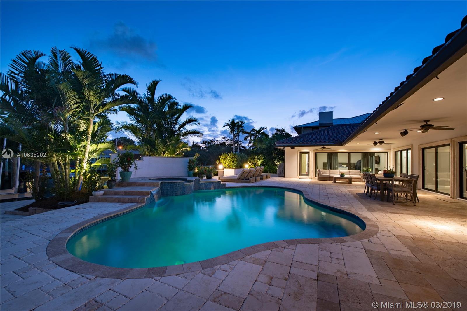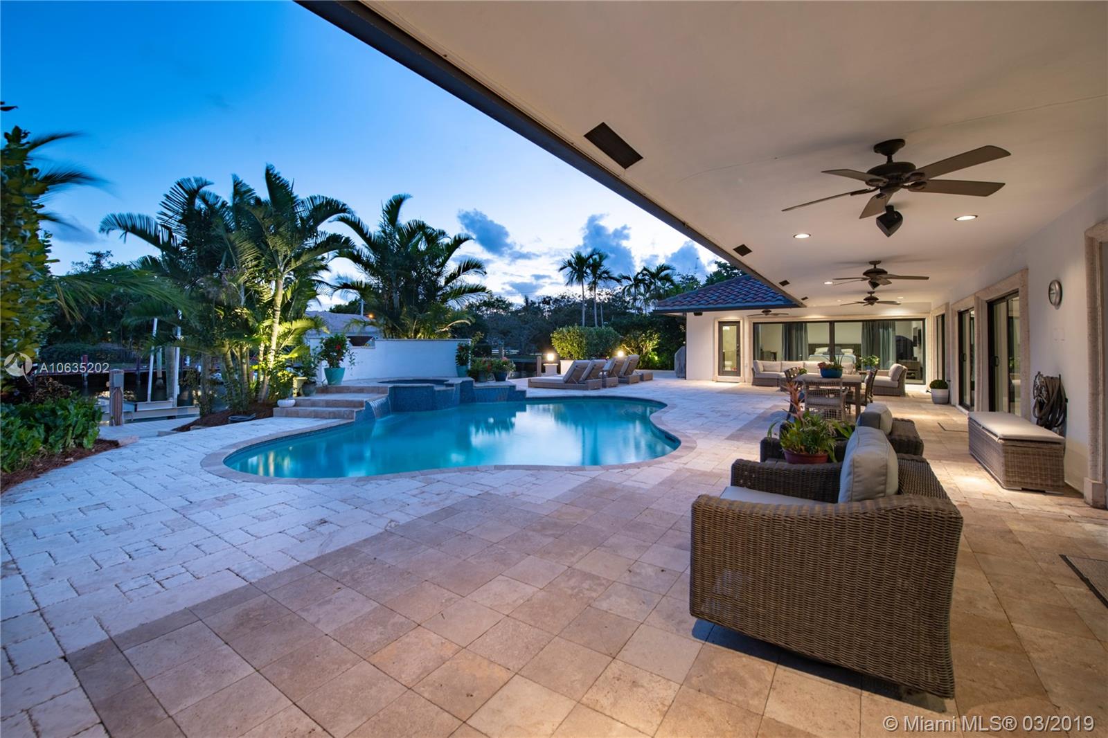 Open floorpan in this Spanish style updated home, all in one story! Large master bedroom with it's own a/c, his and hers closet. Master bath with double sinks, jacuzzi, huge shower for two with rain head, towel warmer and electric Toto toilet. Kitchen is well equipped with induction cooktop, ice maker, Subzero fridge and wine cooler, large granite island counter for entertaining. Control4 home automation system with gate and front door cameras for safety and entry! Two stone wood burning fireplaces. Lot is 125' deep so it allows for large backyard with lagoon style pool with waterfall spa. Dock is 100', has shore power and 16,000 pound boat lift. Walled and gated residence with Chicago brick circular driveway, lush landscape and outdoor lighting.