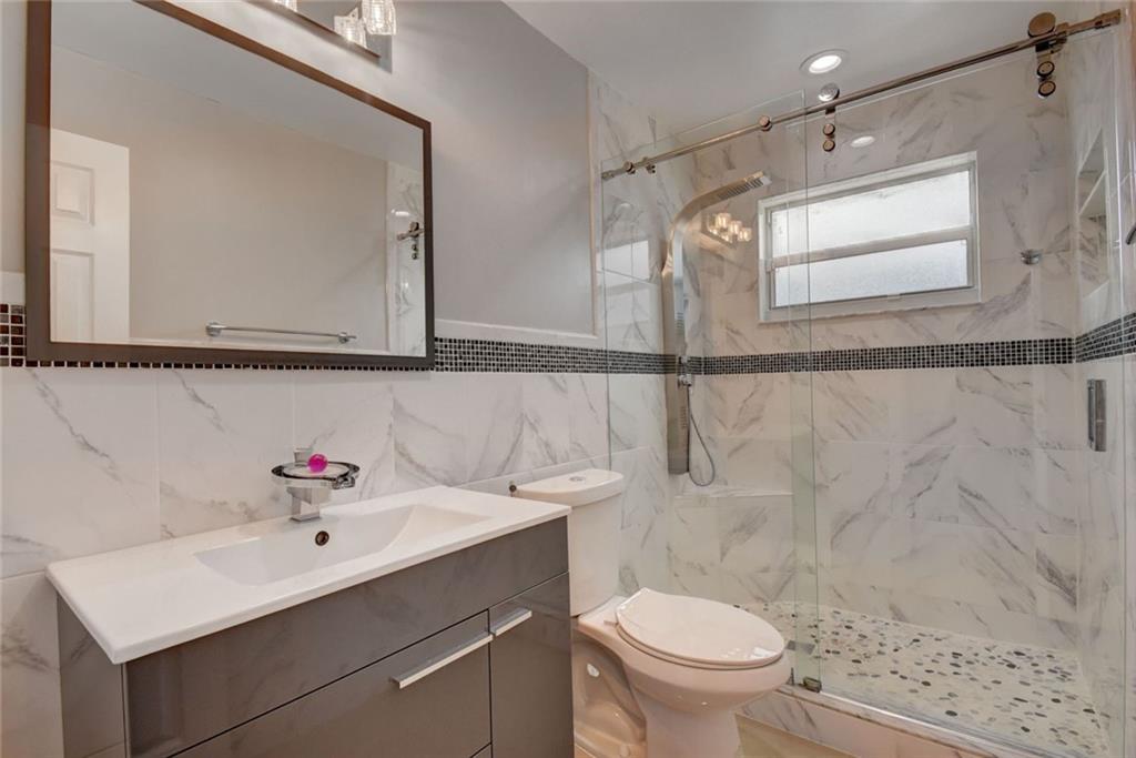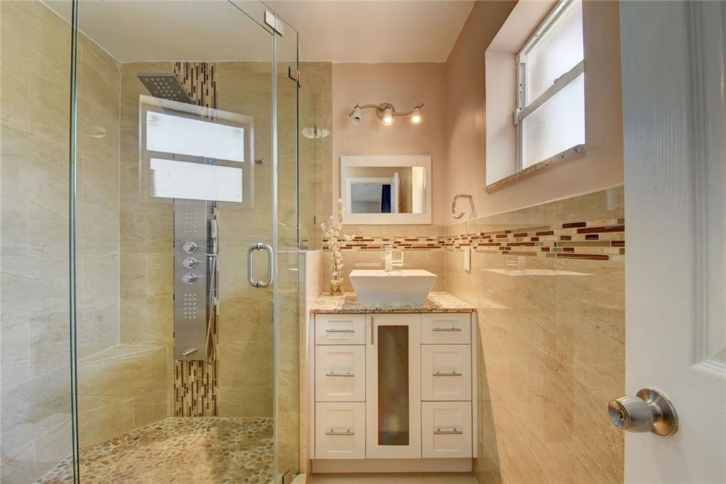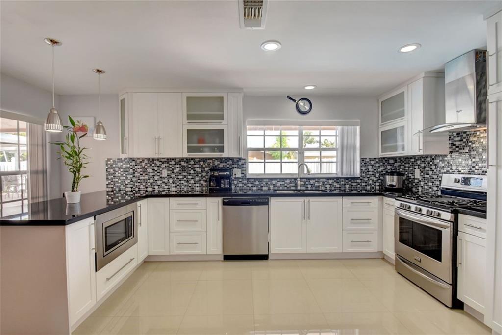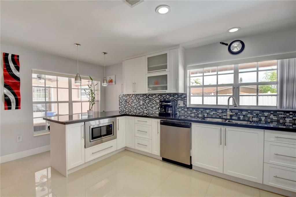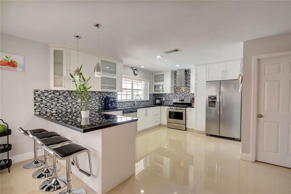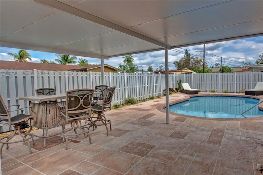 MOTIVATED SELLER. Completely remodeled 3 Bedroom, 2 bath, private pool, modern white aluminum fence. Totally renovated, 24"x 24" rectified tile throughout, recessed LED lights, new windows with accordion shutters and impact doors. Stainless appliances, new trendy white wood kitchen cabinets, side by side refrigerator, gas stove, gas dryer, granite, modern remodeled bathrooms with massage jet spray shower panel, frameless shower doors, recessed covered patio, newer roof, Nest thermostat, newer A/C, updated electrical panel, walk-in closets, freshly painted in neutral colors. Lots of natural light. Convenient to shopping and businesses. Garage has been converted to an office with plenty of tool storage left over. NO HOA.