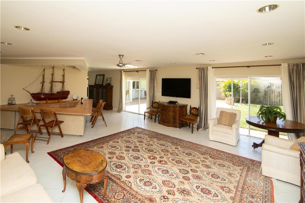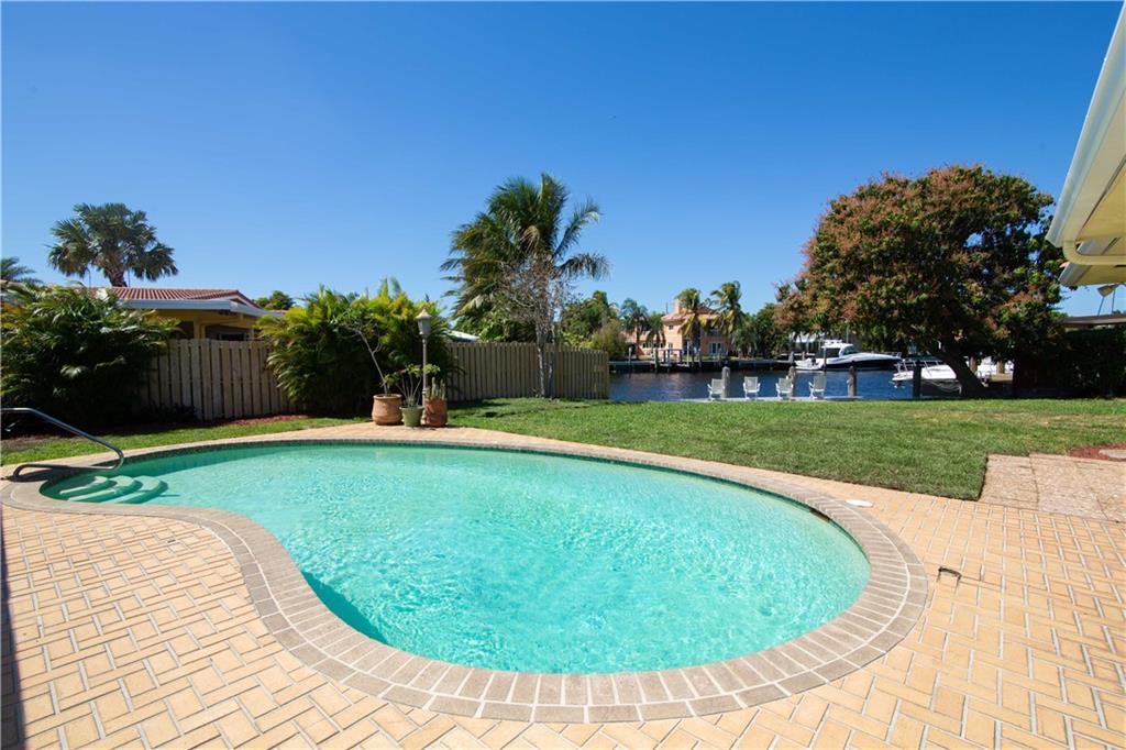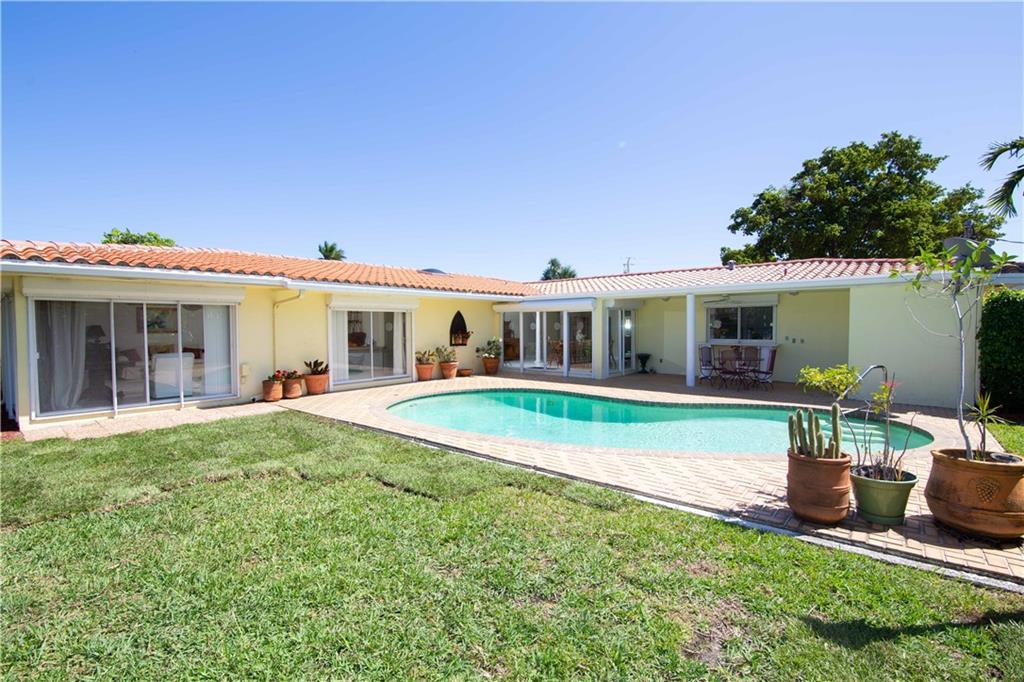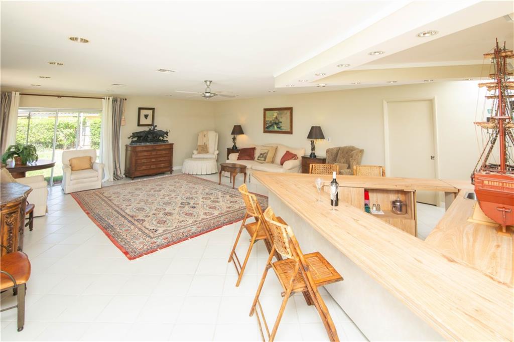 Enjoy pool and waterfront views from most every room in this classic Landings residence. Situated on over a third of an acre this spacious home features four bedrooms each with a private bathroom, a magnificent family room with a wet bar, a huge master bedroom with a sitting area, custom cabinetry, new dock, hurricane shutters and more. This ocean access home has no fixed bridges and is located just two minutes from the intracoastal. This house is ready for your decorator touches and could easily accommodate an in-law suite.