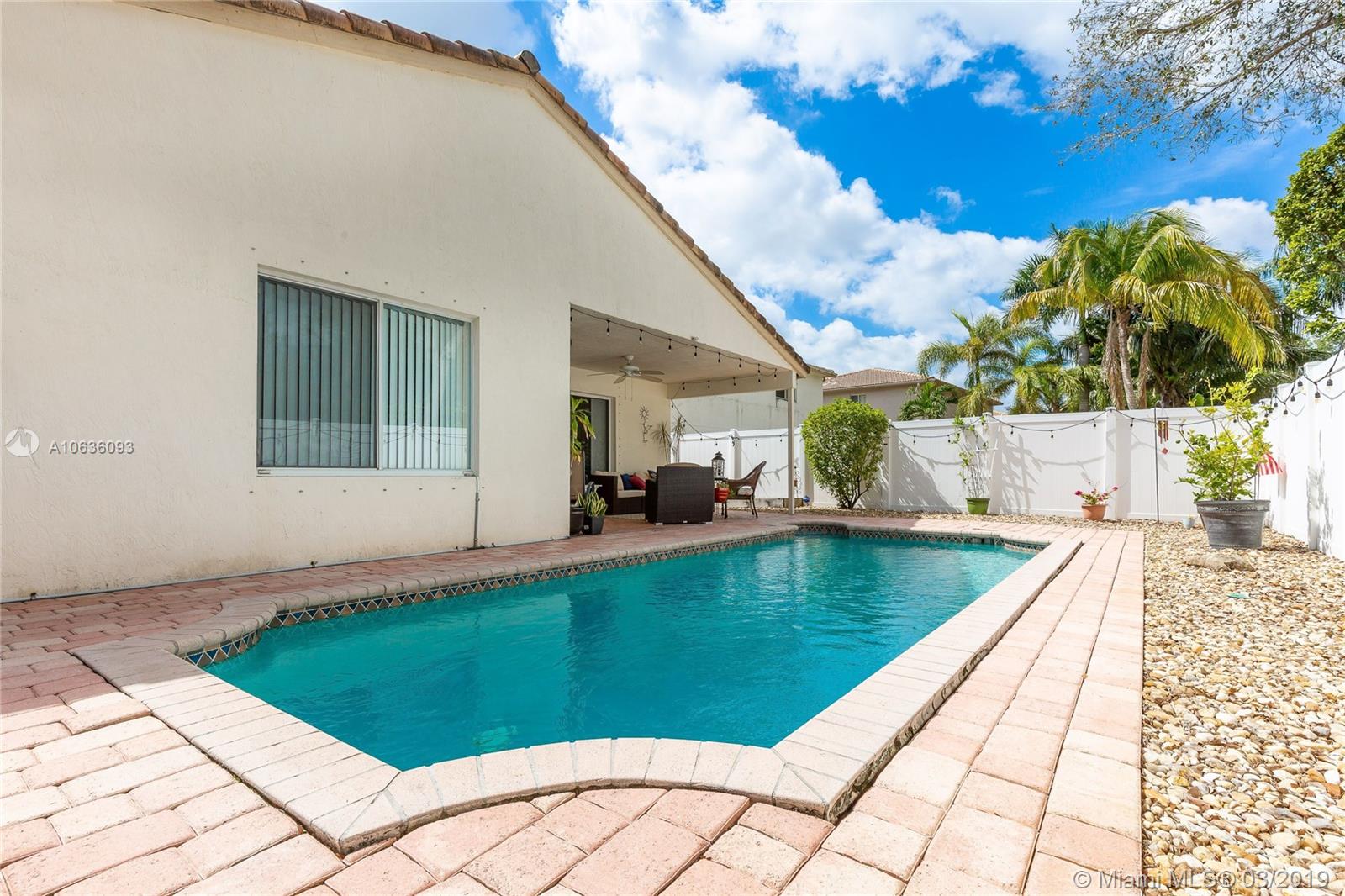 Beautiful 4 bedroom 2 1/2 bath Pool home in desirable "Silver Falls". Ideal floor plan that has been impeccably maintained inside and out. Large 2 car garage. Tile and Wood flooring throughout. Solid wood kitchen cabinets with granite countertops. Solar pool heater, salt water chlorination system, and pool pump only 2 yrs. old. Air conditioner, all kitchen appliances, and solar water heater all only 2-3 yrs. old.Low HOA ($145/mo.) includes all community amenities (clubhouse, tennis courts, gym, kids play area, pool), garbage & recycling services, extended basic cable Comcast service, & 24/7 gated security.