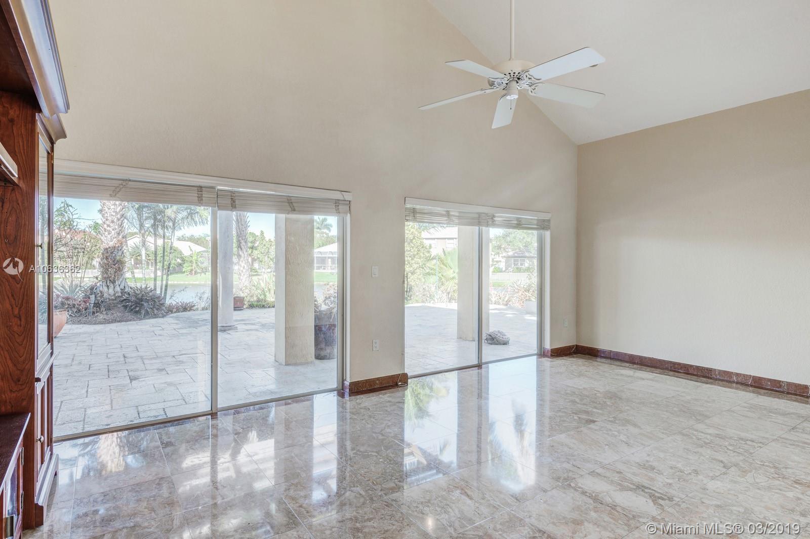 BRING ALL YOUR OFFERS VERY MOTIVATED SELLERS! 4 bedroom 3 full bathroom lake front home on a private cul-de-sac! Beautiful panoramic lake views from almost every room! Sprawling entertaining space flowing w/ marble flooring throughout the downstairs and high volume ceilings. 1 full bdrm in-law suite downstairs w/ full bathroom! Beautiful kitchen w/ wood cabinets, granite countertops that passes straight into that family room. Great for gathering! Hardwood flooring upstairs. Spacious master bedroom with a walk-in closet and balcony overlooking the lake. Enjoy the sunrise and sunset in your very own tropical oasis backyard Oversized lot with 141 feet of lake frontage. 2 car garage! 24/7 guard gate. PRIME LOCATION! PRICED VERY AGGRESSIVE!!