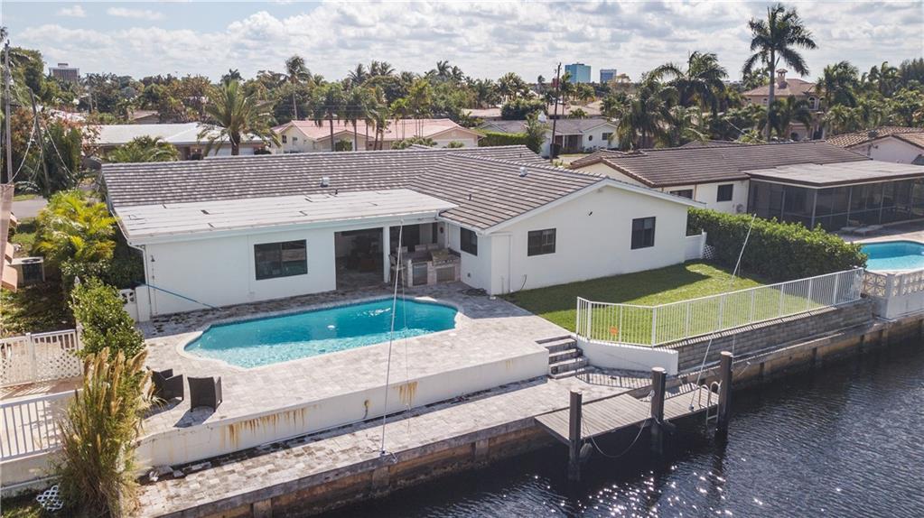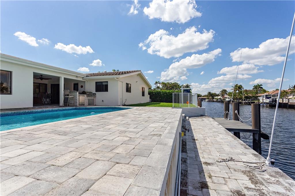 85' Waterfront home completely renovated comprising 4-bedroom + Den, 3-bath & featuring a great open floor plan with wood cabinetry kitchen, top of the line appliances and quartz countertops & Ocean access. Large Master suite with large his and her closets with built-ins, luxury master bathroom with dual vanities, soaker tub, and expansive shower with multiple rain heads. The den is located next to the master suite and it could be used as den or office. The 3rd bath features a Jack and Jill sinks and a French door accessing the pool and covered patio area. The home features an oversized garage and a large laundry room with built-in cabinets and a high-efficiency washer/dryer. The indoor-outdoor flow in this home is amazing for family lifestyle, entertainment or boating. Motivated Sellers!