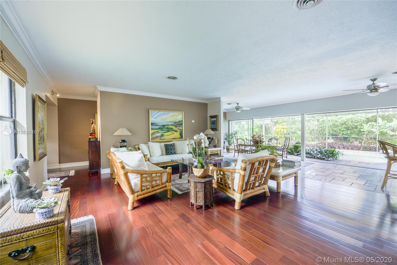 Live in wonderful Pinecrest in a lovingly cared for home. Enjoy the large open living room spaces which open to the beautiful pool via 6 sliding doors. This is a "home" which has a peaceful feeling and is in move in ready condition. The kitchen is open to the living areas and updated. Two of the 3 baths open to the pool patio. The very clean and well kept wood and Terrazo floors are beautiful. The home is situated on a large lot, 15,000 sq ft. New central air cond. year 2020. Roof is only 3 years old, 2 car garage & hurricane shutters protection. Interactive 3D video available