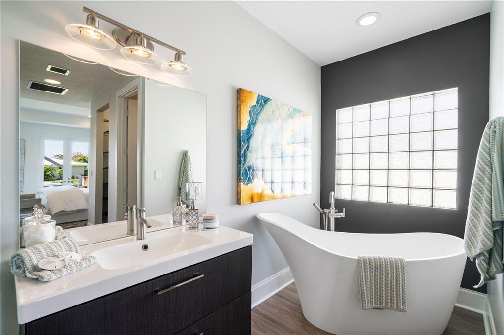 One of a kind exceptional modern home built in 2017. 3 bedrooms + den (could be 4th bedroom) plus bonus room over garage with so many possibilities. Open floor plan, soaring ceilings, 2 1/2 luxurious baths. Spa like master bath with gorgeous soaker tub, rain shower, his and hers vanities, his and hers walk in closets with European built ins. You'll think you're at a 5 star hotel! The gourmet kitchen looks like it belongs in a magazine! Massive island with room for your family and friends, gas cooking, high end stainless steel appliances. Impact windows and doors, large backyard with plenty of room for a pool. 40' dock with 12,000 pound boat lift. 1 high fixed bridge. This is the one! You have to see it to take in all the extras!