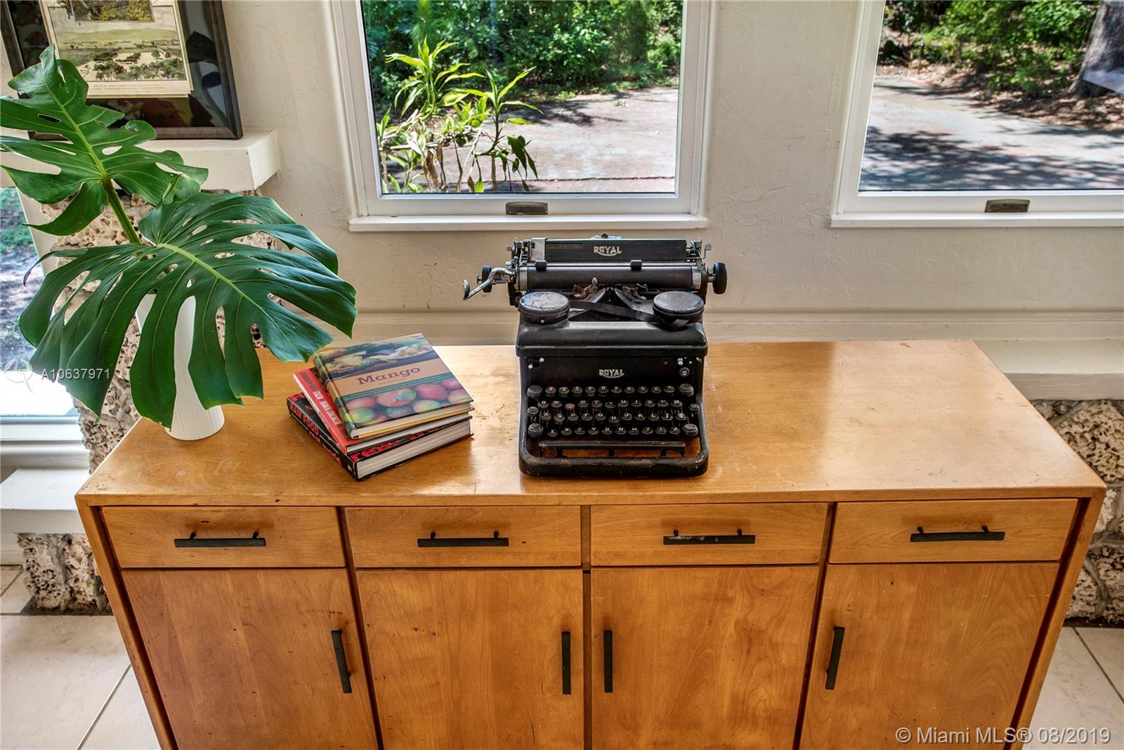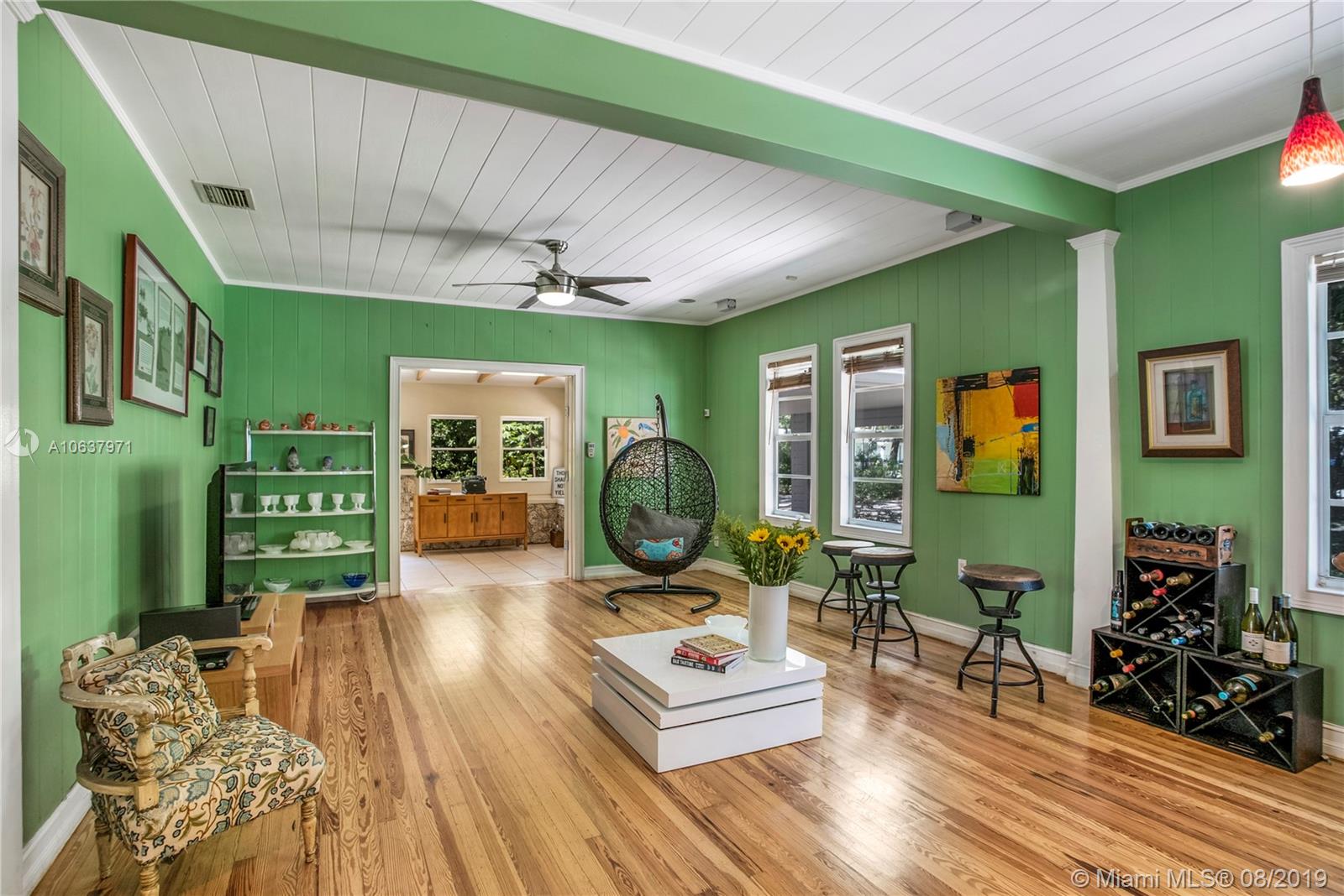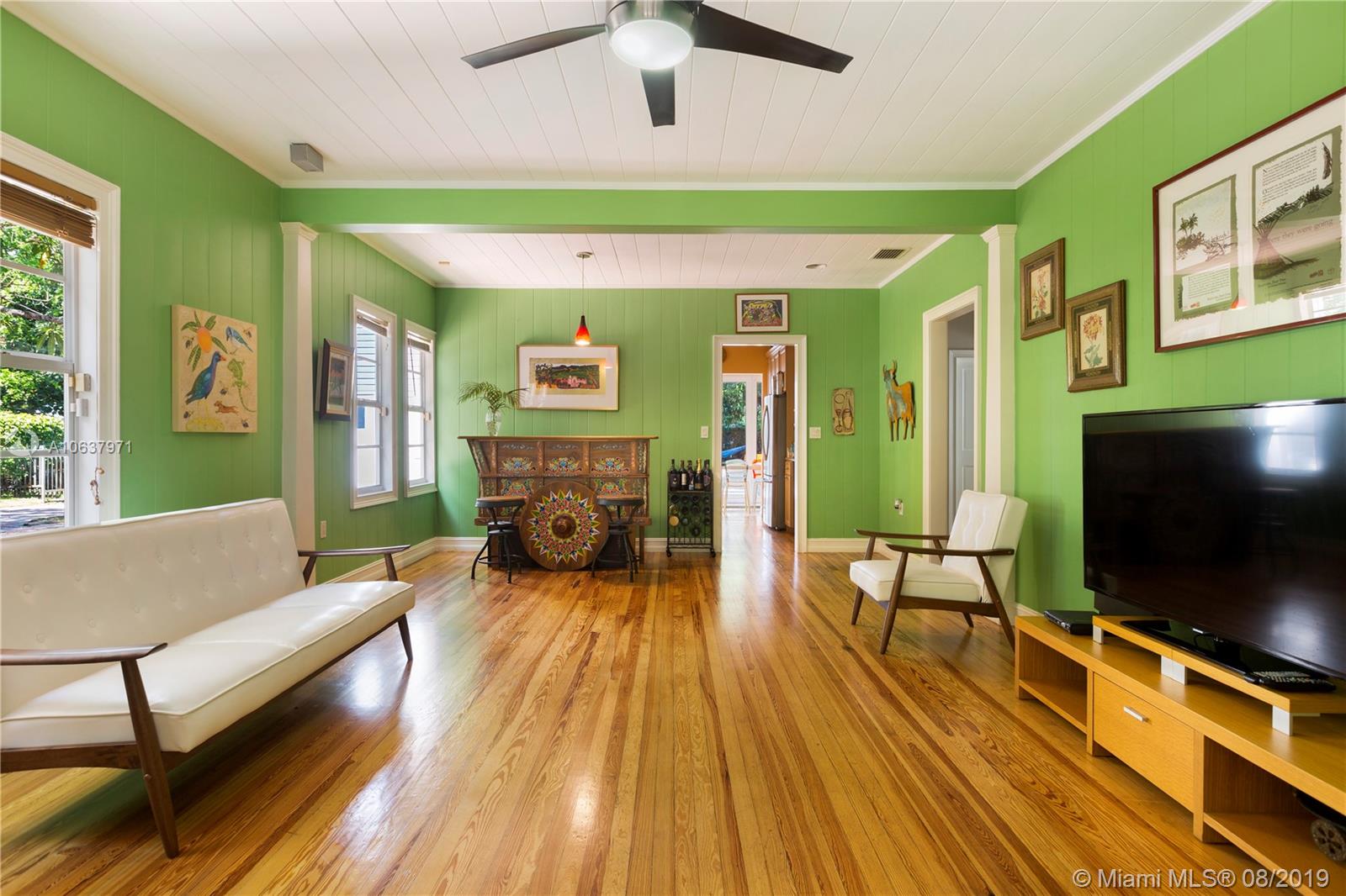 THE MANGO HOUSE represents a RARE OPPORTUNITY to acquire a prime Miami Shores parcel of unprecedented scale, encompassing nearly ONE ACRE of land in one of Miami’s most desirable residential enclaves. Quietly situated in a prime Miami Shores location, between Biscayne Boulevard and Biscayne Bay. Built in the 1930s, the oversized bungalow is surrounded by abundant mango, avocado, and sapodilla trees, and ringed by a perimeter of mature oaks. The Mango House interior features original wood floors, a lovely master bedroom with an upstairs writer's den accessed by a spiral staircase, and a second master overlooking the garden. Exterior features include coral rock front steps, peaked slate roof, pool, 36 solar panels, and a deck overlooking the verdant landscape. Come see this green sanctuary!