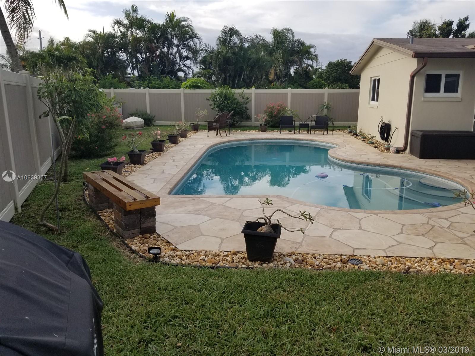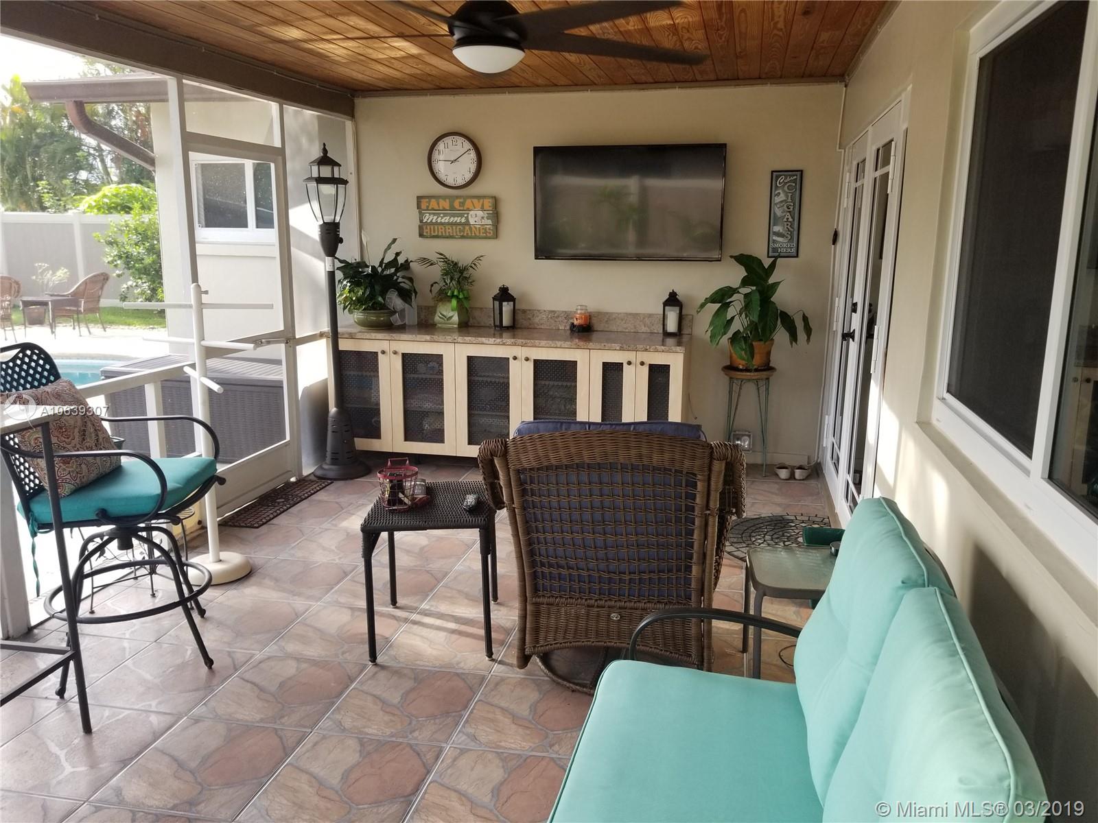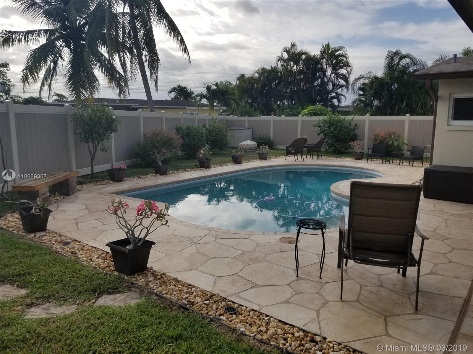 Close to shopping areas and schools. Totally upgraded with high impact windows and doors, yard vinyl fence, ceiling fans in all rooms, bedrooms have walk in closets, remodeled kitchen, granite counters with lots of storage, tankless water heater, screen patio w/refrigerator and cabinets, potting shed, grill pad, interior laundry room with extra cabinets, extra fridge in one car garage, pool just re-surfaced, landscaping throughout, large hallway closet for additional storage. MUST SEE, EXCELLENT CONDITION, SOLD AS-IS.