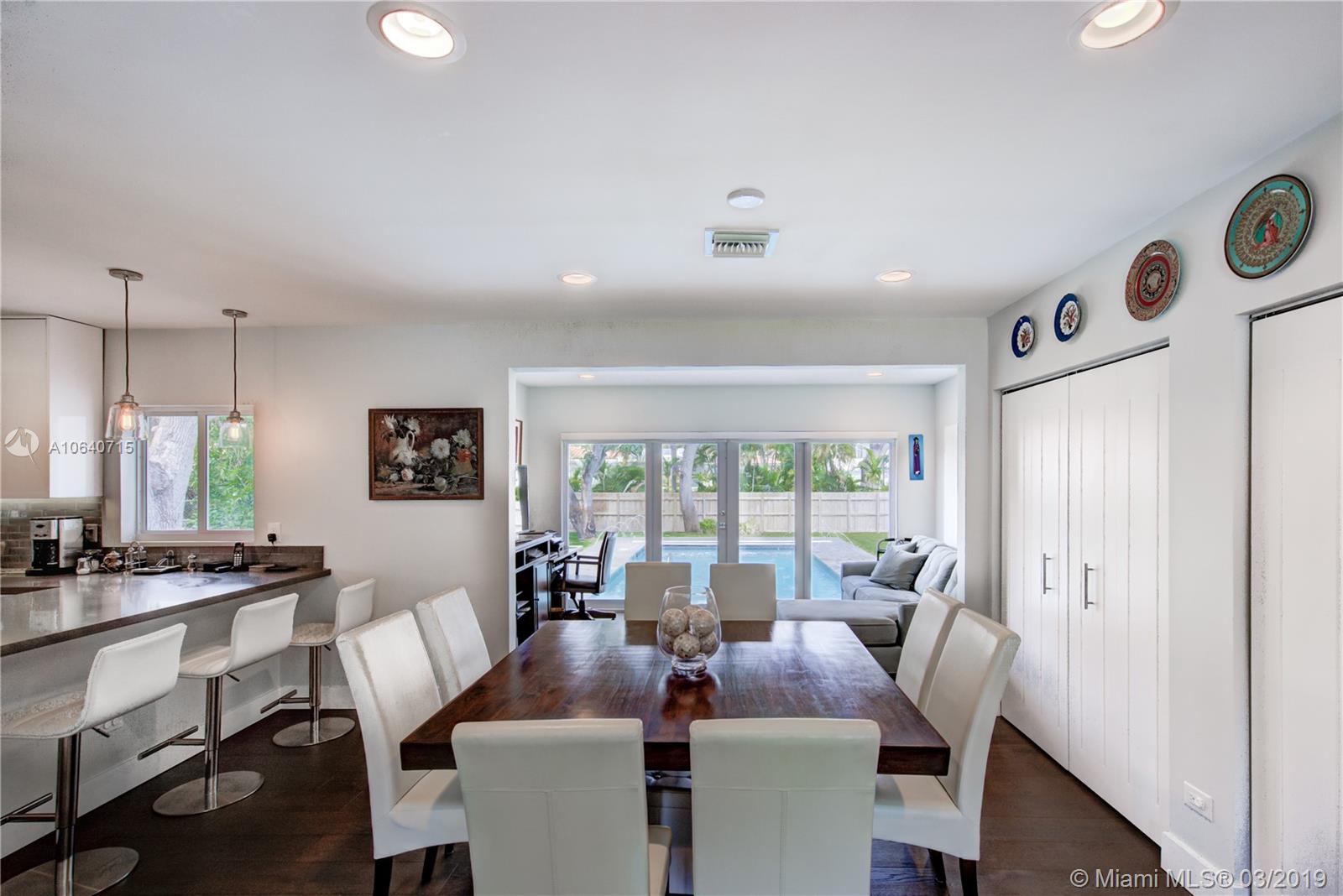 Great curb appeal and a beautiful front lawn set the stage for this move-in-ready east of Biscayne, Miami Shores charmer situated on an oversized lot just blocks from the Bay. Completely renovated in 2017 including a new roof, all impact doors & windows, new spacious kitchen with expansive countertops & storage, and new plumbing & electrical systems. French doors open to a resort-style heated pool and lovely landscaping. Open floor plan and expansive back garden/pool area. SQ FT per appraisal.