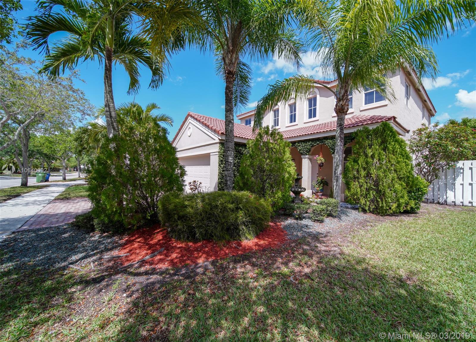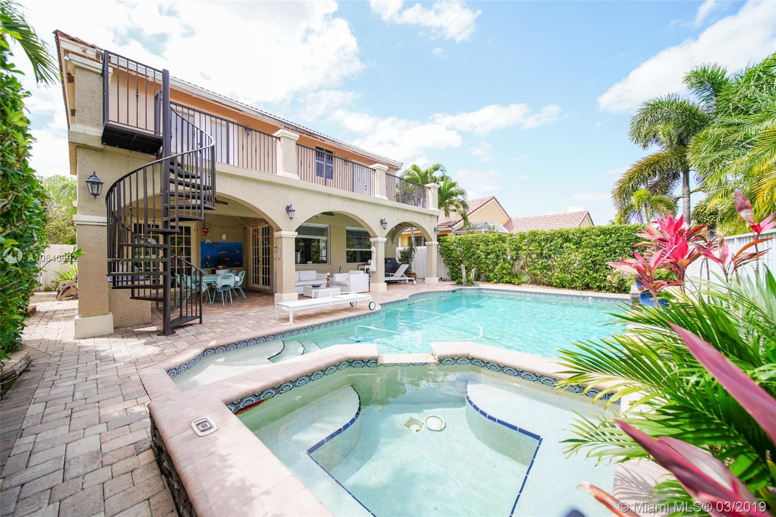 Beautiful 4 bedrooms and 2.5 bath single home, breathtaking landscape with lighting. Large heated salt water pool with water falls lights. Outdoor speakers and surround sound, built in BBQ grill, custom made wine cellar, tank-less water heater, new A/C, security system, sprinkler system, hurricane shutters & some impact windows, paved driveway, large balcony with lake views.
