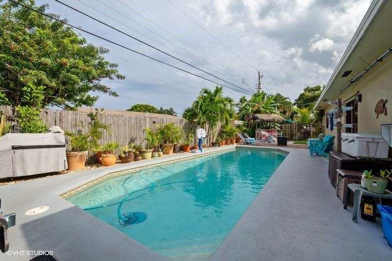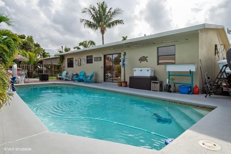 Come Enjoy this Updated 3 bedroom Charming Home in East Pompano!! The Beautiful backyard Oasis including Tiki Bar and Pool makes you never want to leave!! Meticulously Landscaped with Lush Trees, Oversized Driveway, Brand new Kitchen Appliances, Newer AC and Washer/Dryer. Close to Beach, Restaurants, Shopping, and Major Highways.