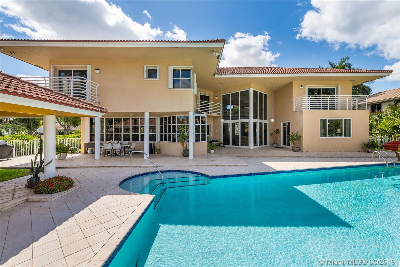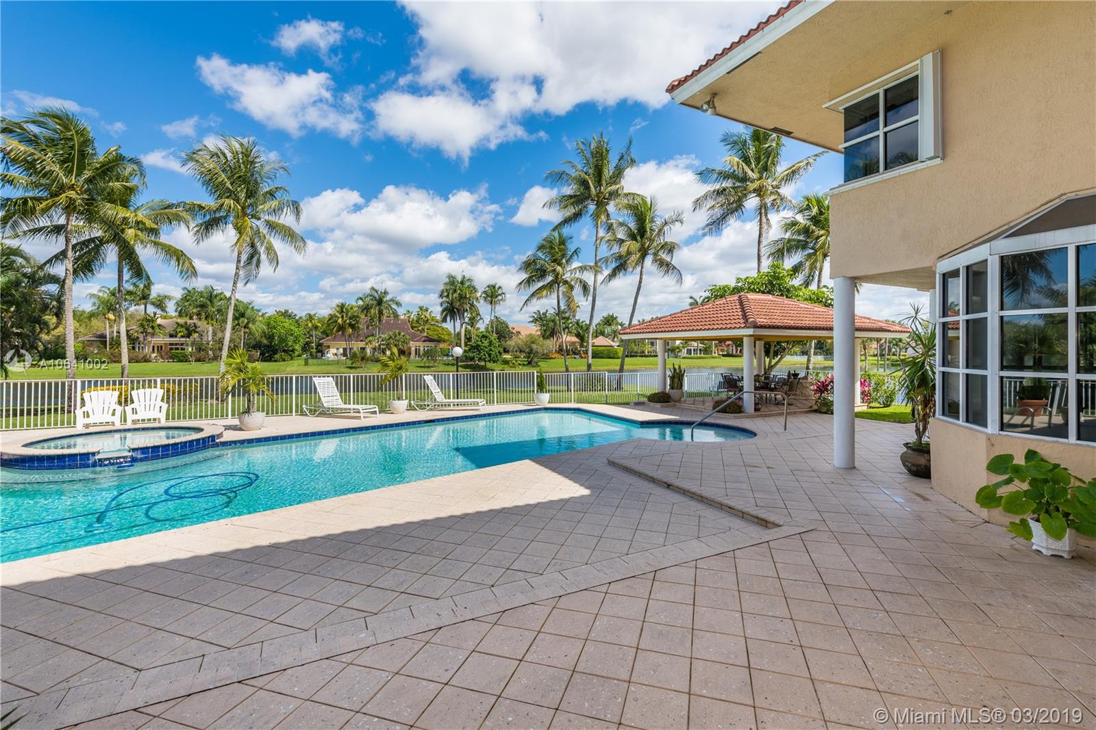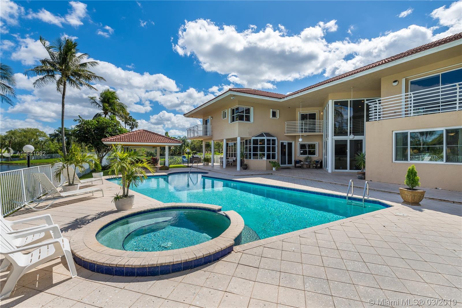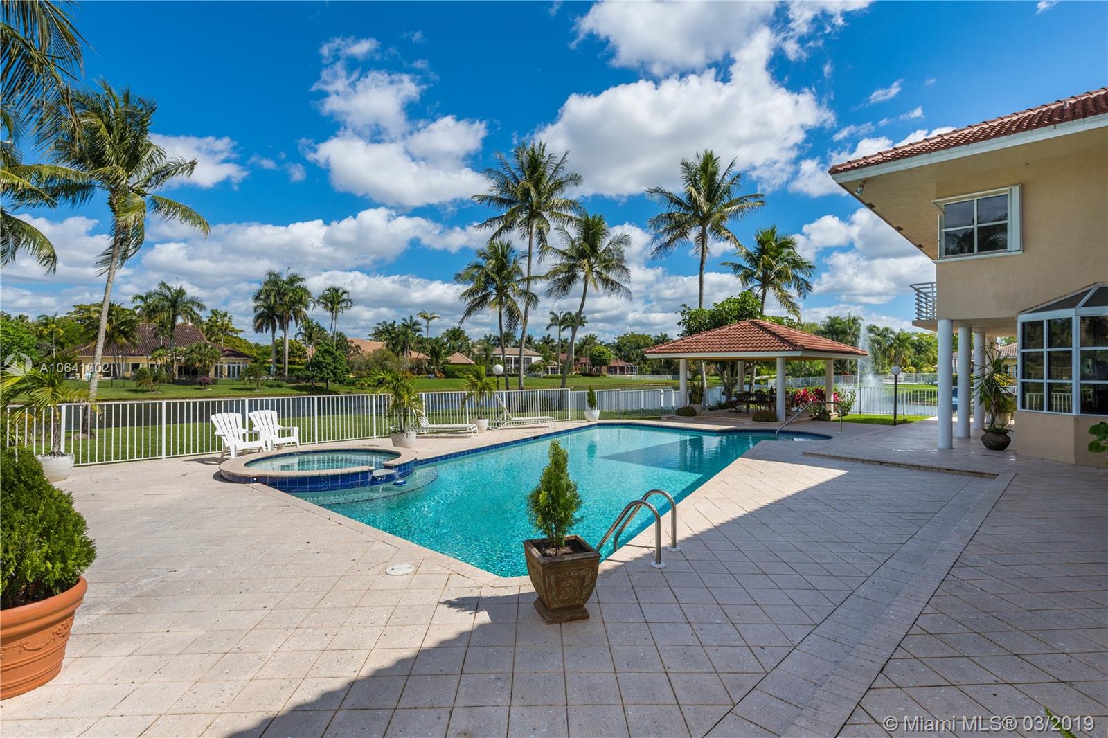 The Hamlet is a private gated boutique community of 35 custom homes. This one is on a point lot with panoramic water and fountain views from 2 sides. 6 bedrooms plus 2 bonus rooms (currently office and game room) 2 rooms with full baths on first floor plus guest bath. Two large master suites upstairs. Beautiful new kitchen with all the extras. Marble and bamboo flooring. Soaring ceilings and abundant IMPACT (brand new) windows for natural lighting, safety and spectacular views. Enjoy the Florida lifestyle with sparkling pool/spa, covered patio and Gazebo. This home is an entertainers DREAM. Roof 3.5 years, Accordion shutters or impact for all windows and sliders. 3 car garage with unique dual entries with circular drive. Terrific Davie schools. $20,000 floor credit with accepted offer.