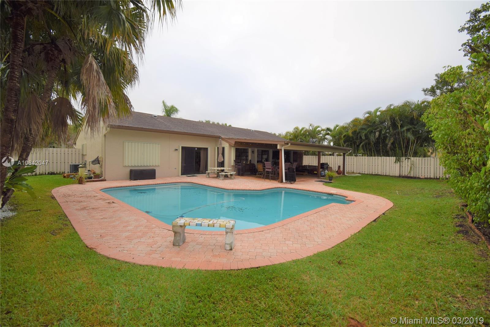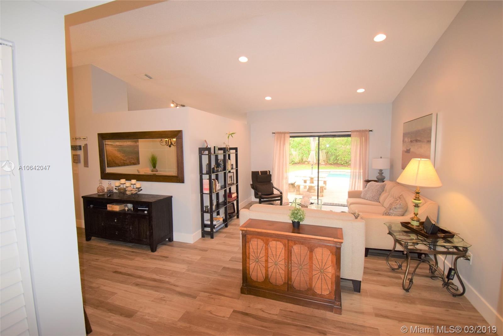WOW! YOUR WAIT IS OVER! TASTEFULLY REMODELED 3 BEDROOM SPLIT FLOOR PLAN, 2 BATH WITH A 2 CAR GARAGE. BEAUTIFULLY UPDATED WITHIN THE PAST 2 YEARS. WIDE PLANK PORCELAIN ITALIAN WOOD LIKE TILE FLOORS ALLOVER THE HOUSE, REMODELED MASTER BATH WITH A DOUBLE WALK IN SHOWER , WHITE KITCHEN CABINETS W/ MARBLE COUNTER TOP & BACKSPLASH, STAINLESS STEEL APPLIANCES, GREAT LIGHTING AND FANS. 2 SLIDING DOORS THAT LEAD TO YOUR OVER SIZED RETREEAT STYLE COVERED PATIO. BEAUTIFUL POOL RECENTLY REFINISHED GREAT SIZE YARD. THIS HOME IS SITUATED ON AN OVER SIZED LOT WITH A FULLY FENCED BACK YARD. SIDE OF THE HOUSE FITS AN RV OR BOAT. A/C UNIT REPLACED ABOUT 2 YRS AGO, NEW ACCORDION SHUTTERS, RECENTLY PAINTED INSIDE. EASY ACCESS TO I-75, I-595, SAWGRASS EXPRSWY. SHOPPING, RESTAURANTS, ETC,