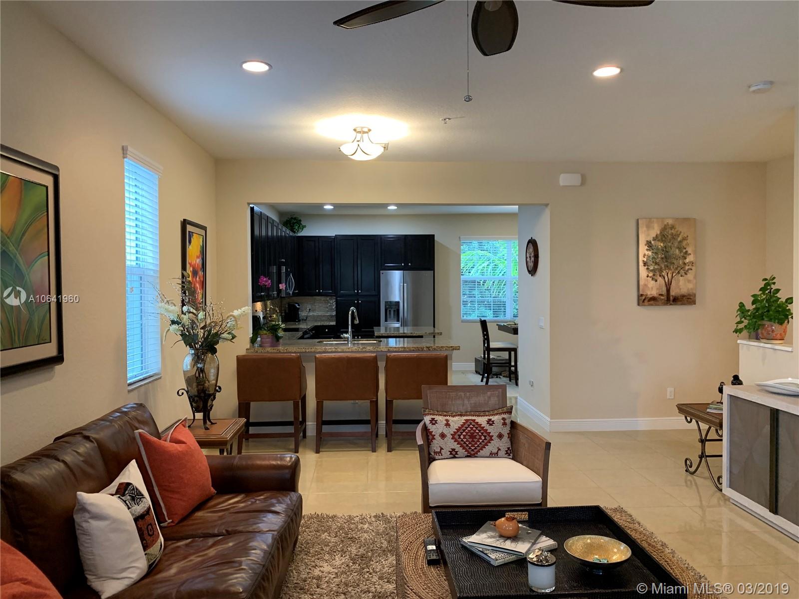 Don't miss out this beautiful tri level townhouse with a 2 car garage, granite countertops, stainless steel appliances, dark wood cabinets, tile on first and second level and carpet on 3rd level. At least 1 bedroom and full bath inside on the first floor. Master Bedroom and 2 Bedroom at 3rd level spacious and very bright. Great Location, just next to New Miramar Towncenter.