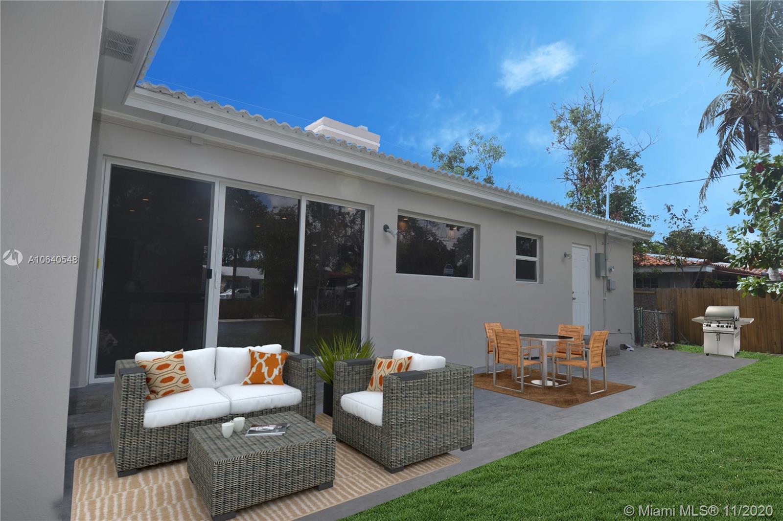 TOTALLY RENOVATED 3 bedroom home in prestigious Miami Shores Village. Brand new Impact Windows through-out. Brand new Central A/C and electrical water heater. Contemporary custom made kitchen with stainless steel appliances and white quartz counter-top. Huge fenced backyard and brand new deck; great for entertainment. Third bedroom currently used as an office. Plenty space for a pool. Attached GARAGE. Charming fireplace in living-room. Laundry room, brand new washer and dryer under warranty. Hardwood floors in bedrooms. Convenient access to the back alley. Great location with easy access to highways, downtown, shopping, beaches and more.