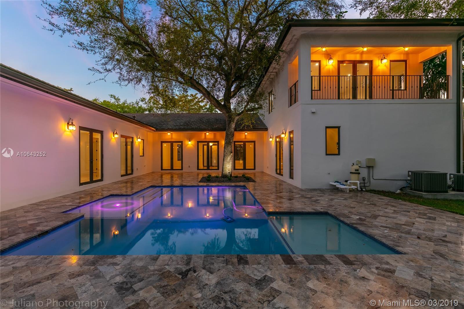 Must see gem in beautiful Coral Gables, this stunning recently built home near the Biltmore has 5 bedrooms and 5 baths with kitchen opening up to family room and wine cellar. Kitchen features all Thermador appliances with cook-top on granite island that accommodate family seating with 11-foot ceiling in common areas and impact windows & doors throughout. Entertainer's dream with its own recreation room on second floor with balcony and full bath. Master suite includes a beautiful tub, shower, and large walk-in closet. Brand new pool with large embedded sun deck and great terrace for entertaining and family gatherings. Wired for smart house capabilities, 2-car garage and outdoor storage closet. Located off Alhambra circle on beautiful dead-end street.