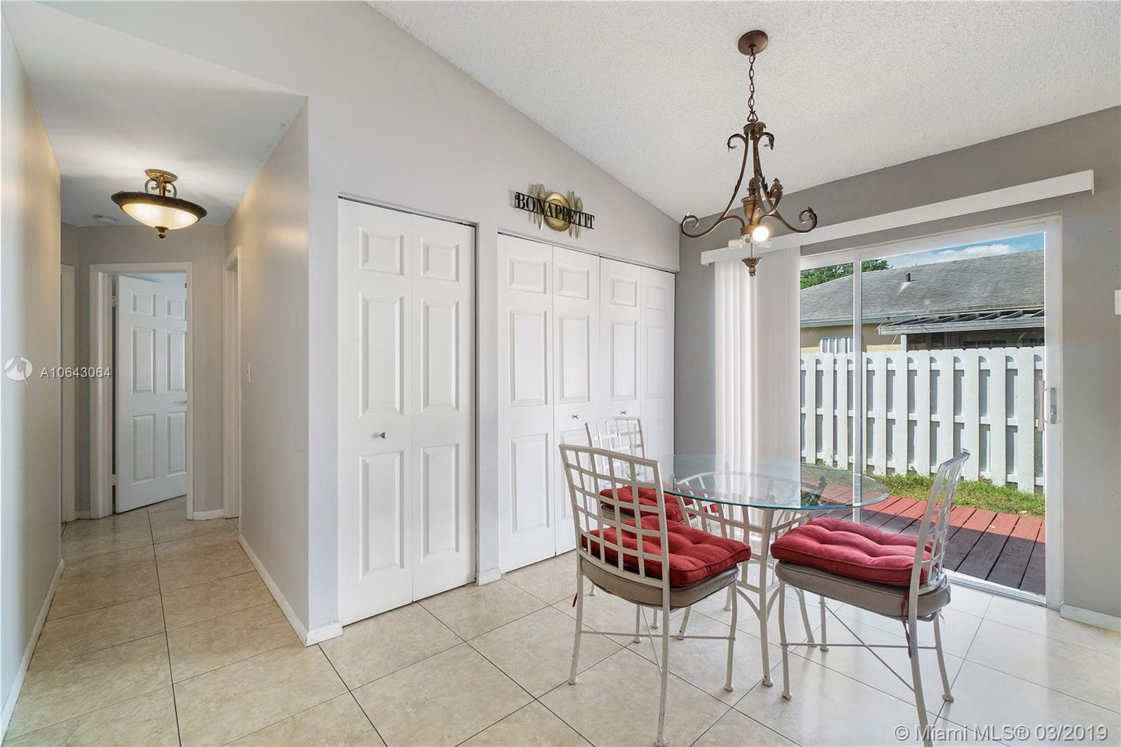 Charming cozy 3/2 home in desirable Country Creek development, split bedrooms and foyer entrance make this a great floor plan. Built in 1990, this single family home contains 1,631 sqft of adjusted living area with 3 bedrooms, 2 baths & 1 car Garage. All windows have accordion shutters. 100% tiled floors. Large master bedroom & large walk-in closet with cabinetry. New kitchen cabinets, New stainless steel stove & microwave, New double-sink vanity with quartz countertop in master bath. Fresh exterior paint and newly painted deck. New wooden fence. Large yard with room for a pool or shed. Ceiling fans in bedrooms. Small office area. Low quarterly HOA maintenance fee. Great neighborhood. CENTRAL LOCATION! Just a few minutes to Turnpike, I-595 & College/Universities.