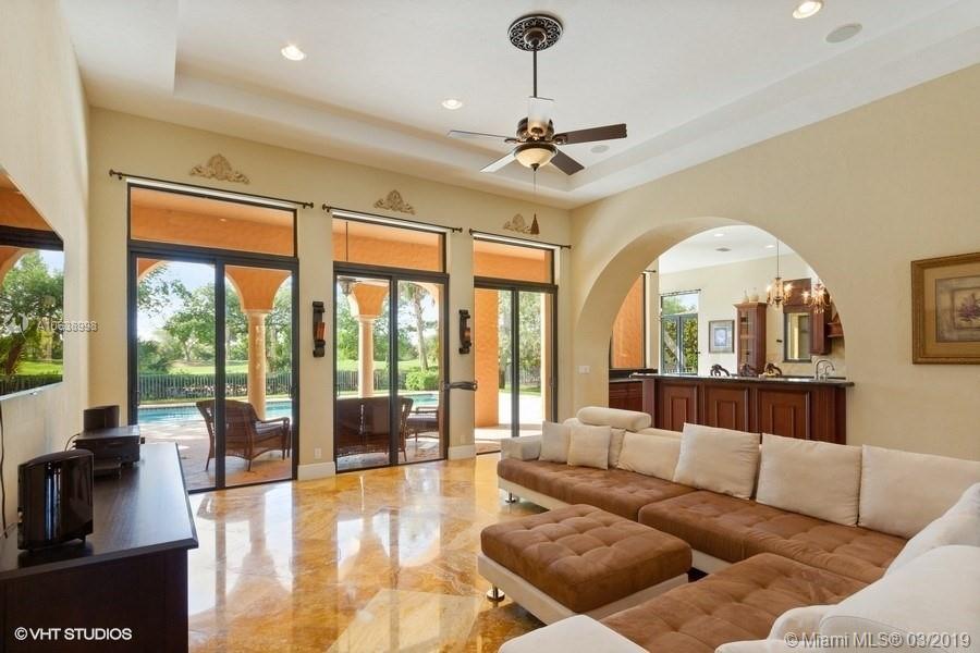 CORPORATION RELOCATION AND PRICED TO SELL. Located on the north end of PGCC in desirable Gables Estates! You'll love the large open spaces that flow outside to the two covered patios where you can create your outdoor living areas. Enjoy your modern, sparkling pool and admire the tranquil golf course beyond. Marble floors, solid wooden doors, and elegant cabinetry throughout. The kitchen features a triple island ideal for enjoying breakfast and PERFECT FOR ENTERTAINING. The Grand Entrance with volume ceilings creates an elegant welcoming. Play a round of golf, or visit The Sports Club or Spa Cielo. As a homeowner at Parkland Golf and Country Club, you'll have a social membership, with access to amenities such as dining at Ninety-One, tennis, and more. Enjoy this luxurious lifestyle.