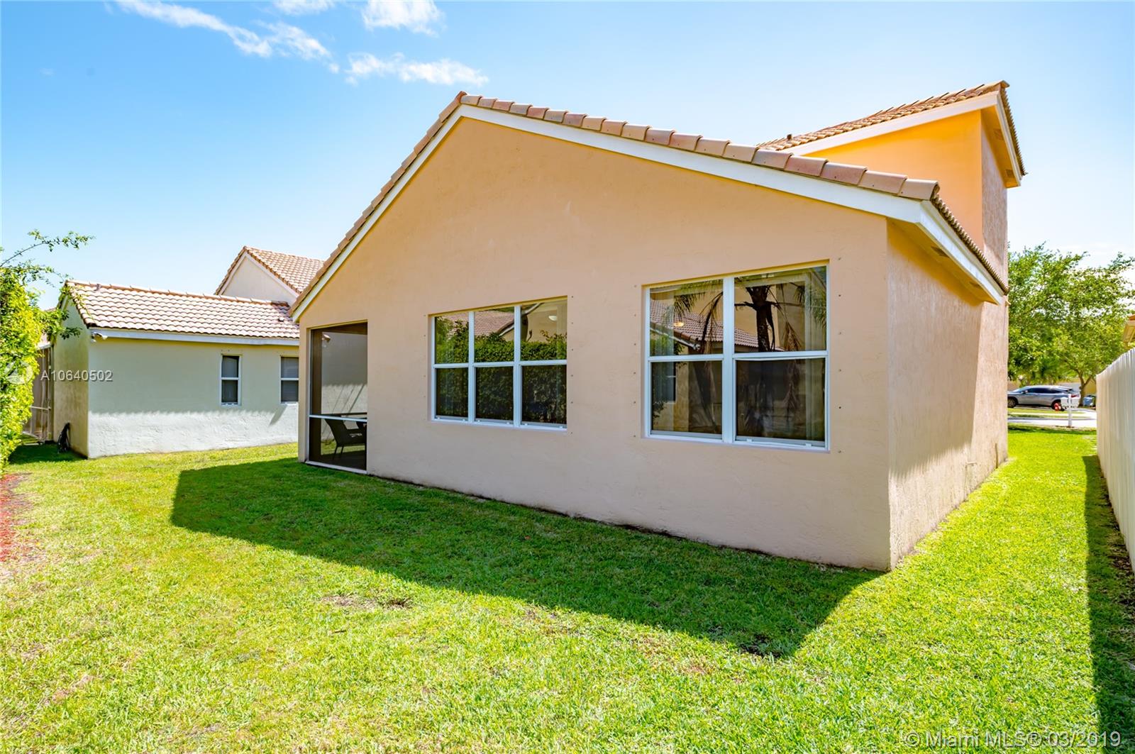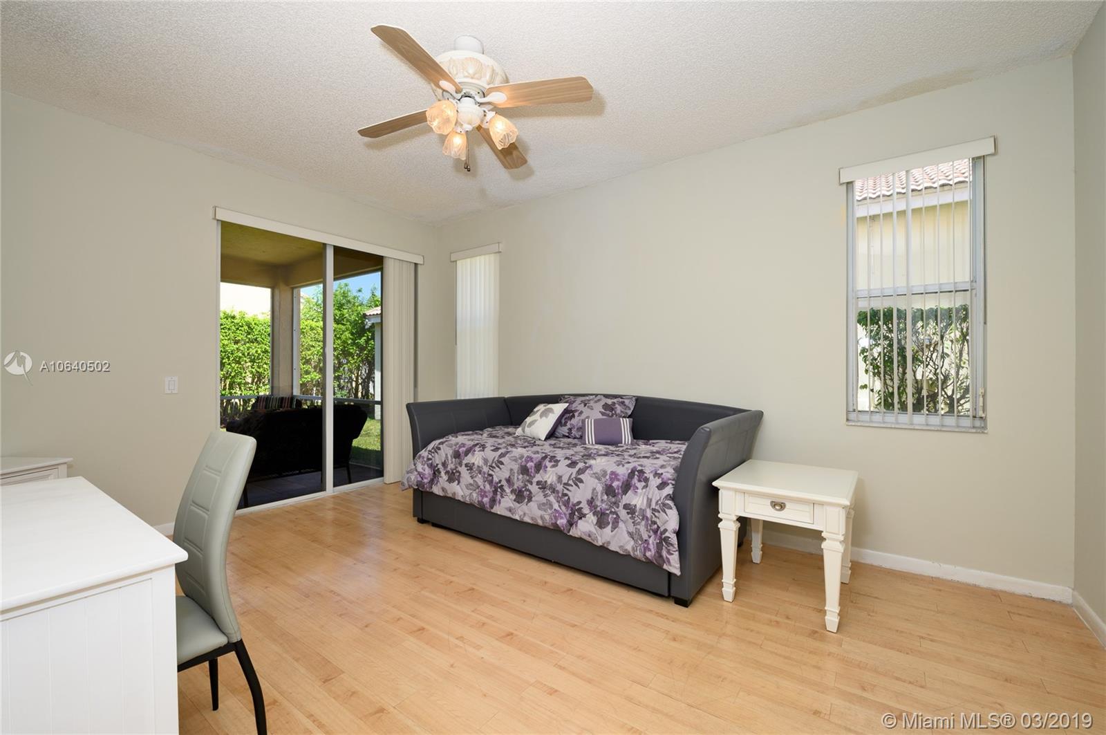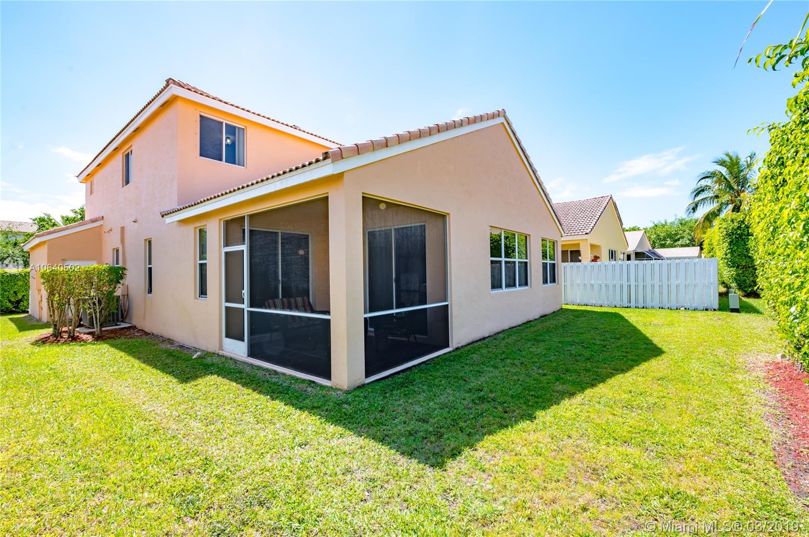 The lowest priced true 5 bedroom 3.5 bath in the park like gorgeous City of Weston Fl. Children friendly 24-hour guard gated The Falls subdivision. Bright and airy. Updated kitchen with SS Appliances and granite counter tops. Two car garage. All ceramic and laminate floors downstairs. Lots of natural light. Master bedroom on main floor with sliding glass doors to a beautiful relaxing screened patio, large en suite with dual sinks, roman tub, frameless door separate shower, huge walking closet. A+ Schools. Cypress Bay Bus pick up two small blocks away. Bike or walk to Tequesta Middle School and elementary Eagle Point . Walk two minutes to community pool, basketball, volleyball courts and Playground. Low maintenance fee. Easy access to shops banks restaurants, USR84, I595 and I75.