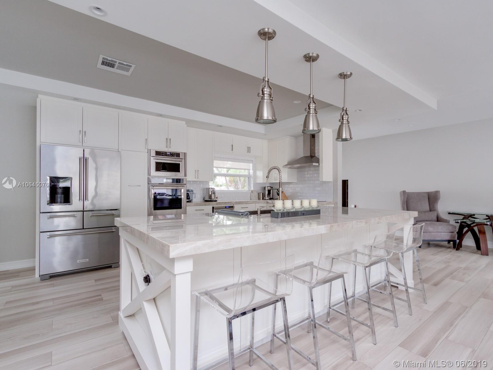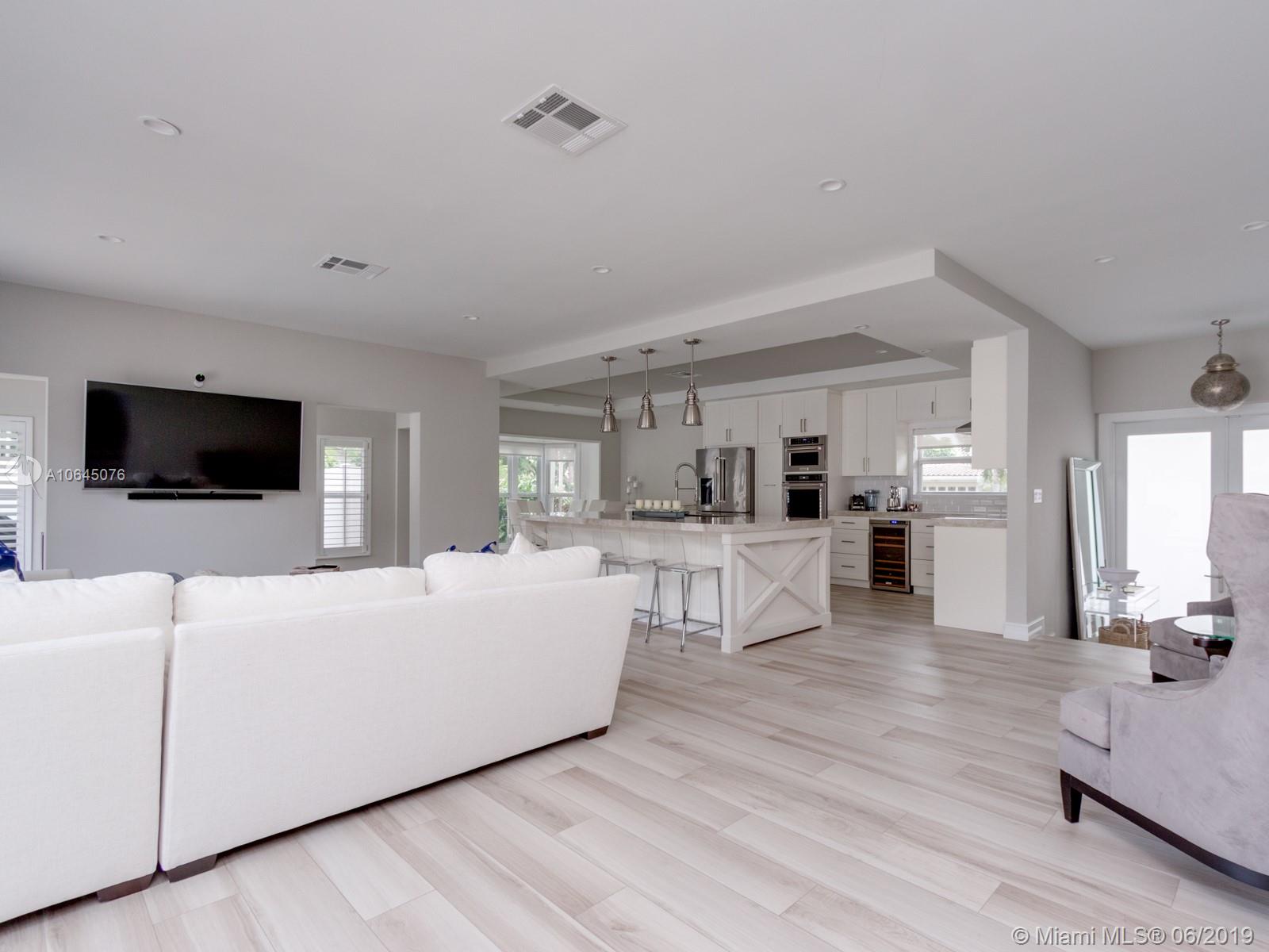 Gorgeous and unique split-level home in the heart of Coral Ridge and sought-after Bayview school district! Completely renovated (over $200,000 in recent upgrades) with open-concept floor plan, Quartzite countertops/island with power, new LED lighting, 2 new electrical boxes and buried electrical incoming line, new water heater, new garage doors and closets. All new KitchenAid appliances, Impact windows, wood porcelain floors, poly vinyl fence and so much more. Features include a spacious great room with wall of sliding glass doors overlooking private pool area and huge 2nd floor master suite with sitting area and walk-in closet. Two 1st floor bedrooms have direct access to patio/pool. Prime corner lot offers circular paver driveway and additional side driveway with 2-car garage.