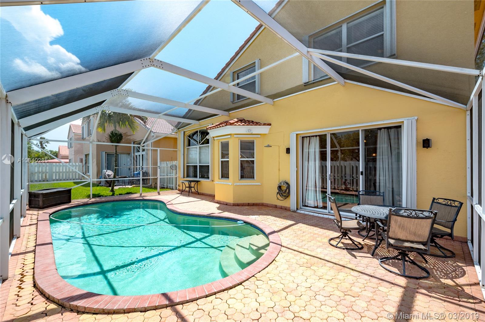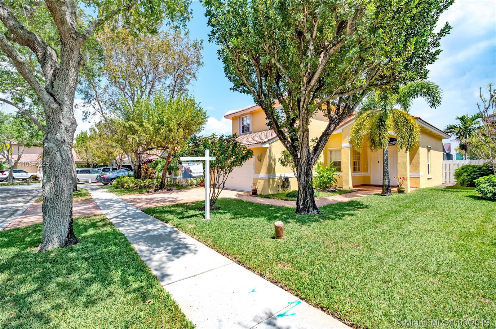 Come and see this magnificent light and bright 3 beds and 2.5 baths pool home that’s fully fenced in with a 2 car garage.This move-in-ready home is located in a gated and prestigious family oriented community,Claremont-Huntington.This property has a beautiful kitchen overlooking the family and breakfast area with a gorgeous bay window.There is also a large formal living & dining room. The pool area has been screened-in and fully paved, perfect for outdoor entertaining.The house has also been upgraded with accordion shutters, crown molding and a paved driveway.This house is conveniently located east of I-75 and Miramar Pkwy. Enjoy a park-like lifestyle, with tennis courts and picnic areas, all located close by,A+schools are walking distance.A YEAR OF HOME WARRANTY PLAN IS COVERED BY SELLERS