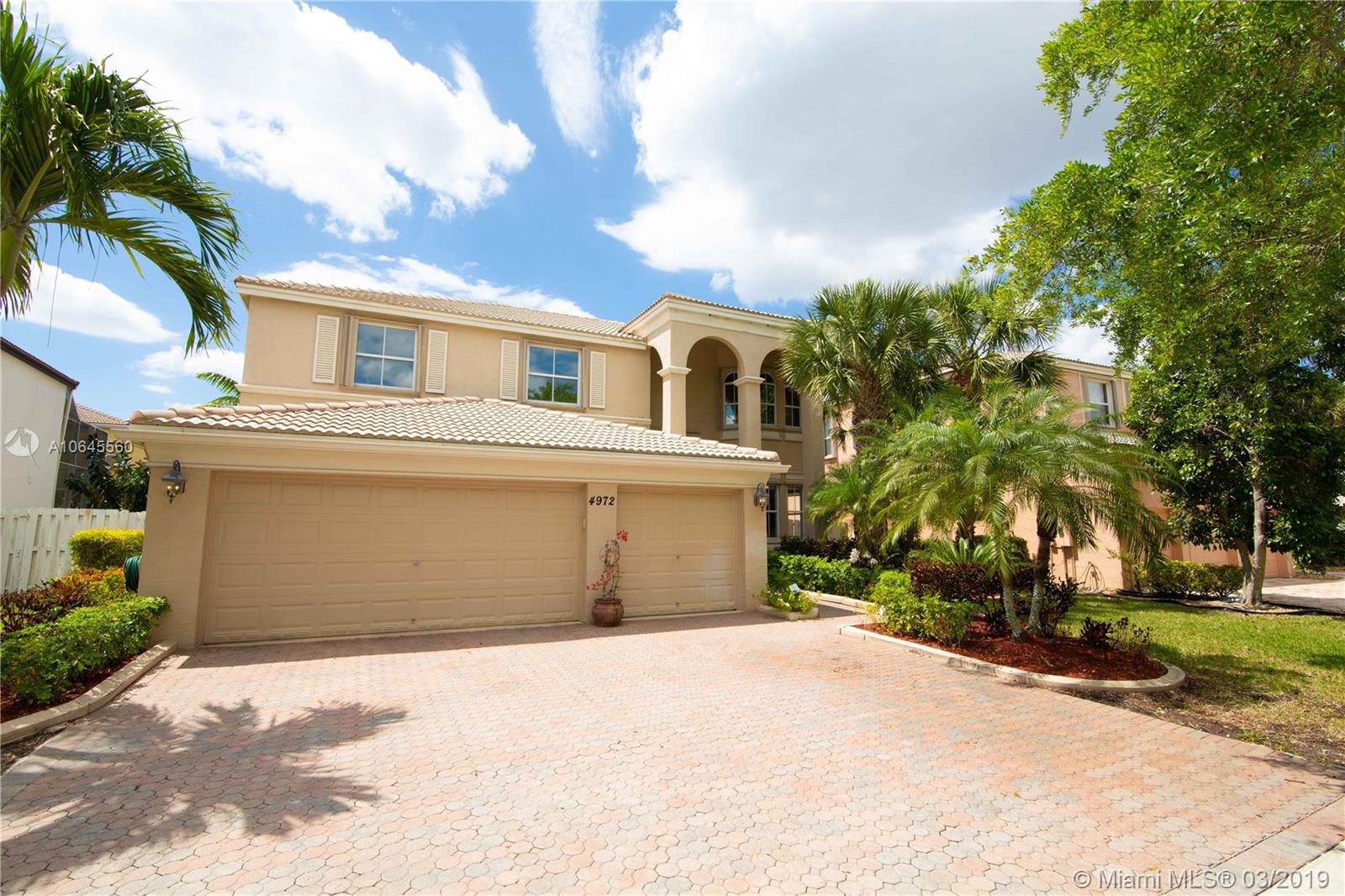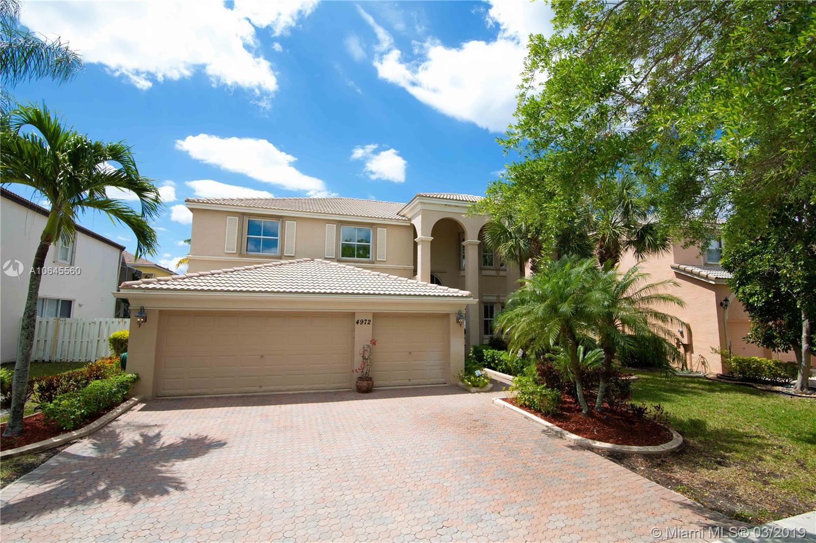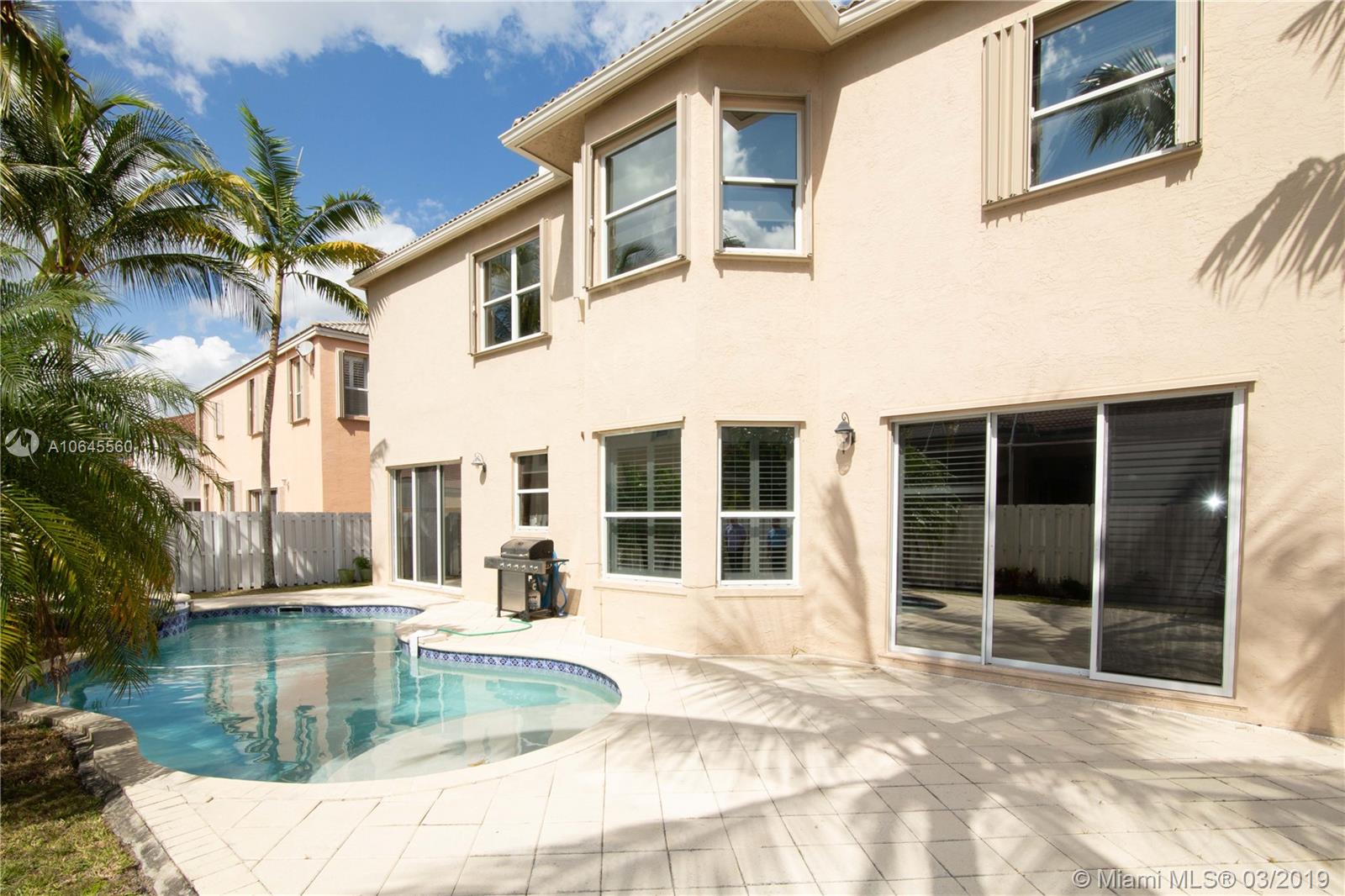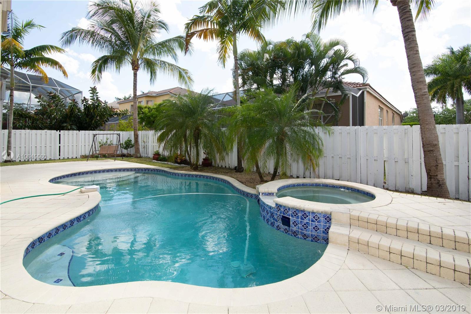 Spectacular 5 bed, 3 bath with 3 car garage and a pool/spa, meticulously maintained in Riviera Isles. Spacious home with over 3500 sf, featuring crown moldings, plantation shutters, 24” ceramic tiles and a dramatic curved staircase. Open floor plan with spacious family room, updated kitchen with granite counter top, island, breakfast nook area and walk in pantry. Inviting fenced-in backyard with a pool and spa. One bed, 1 full bath on the first floor. Spacious Master Bedroom and bath with dual sinks, separate shower & jetted tub with over-sized walk-in closet, 3 large bedrooms and 1 additional bathroom, all located on the second floor. The home has 2 AC units replaced in 2015, Water heater in 2014. All this located in a 5 star resort community, Riviera Isles.