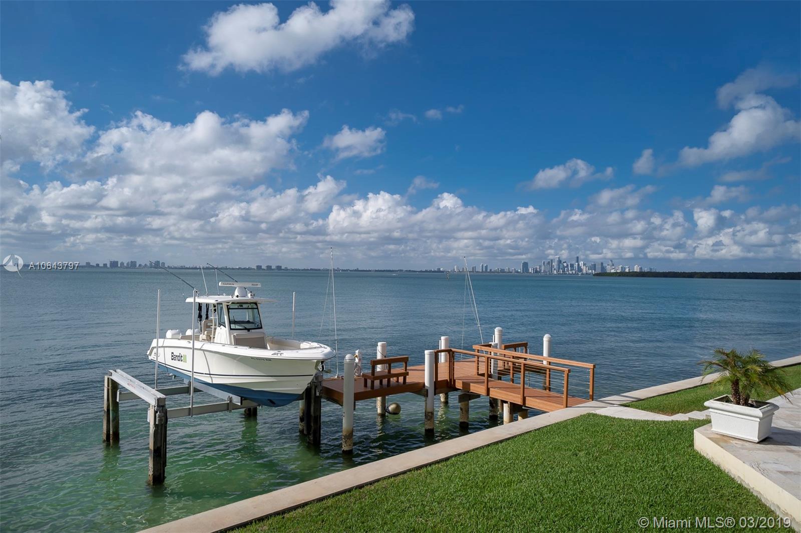 Key Biscayne Magnificent residence with Miami skyline at his best. Built on a over-sized lot (23774 sq.ft). Unique city views. Home offers 8,000+ sq.ft of great amenities and floor plan. Master suite on first floor with expansive own office library . Family room . 4 bedrooms en suite on second floor . Terraces on first and second floor . Two bedrooms en suite for staff. High ceilings through out the house , large floor to ceiling impact glass windows , large covered terrace embracing the backyard with BBQ area, sitting area and amazing city and pool views.dock area with boat lift (24000 pounds- 33 plus ft boat ) and dock sitting area. Double stairs circulation . 2 car enclosed garage . Gated . Must visit to appreciate how grand this house is.