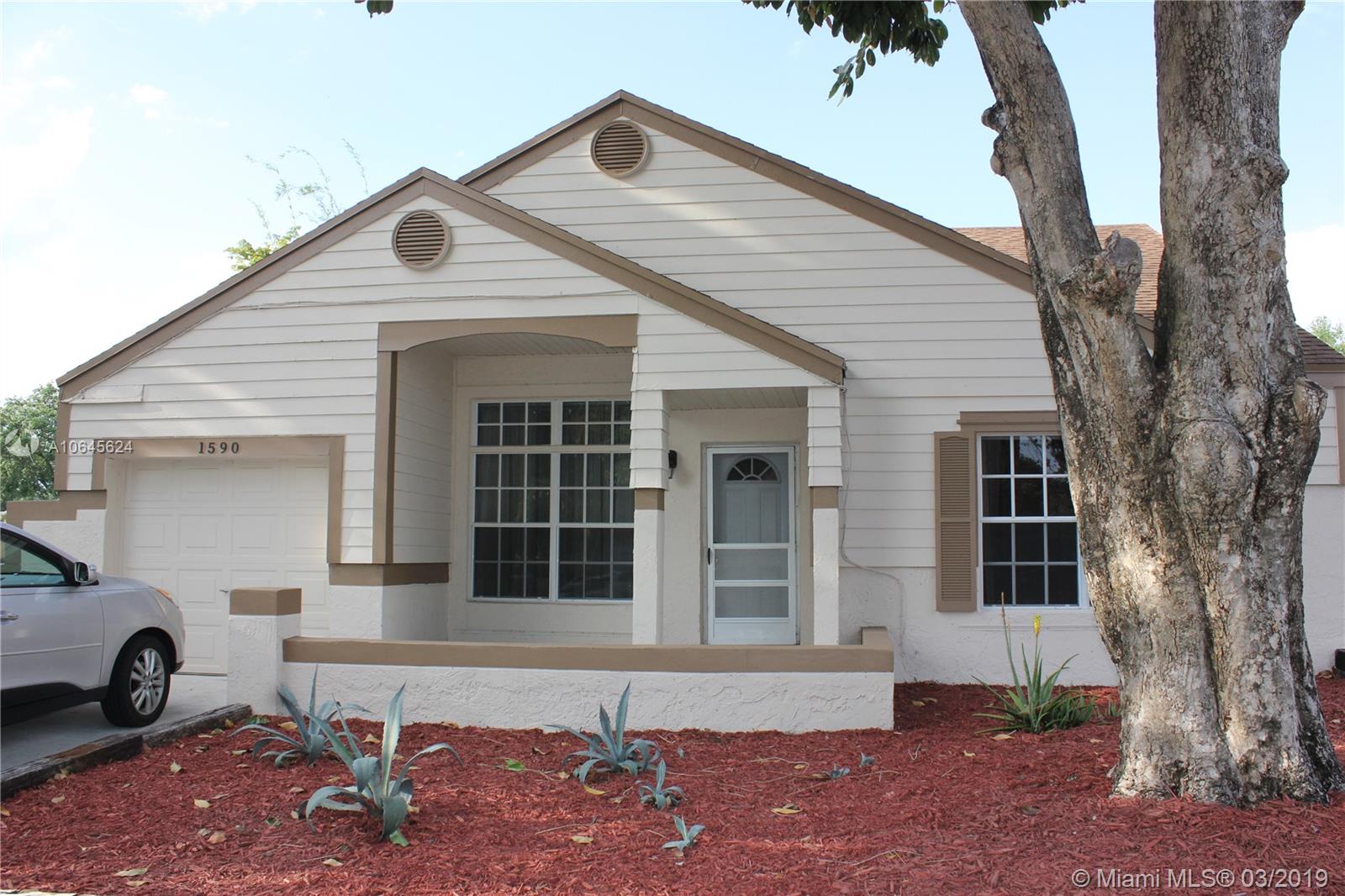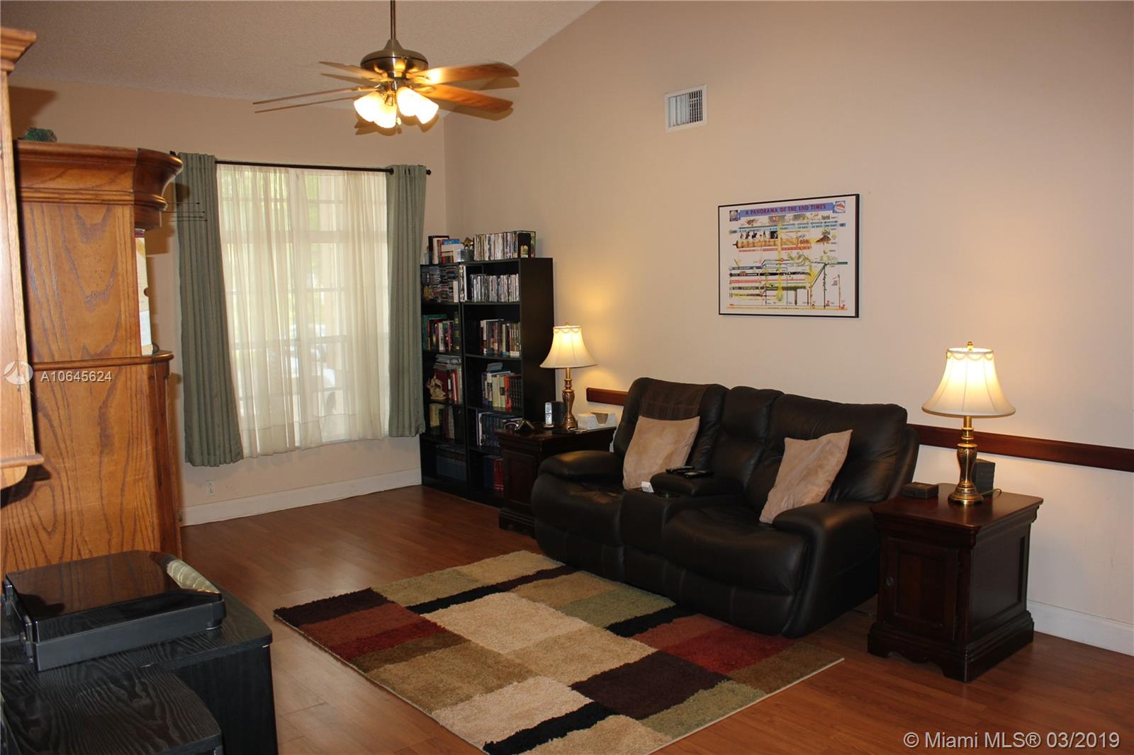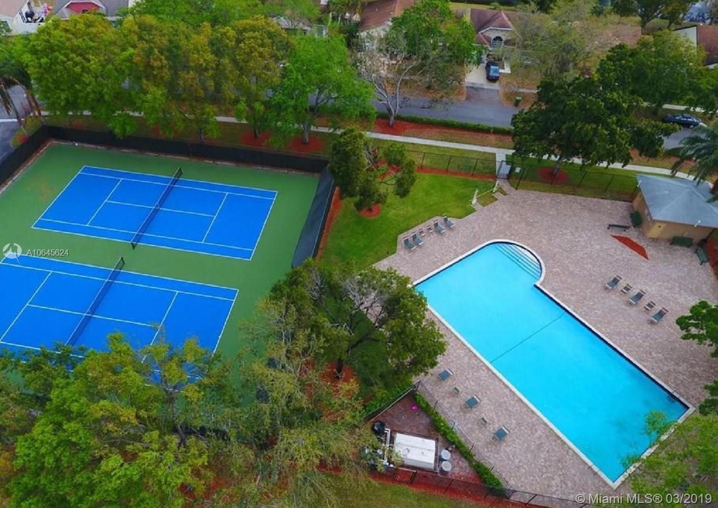 Great opportunity to own in beautiful Pembroke Pines for less than $300K and low HOA! This freshly painted 3 bedroom, 2 bath corner home features a water softener system, hurricane shutters, upgraded kitchen with cherry oak cabinets, corian countertops, 3 dimensional shingle roof rated 150 mph, beautiful park with playgrounds and jogging trail, 24 hour security, 2 community year round heated pools and 2 tennis courts. The landscaping includes agave, aloe vera and bamboo. Home can be sold furnished. Easy to show!