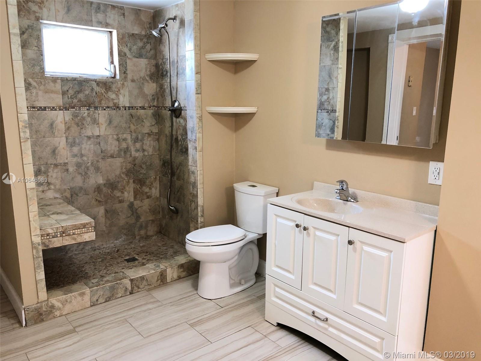 Great opportunity to own this cozy 3 bedroom, 2 bathroom renovated home in North Miami Beach. Property features tile floors throughout and an oversized private fenced backyard. Very spacious bedrooms with ample amount of closet space. Large living room and open kitchen with new stainless steel appliances. Beautiful trees along the fence adding extra privacy for the front and back yards. Property offers a detached 2 car garage. Very quiet street near shopping and major highways. Extraordinary Deal!