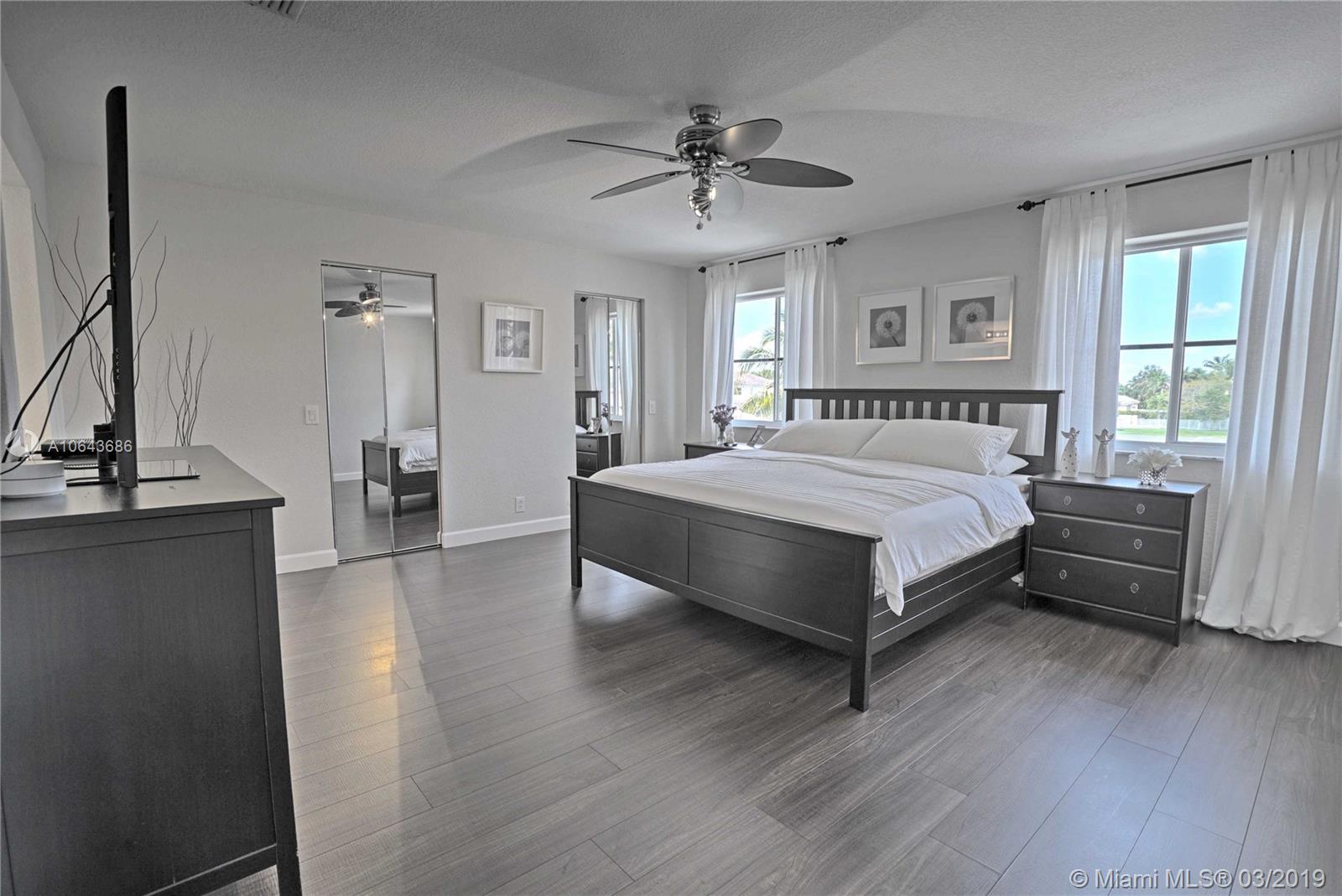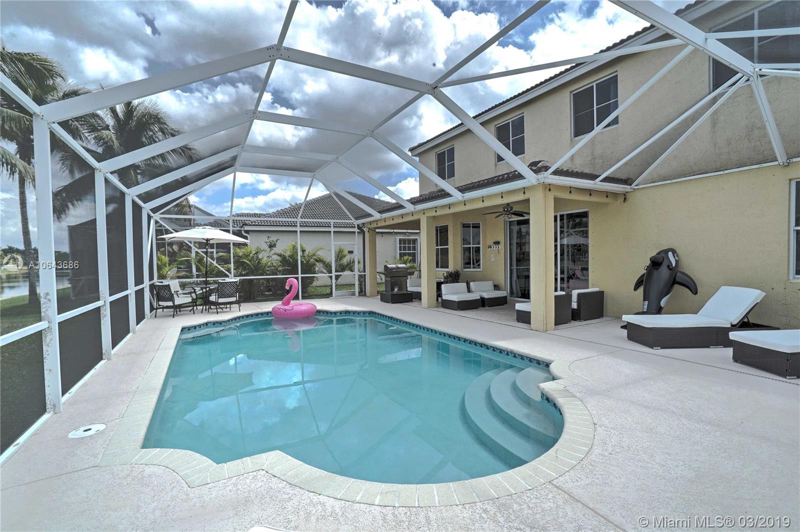 Bright 5 bedrooms 4 bathrooms house with lake and pool. One bedroom and full bathroom on 1st floor. New Kitchen with quartz counter tops and stainless steel appliances & 42" wood cabinets, modern wood floors throughout , upgraded bathrooms. Closets galore. Pool with screened Patio. Gated community with amazing club house, 4 pools, water-slide, mini golf, basketball court, soccer, playground, and more to mention.