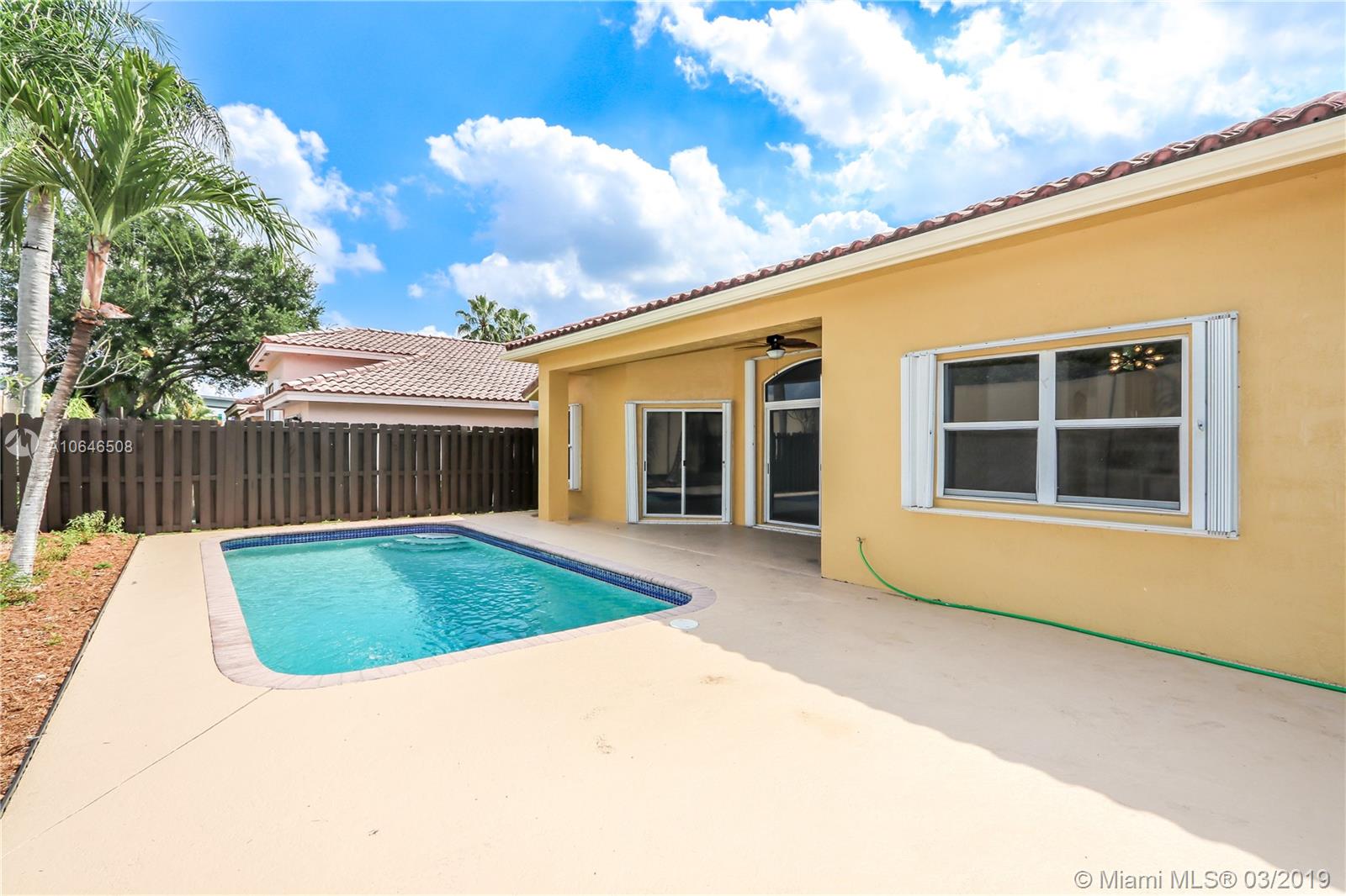 WELCOME HOME!! MOVE IN READY...SPECTACULAR 3 BEDROOMS WITH 2 FULL BATH AND 1/2 BATH W/ 2 CAR GARAGE AND A BEAUTIFUL POOL. THIS IS A FRESHLY PAINTED MODERNIZE 2 STORY SINGLE FAMILY HOME. READY FOR A NEW FAMILY TO ENJOY THE AREA. LOW HOA COMMUNITY. LOCATED NEAR MAJOR HIGHWAYS, SHOPPING, WESTON NIGHTLIFE AND “A” RATED SCHOOLS.